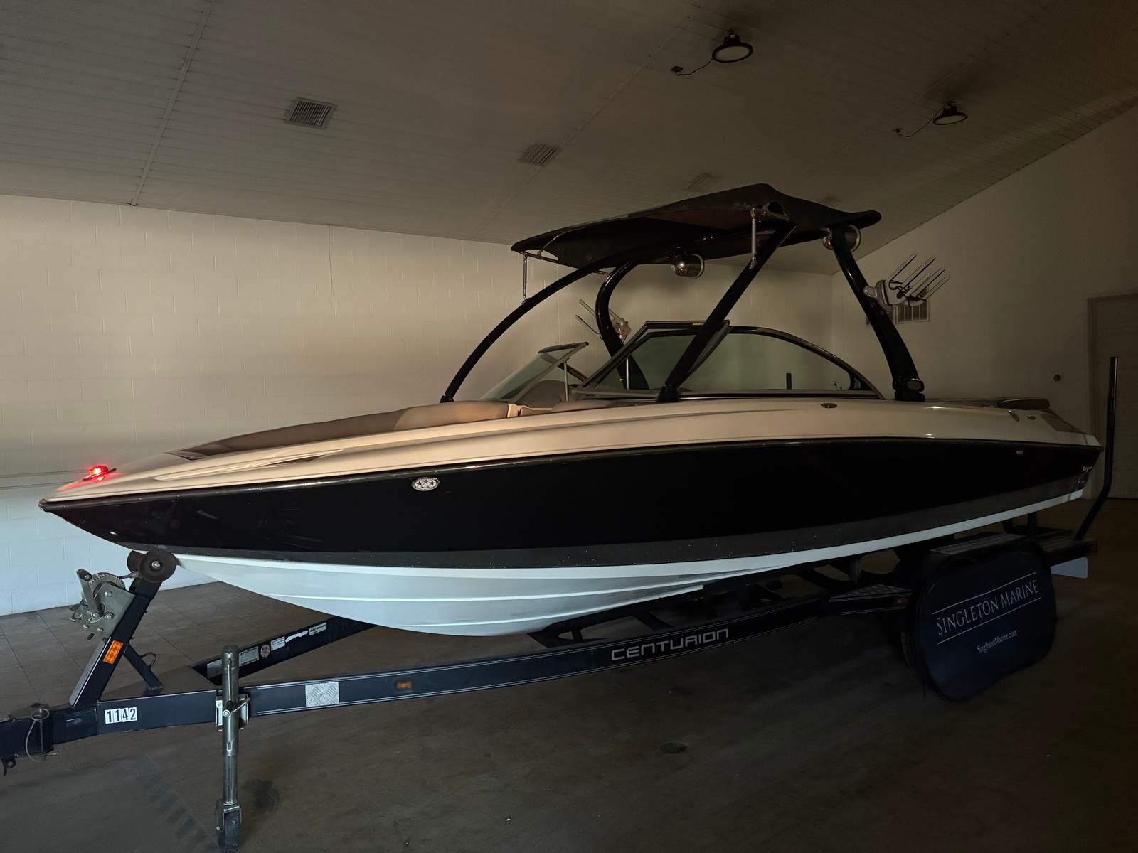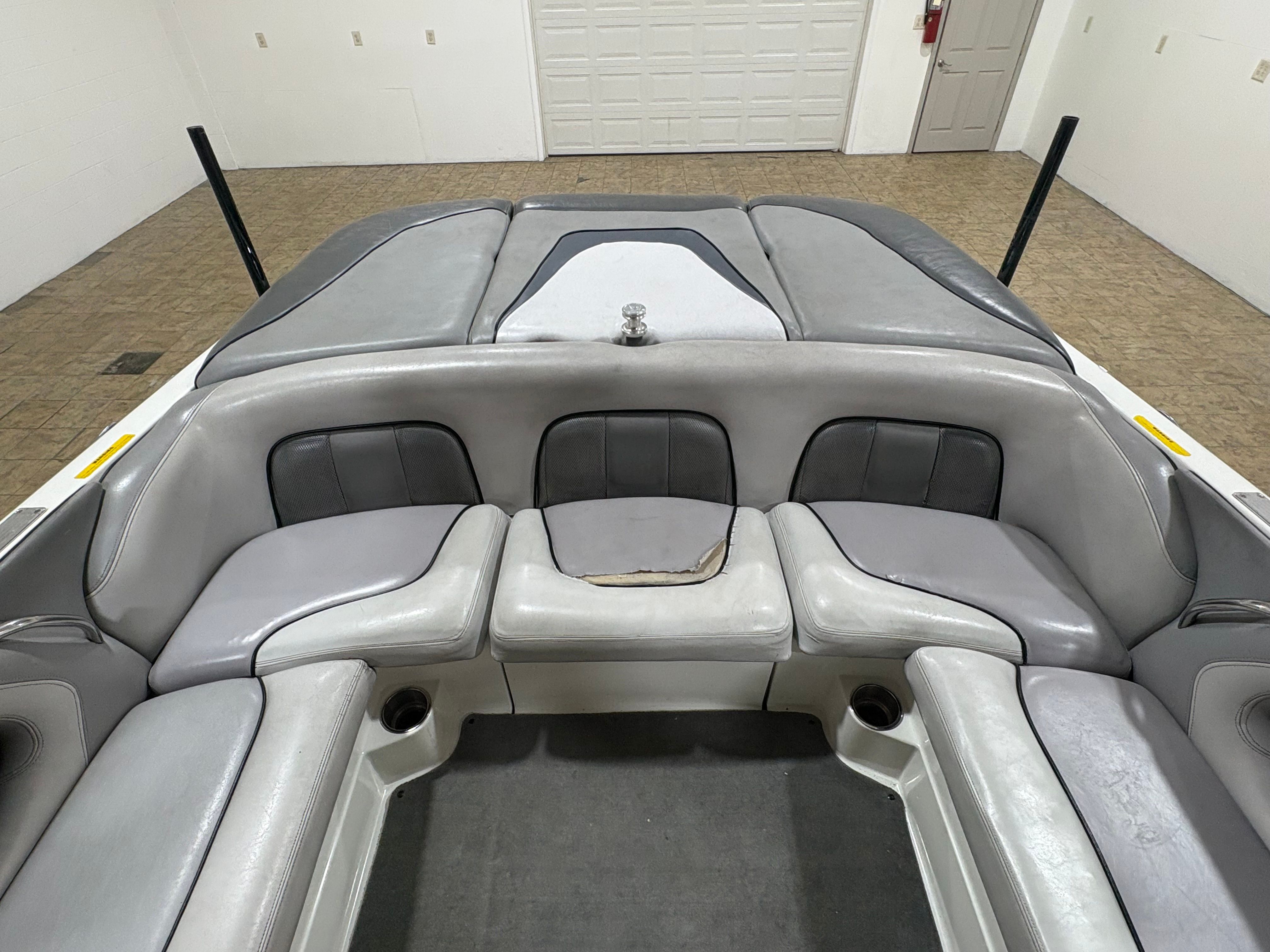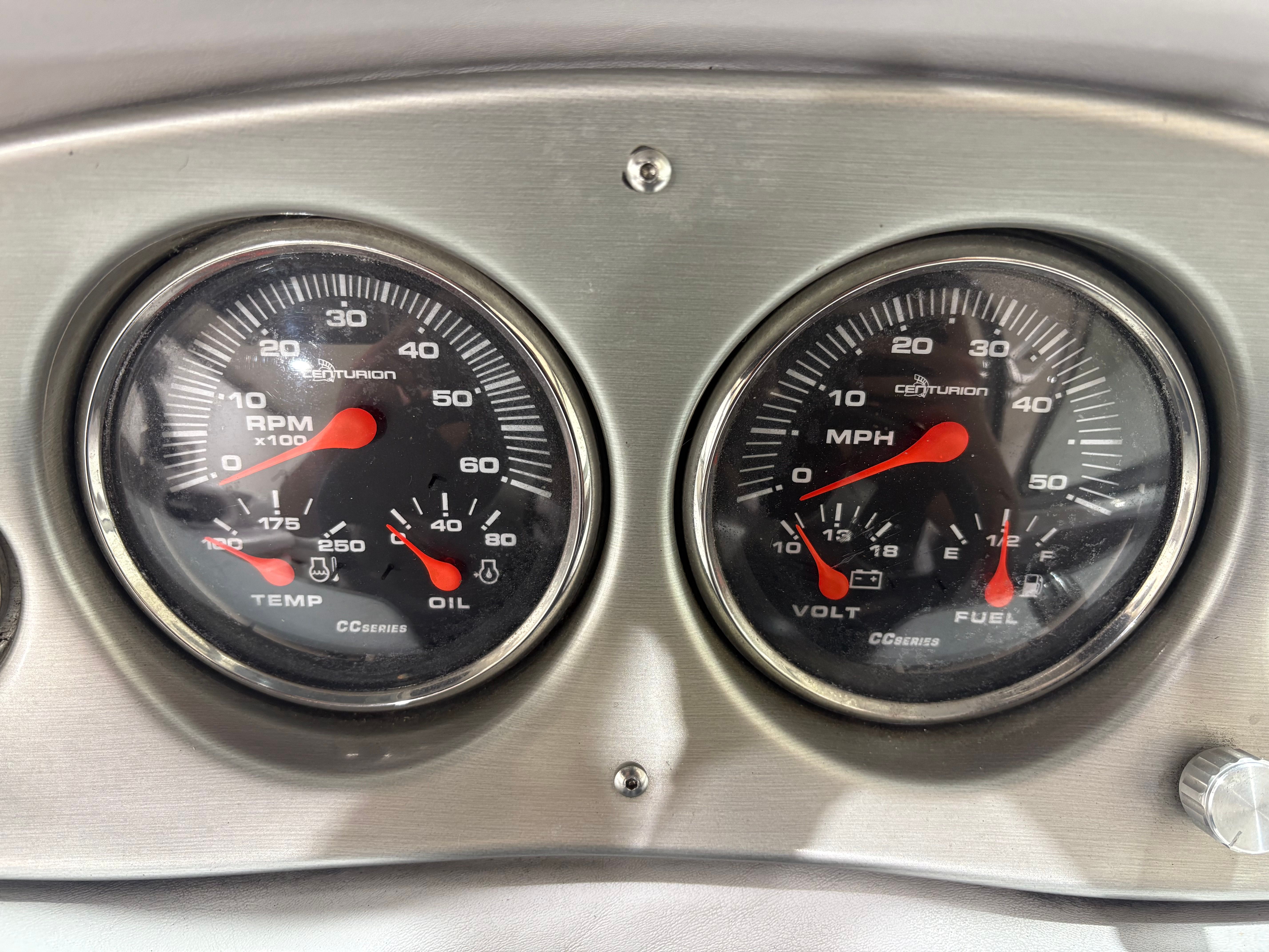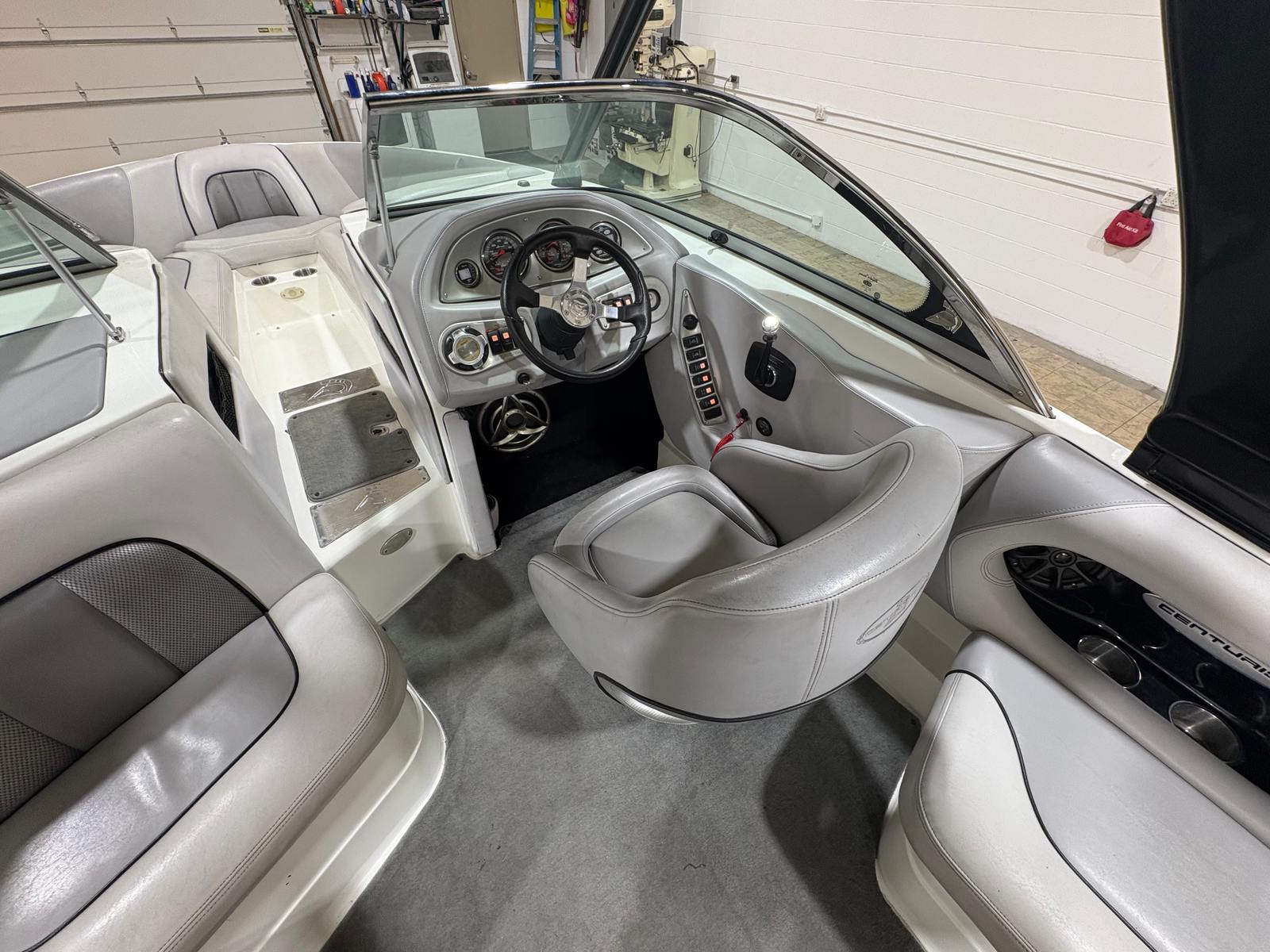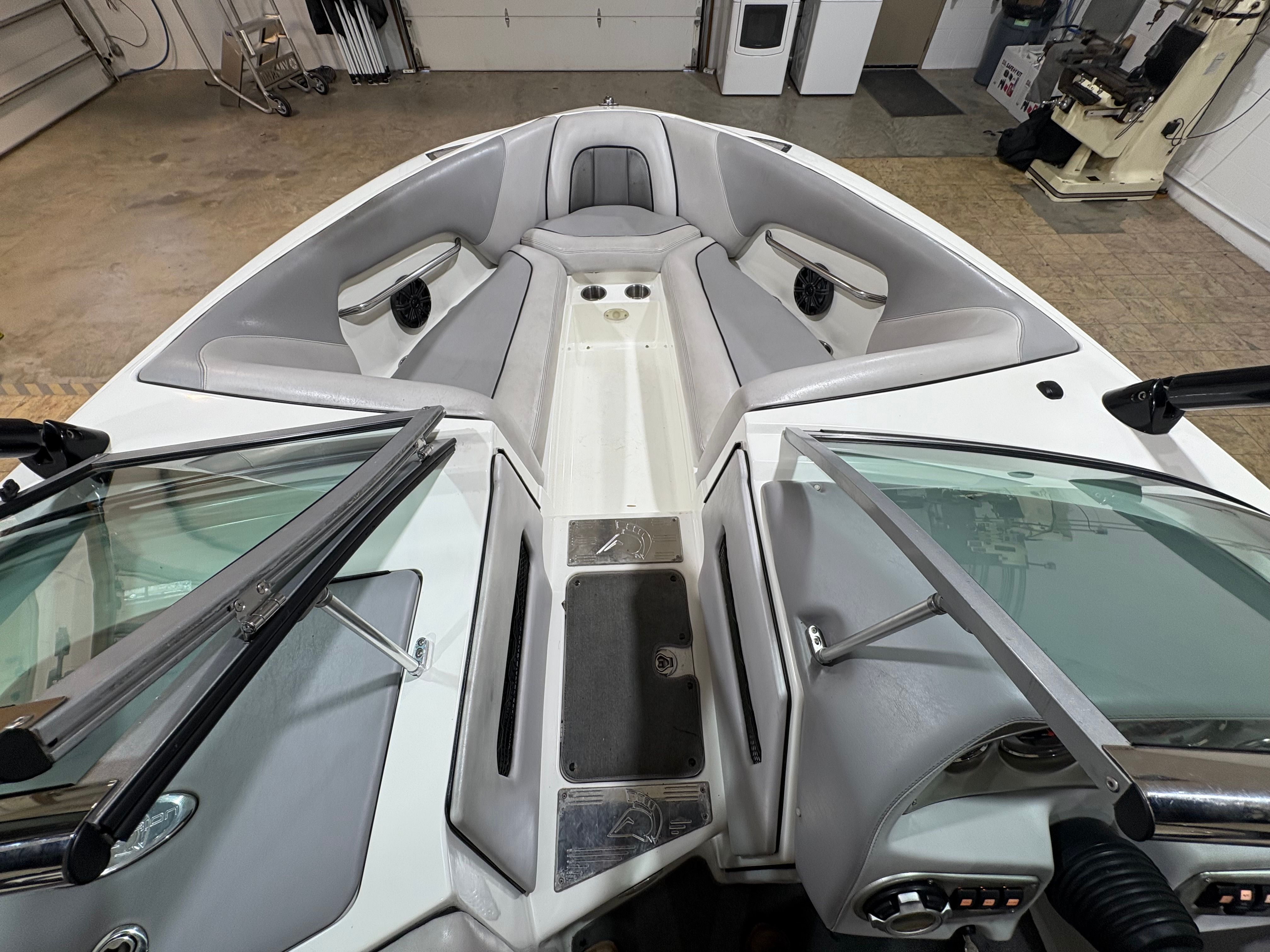 Practicality meets performance in this Centurion boat for sale. The mooring cover simplifies storage and protects your investment, while the efficient single-engine setup helps keep fuel costs manageable. Docking is a breeze thanks to the boat’s responsive handling and well-designed hull. The ballast system and Switchblade Wake Tab allow you to tailor the wake for different activities, making it easy to switch between wakeboarding, skiing, and casual cruising.The dual board racks maximize storage space, keeping the deck uncluttered and safe. The collapsible bimini top is easy to deploy and stow, adapting to changing weather conditions with minimal effort. Interior courtesy lights enhance visibility and safety during nighttime adventures, ensuring you can enjoy the water from dawn to dusk. With the Centurion Enzo SV230, every aspect of ownership is designed to be straightforward and enjoyable.