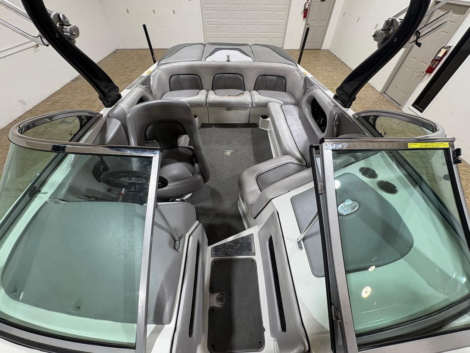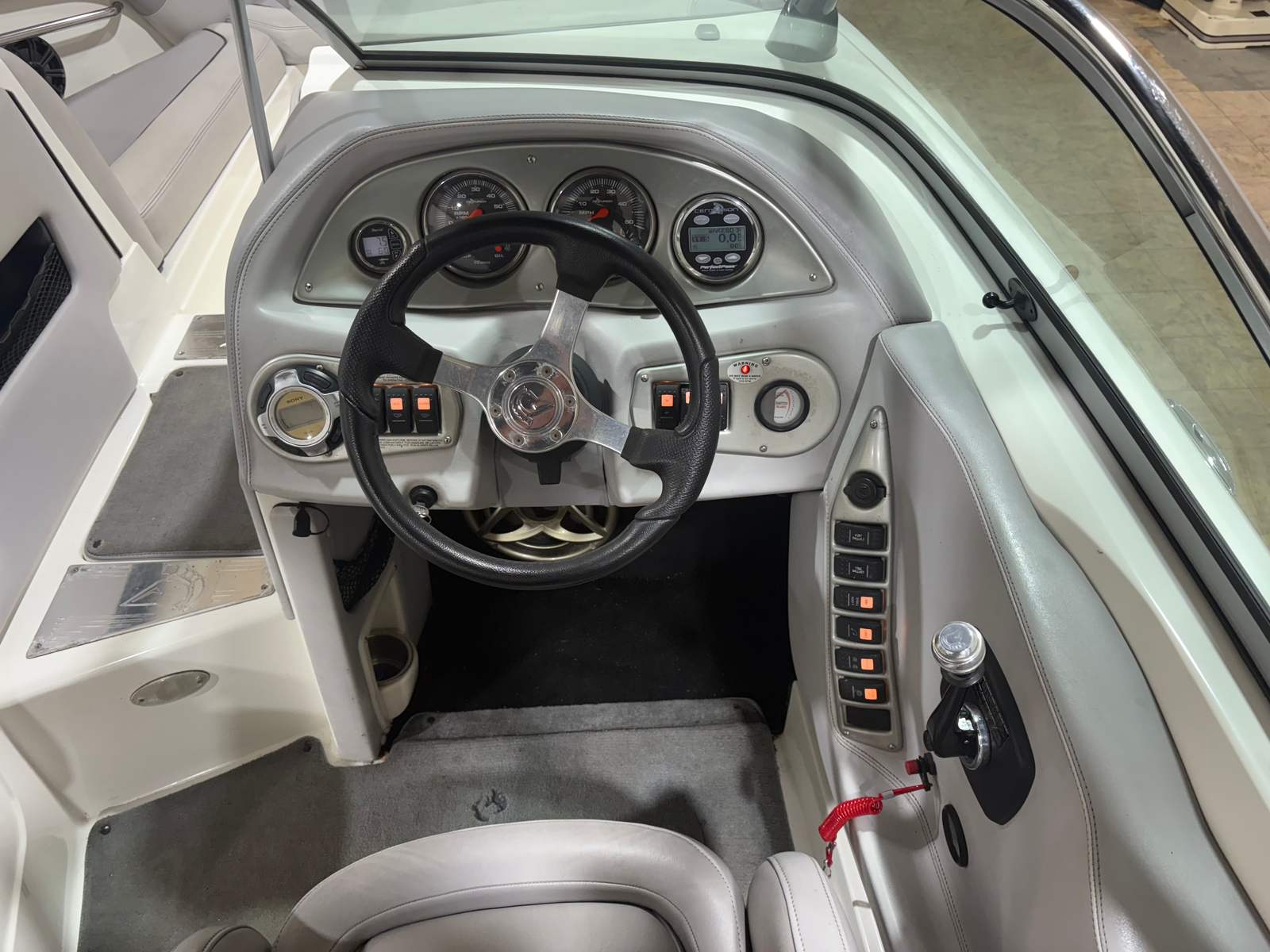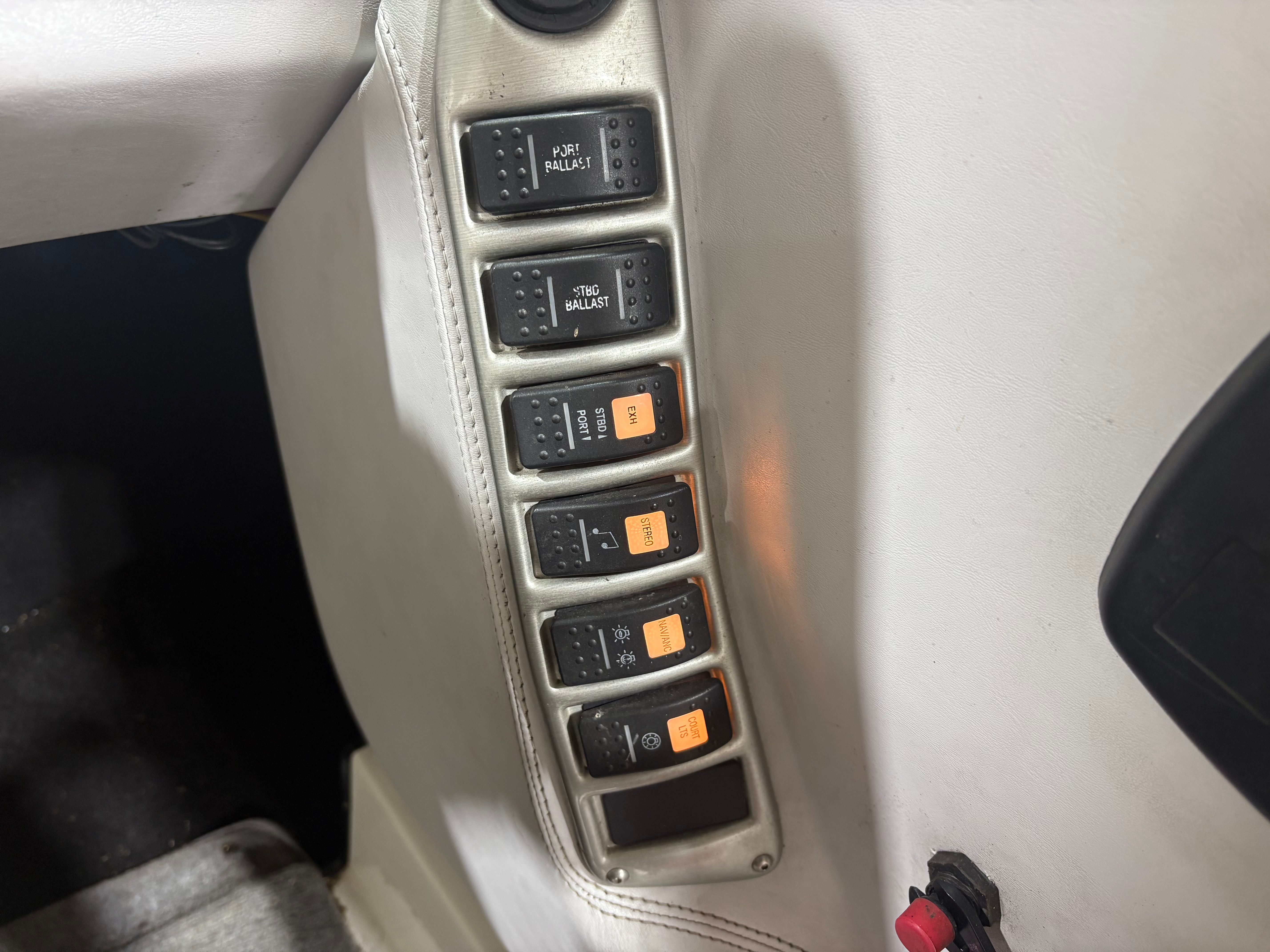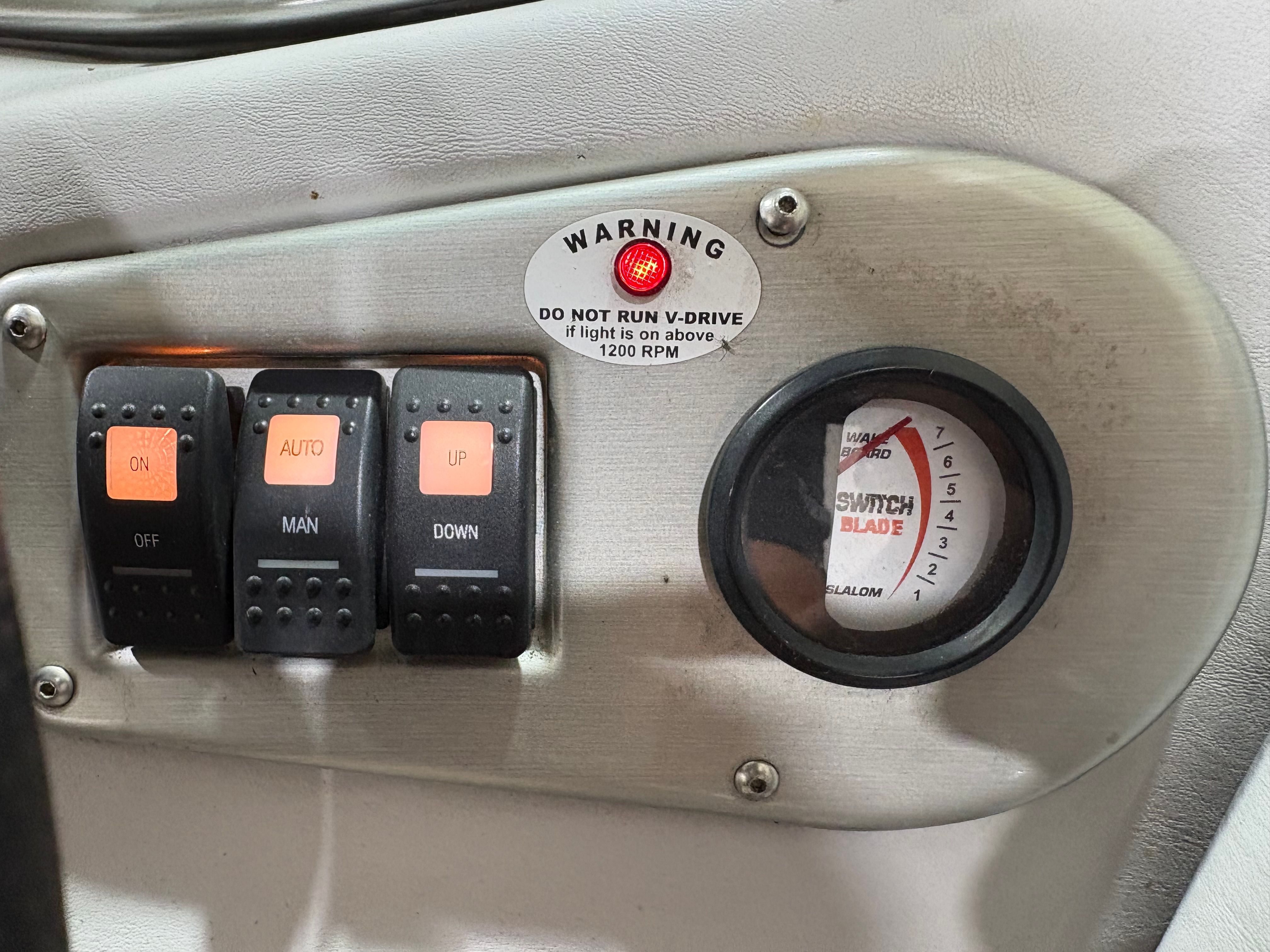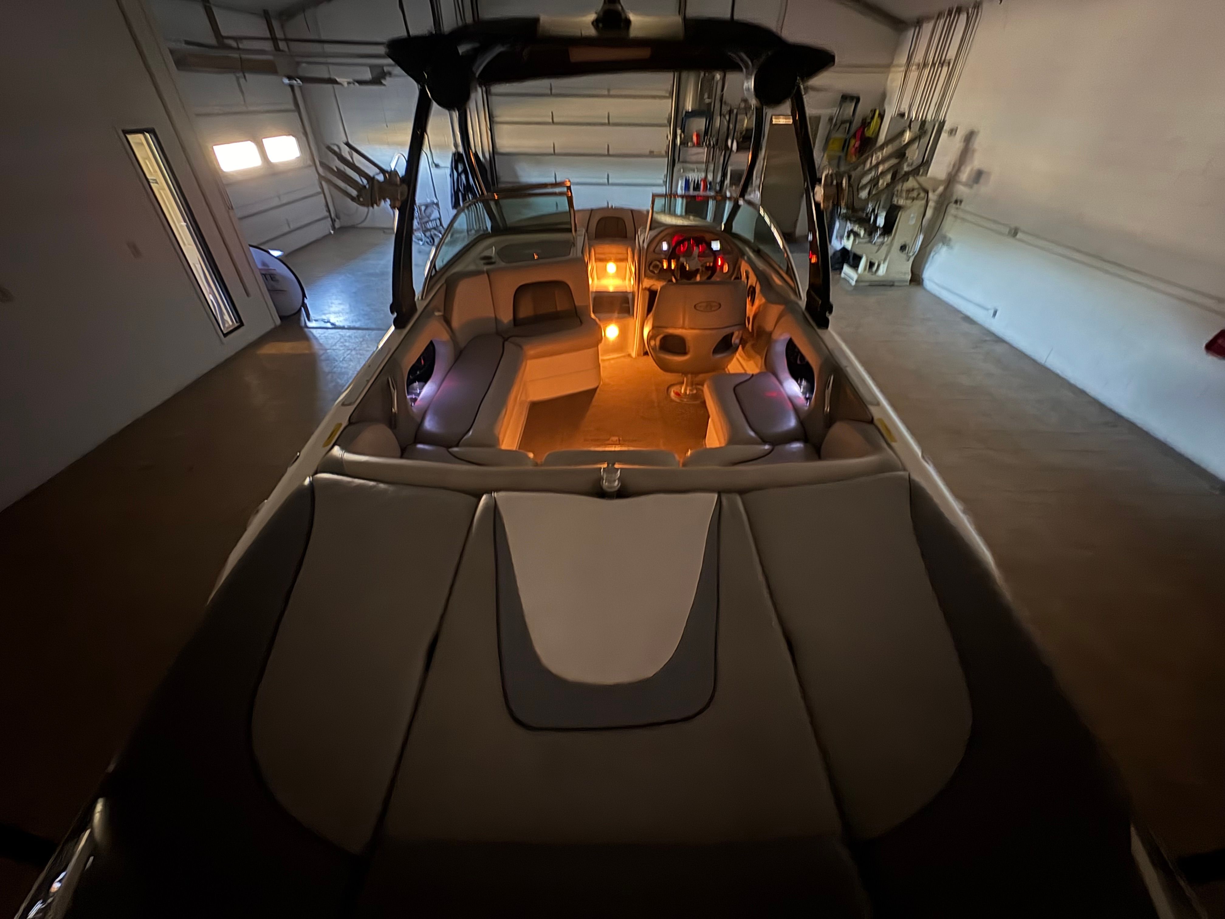 Practicality meets performance in this Centurion boat for sale. The mooring cover simplifies storage and protects your investment, while the efficient single-engine setup helps keep fuel costs manageable. Docking is a breeze thanks to the boat’s responsive handling and well-designed hull. The ballast system and Switchblade Wake Tab allow you to tailor the wake for different activities, making it easy to switch between wakeboarding, skiing, and casual cruising.The dual board racks maximize storage space, keeping the deck uncluttered and safe. The collapsible bimini top is easy to deploy and stow, adapting to changing weather conditions with minimal effort. Interior courtesy lights enhance visibility and safety during nighttime adventures, ensuring you can enjoy the water from dawn to dusk. With the Centurion Enzo SV230, every aspect of ownership is designed to be straightforward and enjoyable.
