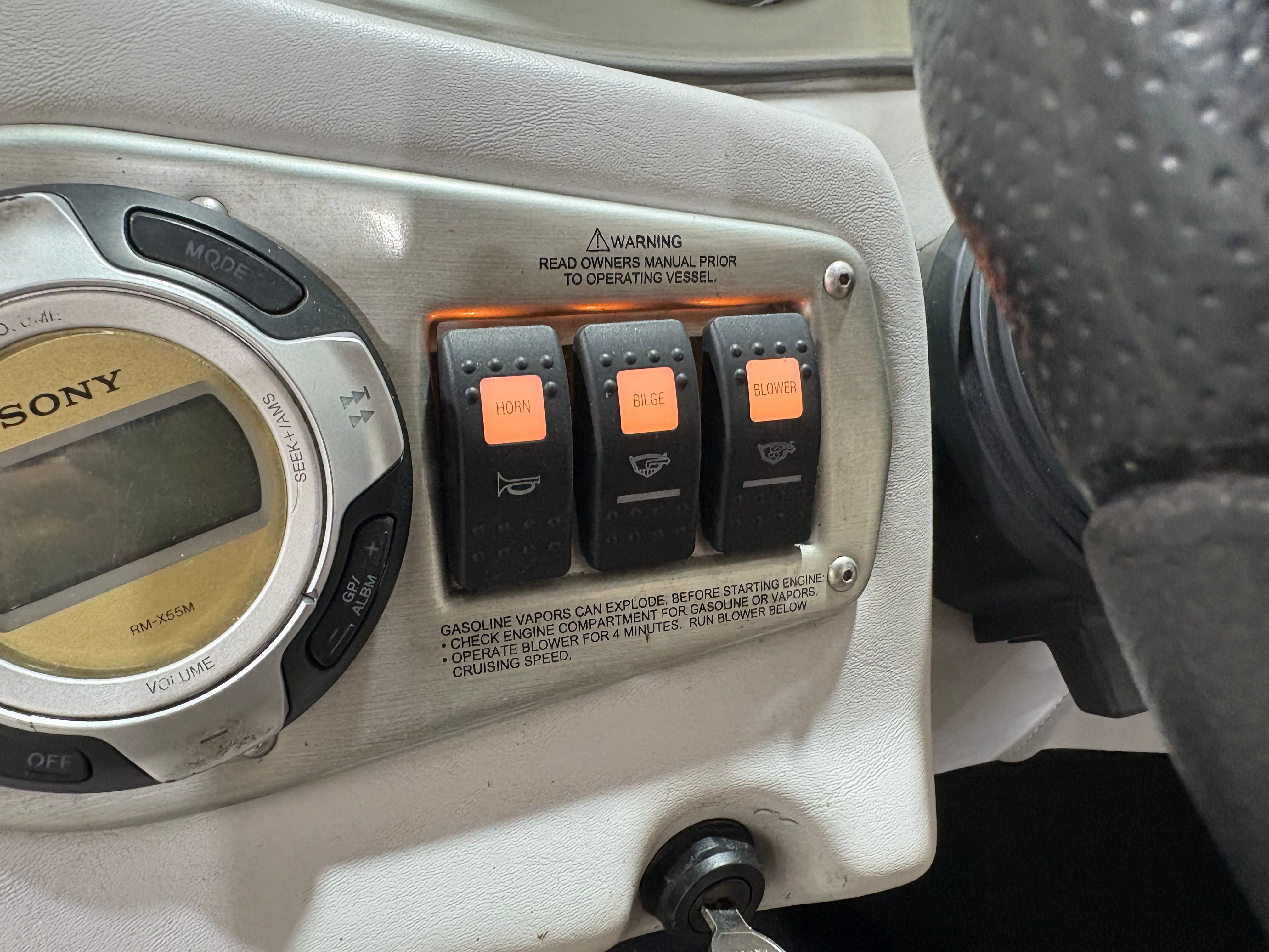 This Centurion boat for sale is packed with special features that set it apart from the competition. The mooring cover provides essential protection, keeping your investment safe from the elements when not in use. The wakeboard tower is a standout addition, offering the perfect platform for aerial tricks and stunts, while the dual board racks ensure your gear is always organized and within reach. The collapsible bimini top offers shade and comfort, making long days on the water more enjoyable.For those who love music, the updated Bluetooth stereo system lets you stream your favorite playlists and keep the party going. The Switchblade Wake Tab and ballast system work together to create customizable wakes, catering to riders of all skill levels. Perfect Pass Speed Control ensures consistent speeds for towing, making it easier for skiers and wakeboarders to perform at their best. Interior courtesy lights add a touch of elegance and safety for evening outings, rounding out the boat’s impressive list of amenities.