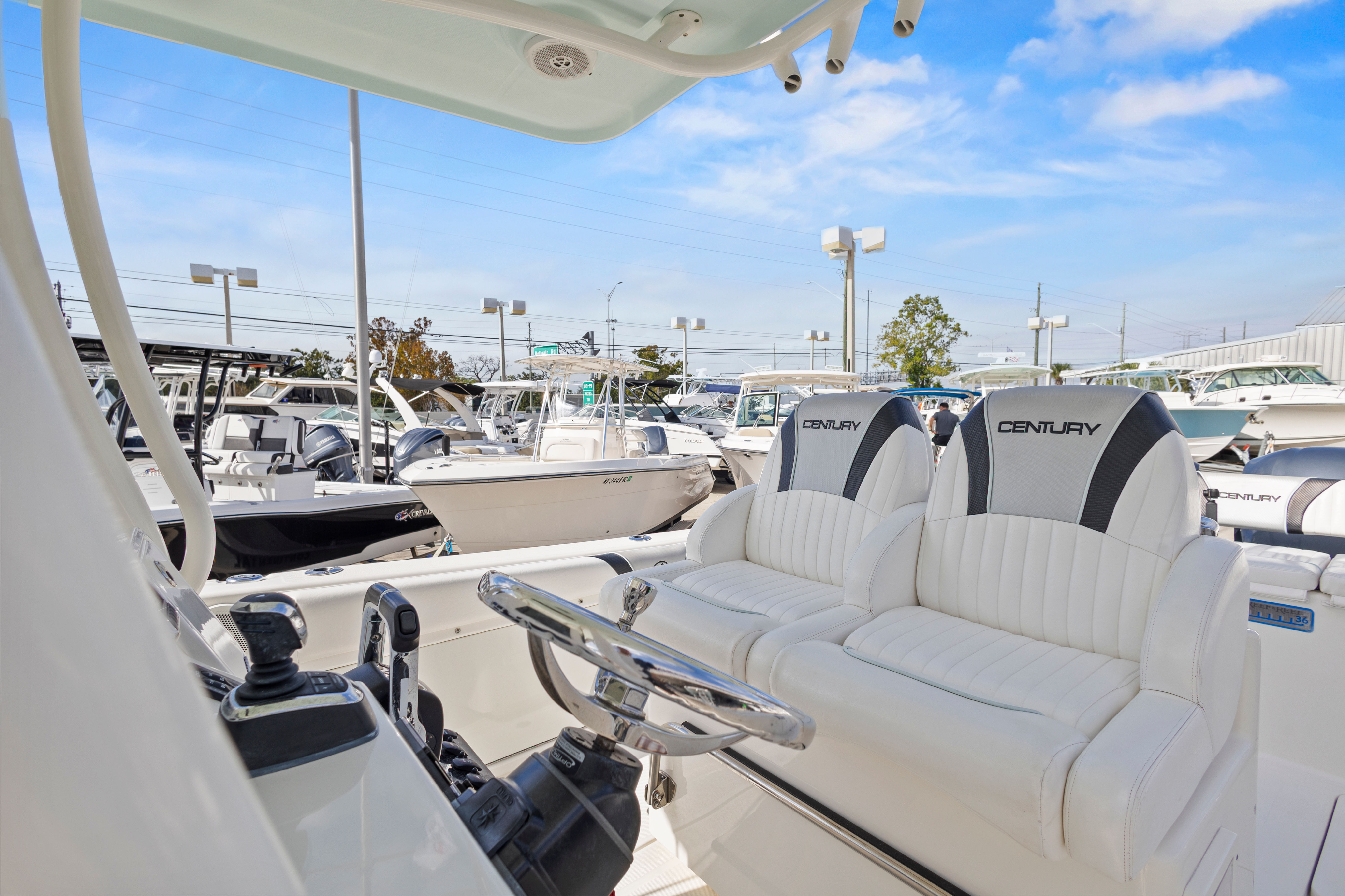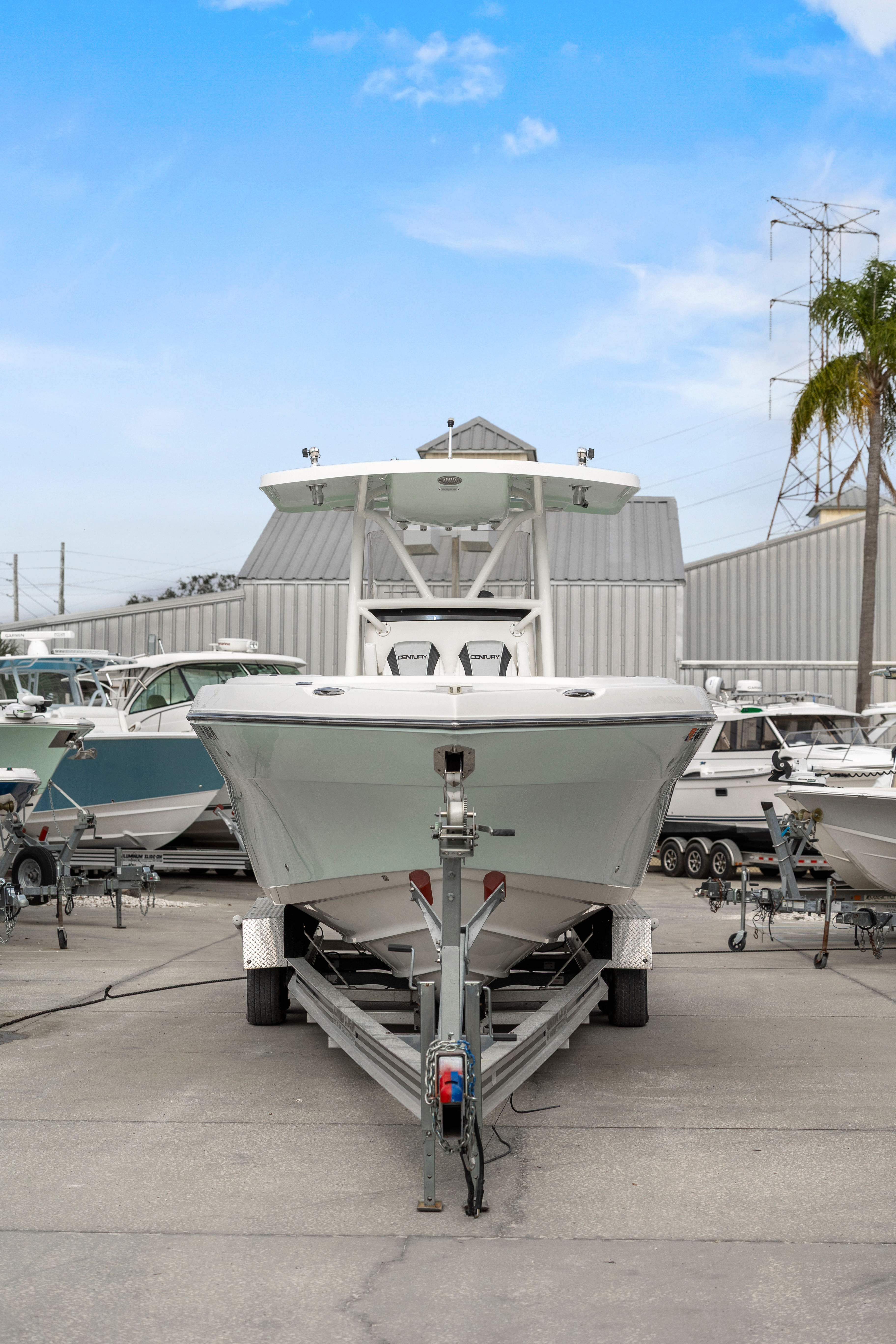 The Century 2901 CC is packed with features designed to enhance your boating experience. Its Center Console layout offers unobstructed 360-degree access around the deck, making it perfect for fishing, entertaining, or simply enjoying the view. The spacious cockpit provides plenty of room for guests, while the sturdy construction ensures safety and stability in various conditions. With a length of just over 29 feet, this boat offers generous storage options for gear, tackle, and personal items, keeping the deck clutter-free and organized.The dual-engine configuration not only boosts performance but also adds an extra layer of reliability, ensuring you can venture farther with peace of mind. The Century 2901 CC’s design emphasizes both function and comfort, with ergonomic seating and thoughtful placement of controls and amenities. Whether you’re preparing for a day of sport fishing or a relaxing cruise, this Center Console boat for sale is equipped to meet your needs.