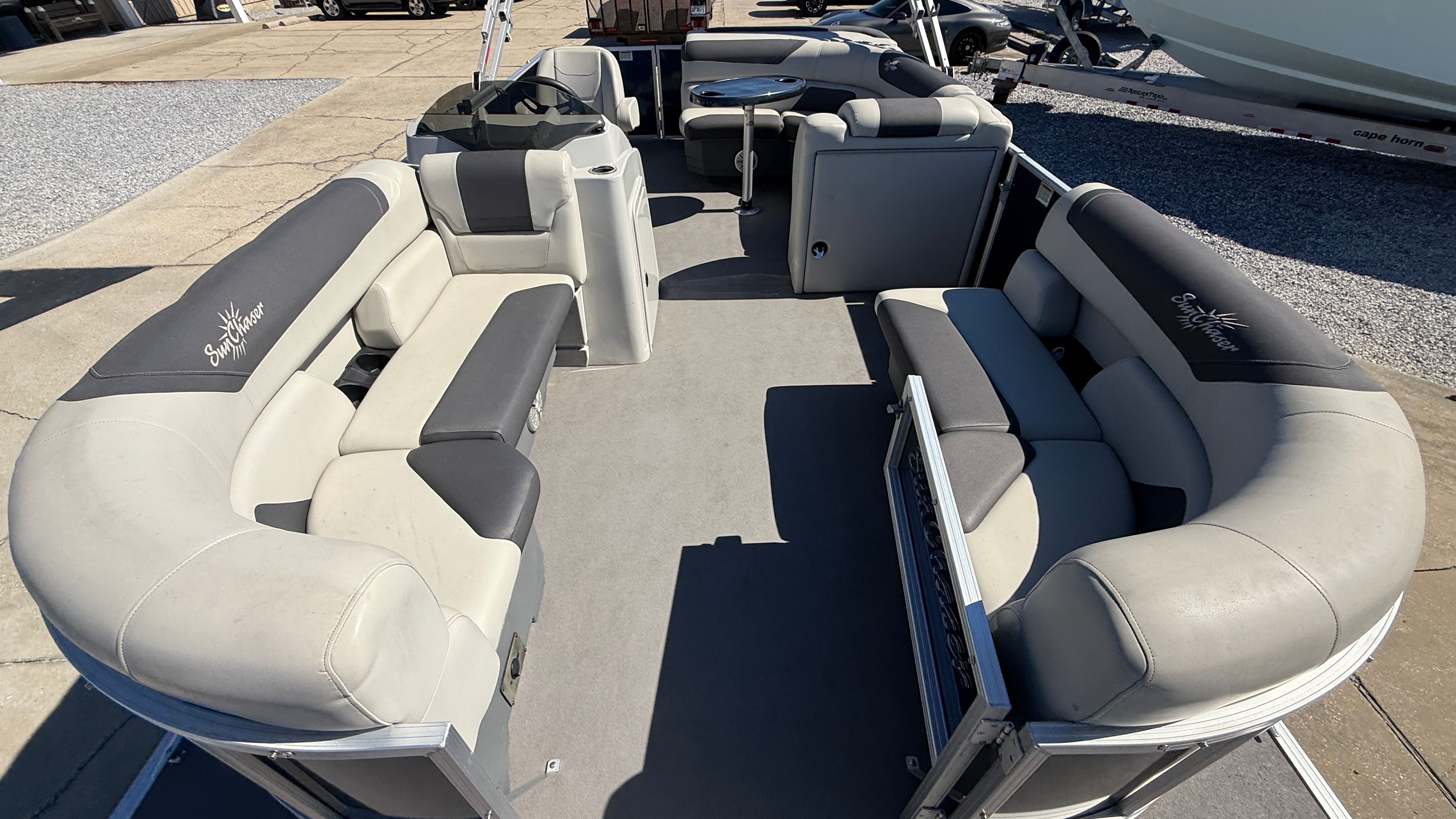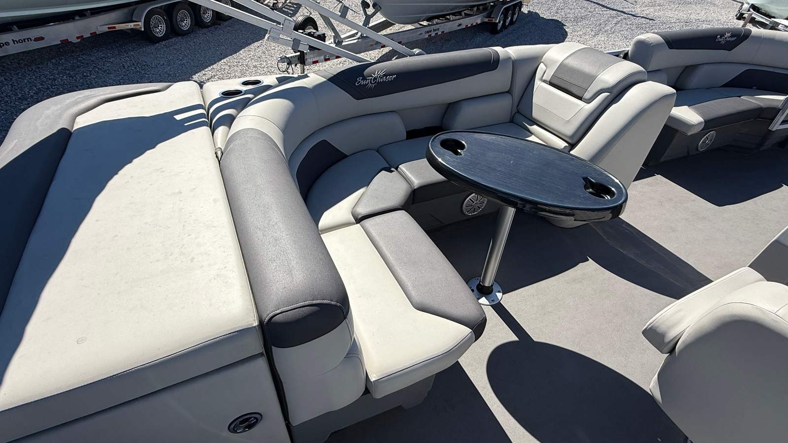 This Sunchaser boat for sale is as practical as it is fun. The 22-foot length strikes the perfect balance between spaciousness and maneuverability, making it easy to dock and store. The single 115 horsepower engine is fuel-efficient, helping you make the most of every trip without breaking the bank. Ample storage compartments keep your essentials organized and within reach, so you can focus on enjoying your time on the water.The pontoon’s design also makes it easy to board and disembark, whether you are at the dock or anchored in a quiet cove. Its sturdy construction and reliable performance mean you can venture out with confidence, knowing your boat is built to handle whatever the day brings. Maintenance is straightforward, thanks to the single-engine setup and durable materials used throughout the boat.