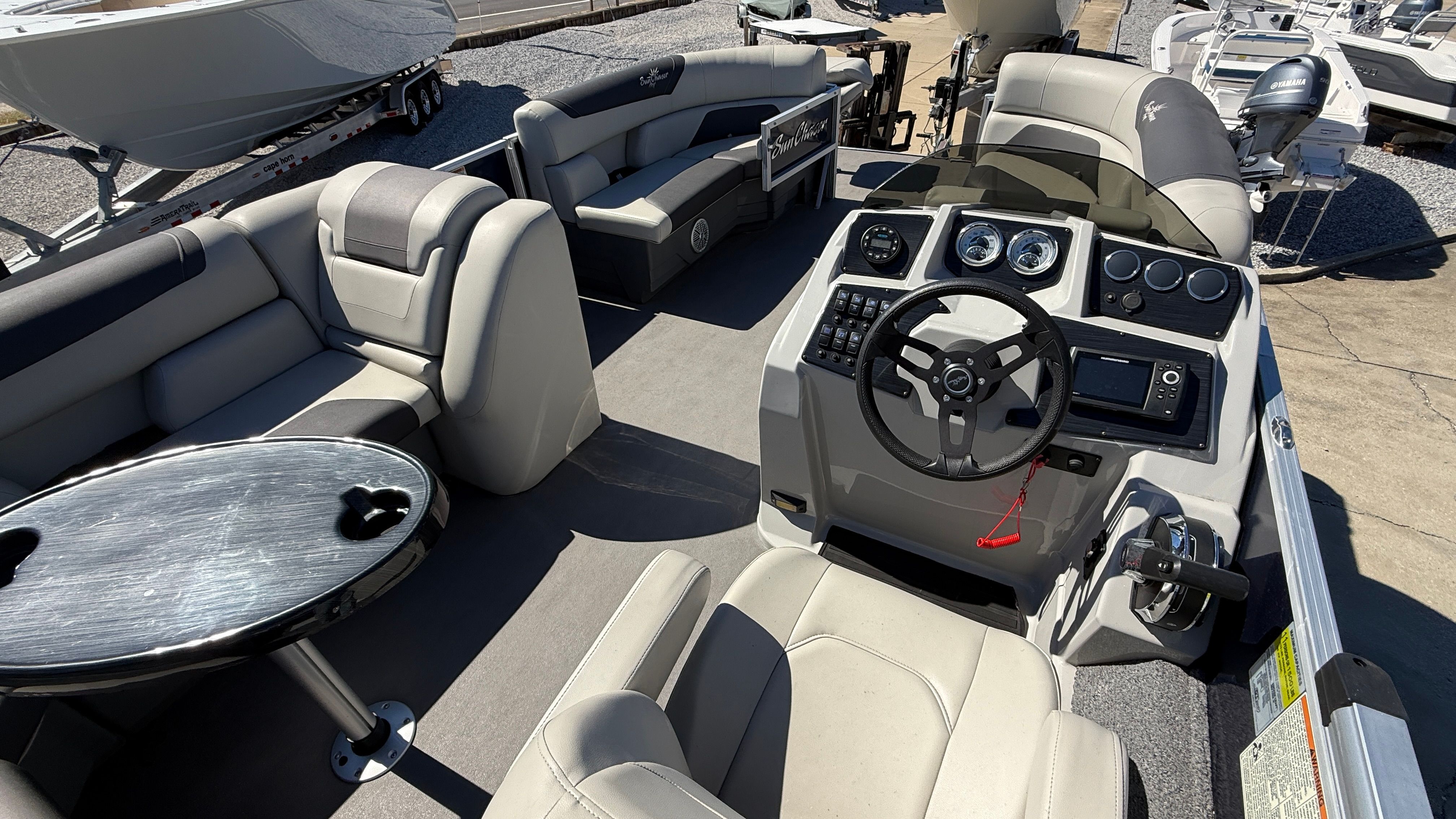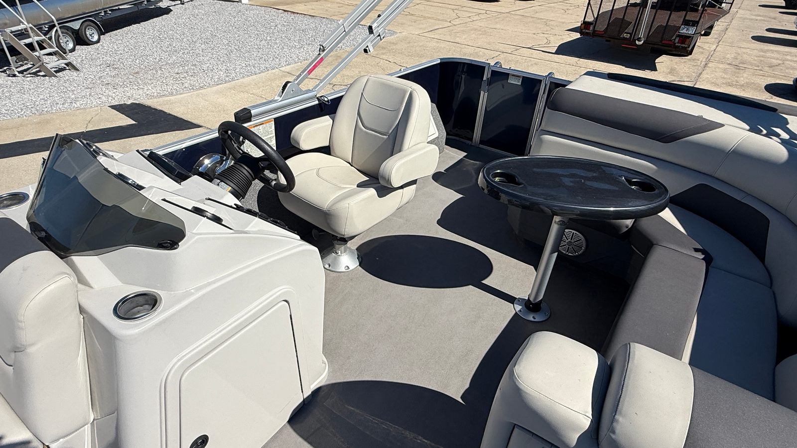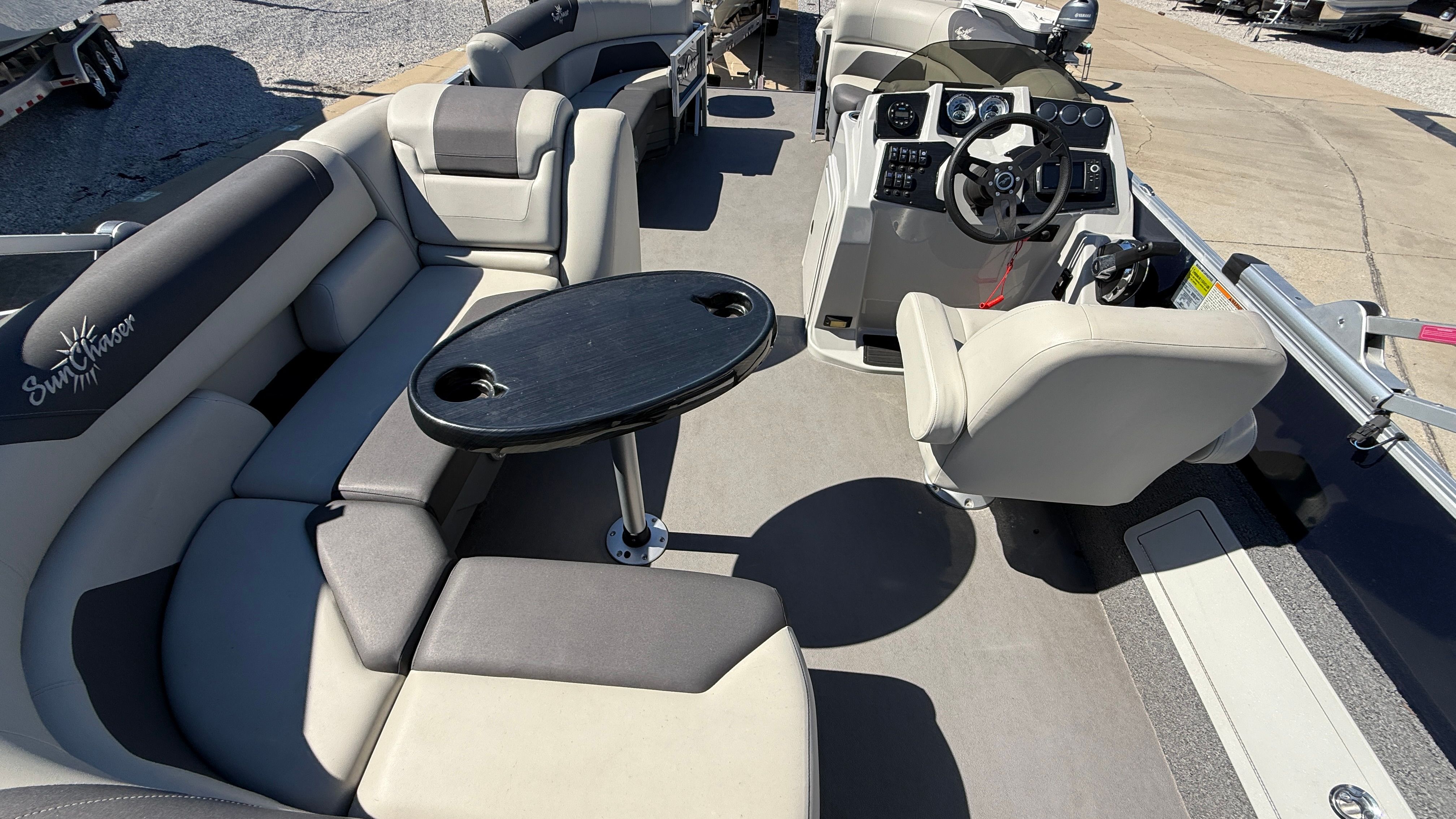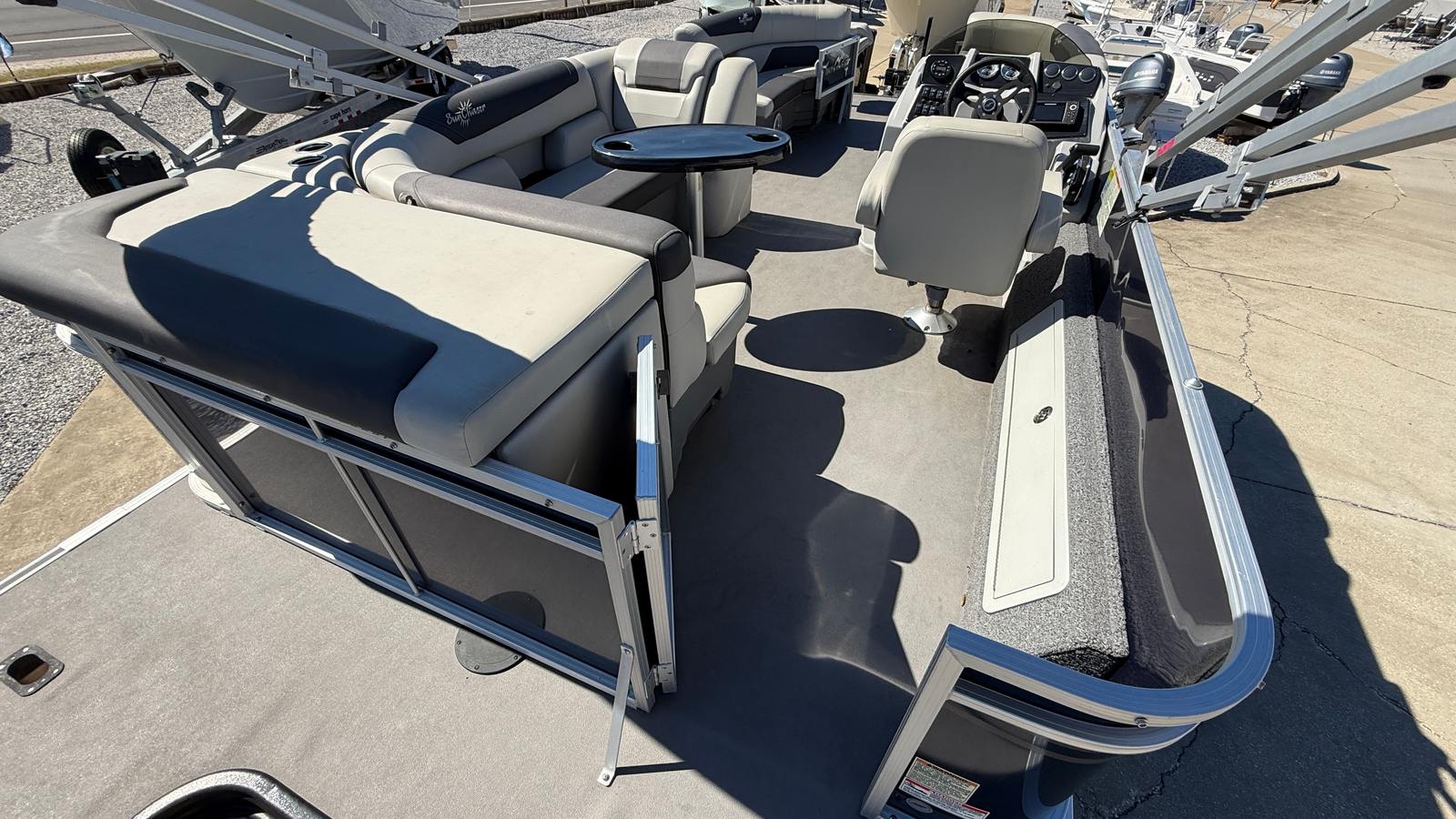 Powering this Sunchaser 22 Fish is a single engine with an impressive 115 horsepower, delivering the perfect balance of speed and efficiency. This engine configuration ensures smooth acceleration and responsive handling, whether you are cruising across the lake or navigating tight marina spaces. The 115 horsepower engine provides plenty of power for towing water toys, reaching your favorite fishing spots quickly, or simply enjoying a leisurely ride with friends and family. The single-engine setup also means easier maintenance and lower operating costs, making this pontoon boat for sale a smart choice for both new and experienced boaters.