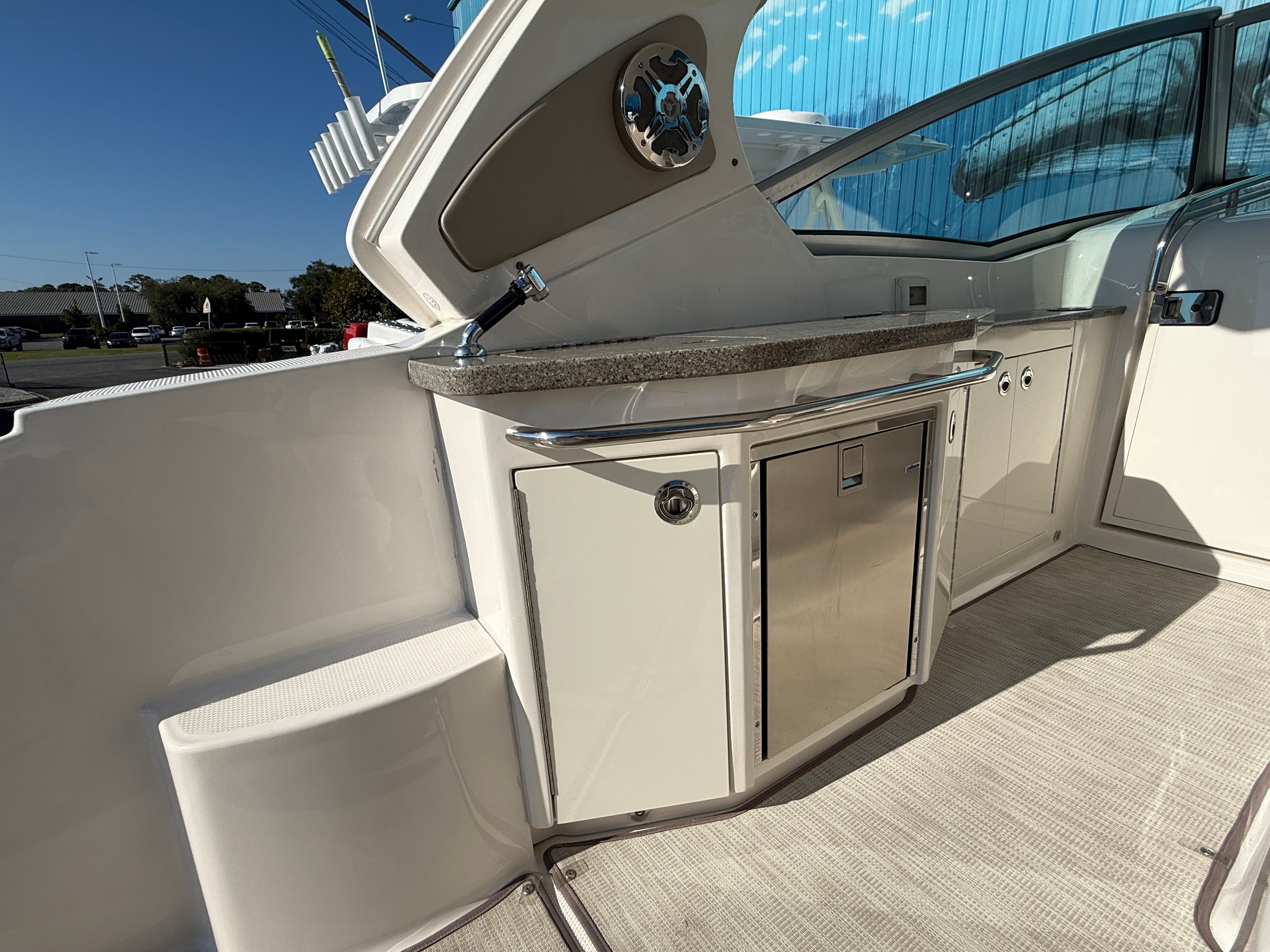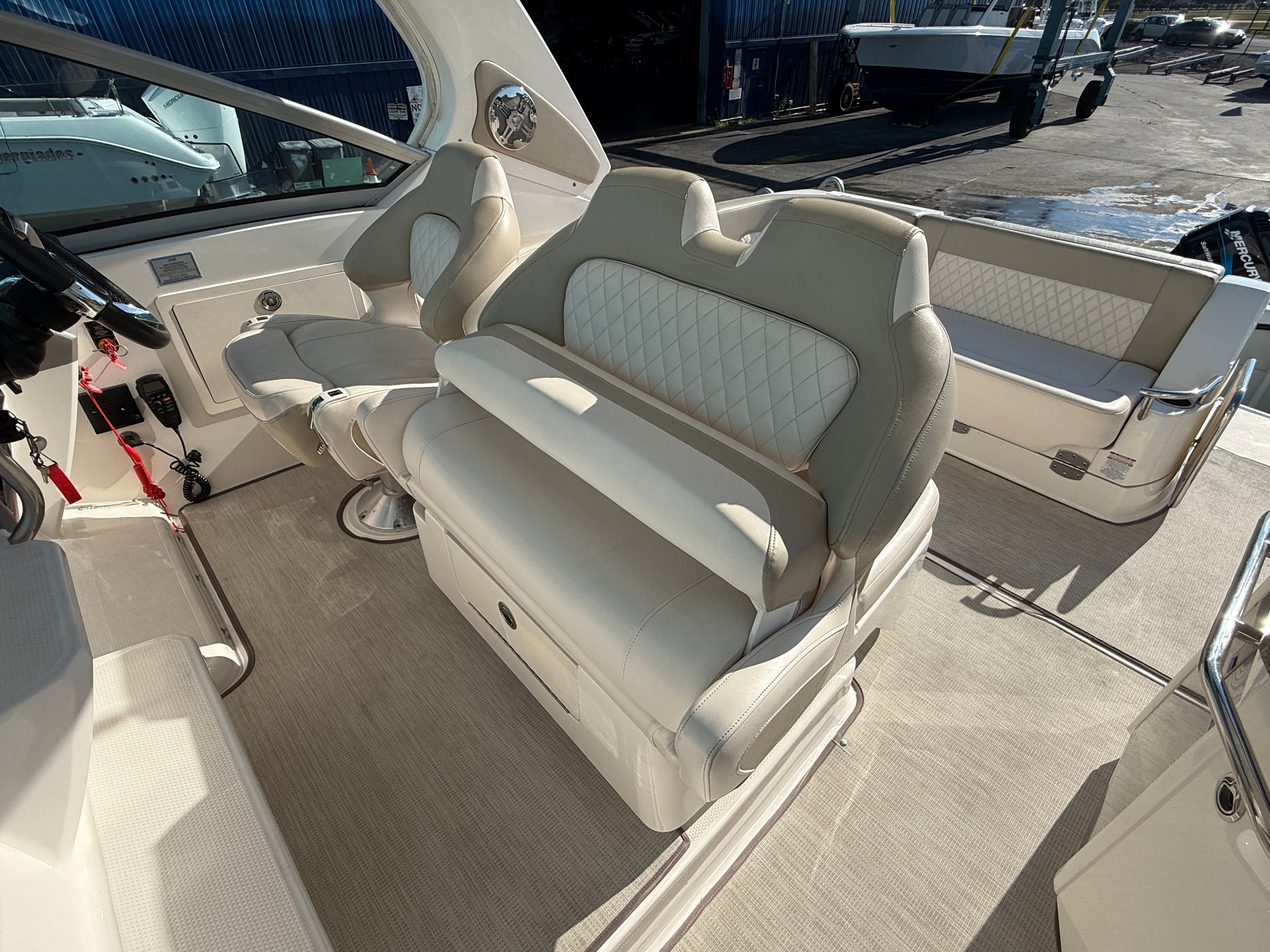 Check out this gorgeous 2018 Chaparral 330 Signature powered with twin Volvo 300 V8 Joystick controlled engines with only 340 hours of use! This boat has been stored in a premium indoor dry storage facility and by her condition it shows! The black gel coat and cockpit vinyl are in great condition! This boat has a full Garmin electronics package with GPS and VHF along with a great sunpad cushion on the forward deck. Its got a great downstairs layout with forward berth, full galley and head and a great midship sitting area that can be converted to a berth. This is an excellent coastal cruising boat that you can overnight on or enjoy for the day! Lots of upgrades and great layout make this one of the most popular cruisers of its kind! Only asking $209,900, this is a deal! Call Legendary Marine at 850-687-1776 or email tvroyall@legendarymarine.com to make your appointment or make your offer today!!!