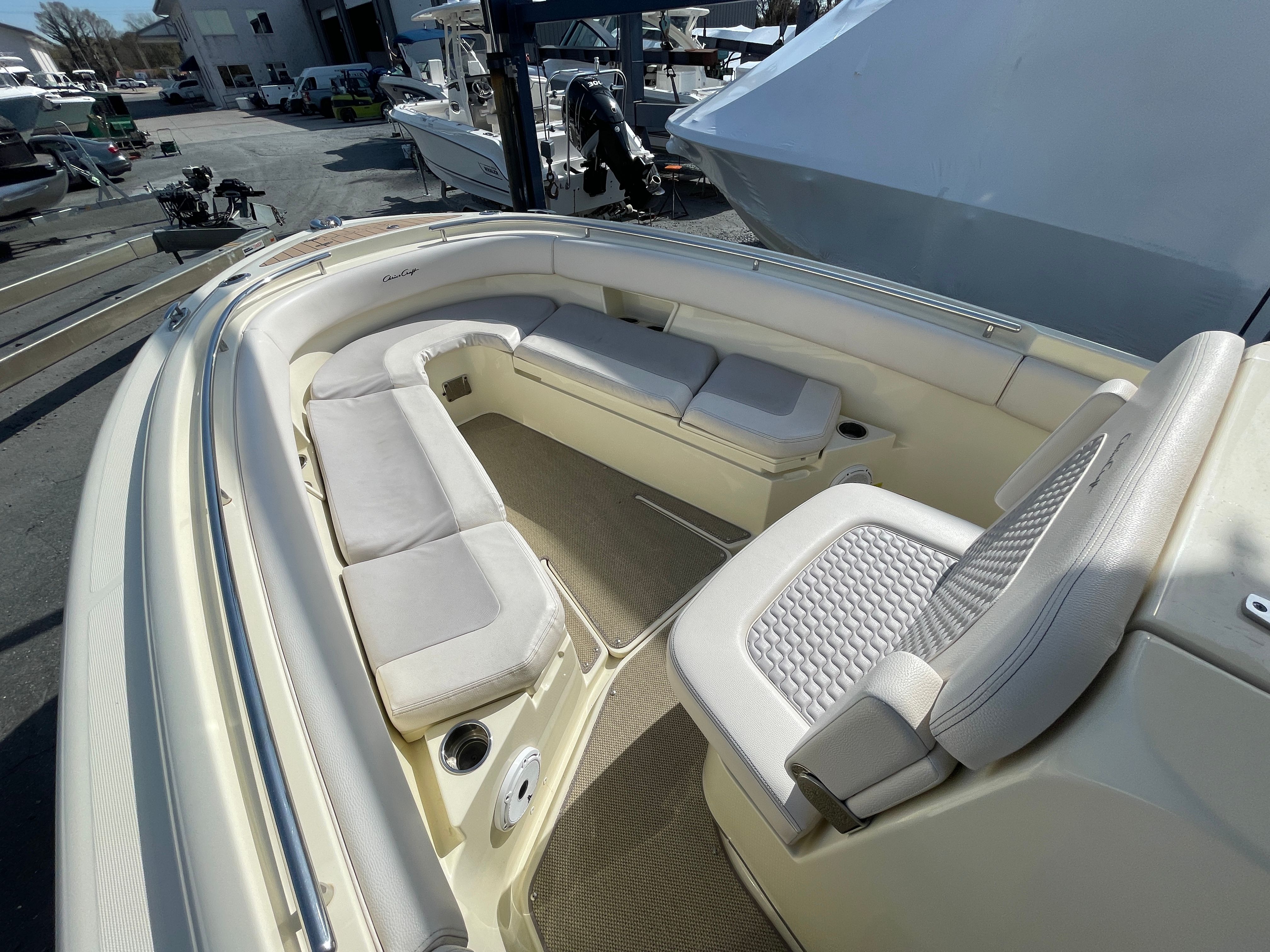 The Chris-Craft Catalina 27 is loaded with features that enhance both comfort and functionality. The center console layout provides 360-degree access around the boat, making it ideal for fishing, entertaining, or simply enjoying the view. The spacious deck is designed for versatility, with ample seating for guests and plenty of room to move about. High-quality materials and finishes are evident throughout, reflecting Chris-Craft’s commitment to luxury and durability.This center console boat for sale is built to handle a variety of conditions, offering a smooth and stable ride even when the water gets choppy. The Catalina 27’s thoughtful design includes practical storage solutions for all your gear, ensuring that everything you need is within easy reach. From the helm to the bow, every detail has been carefully considered to maximize comfort, convenience, and enjoyment on the water.