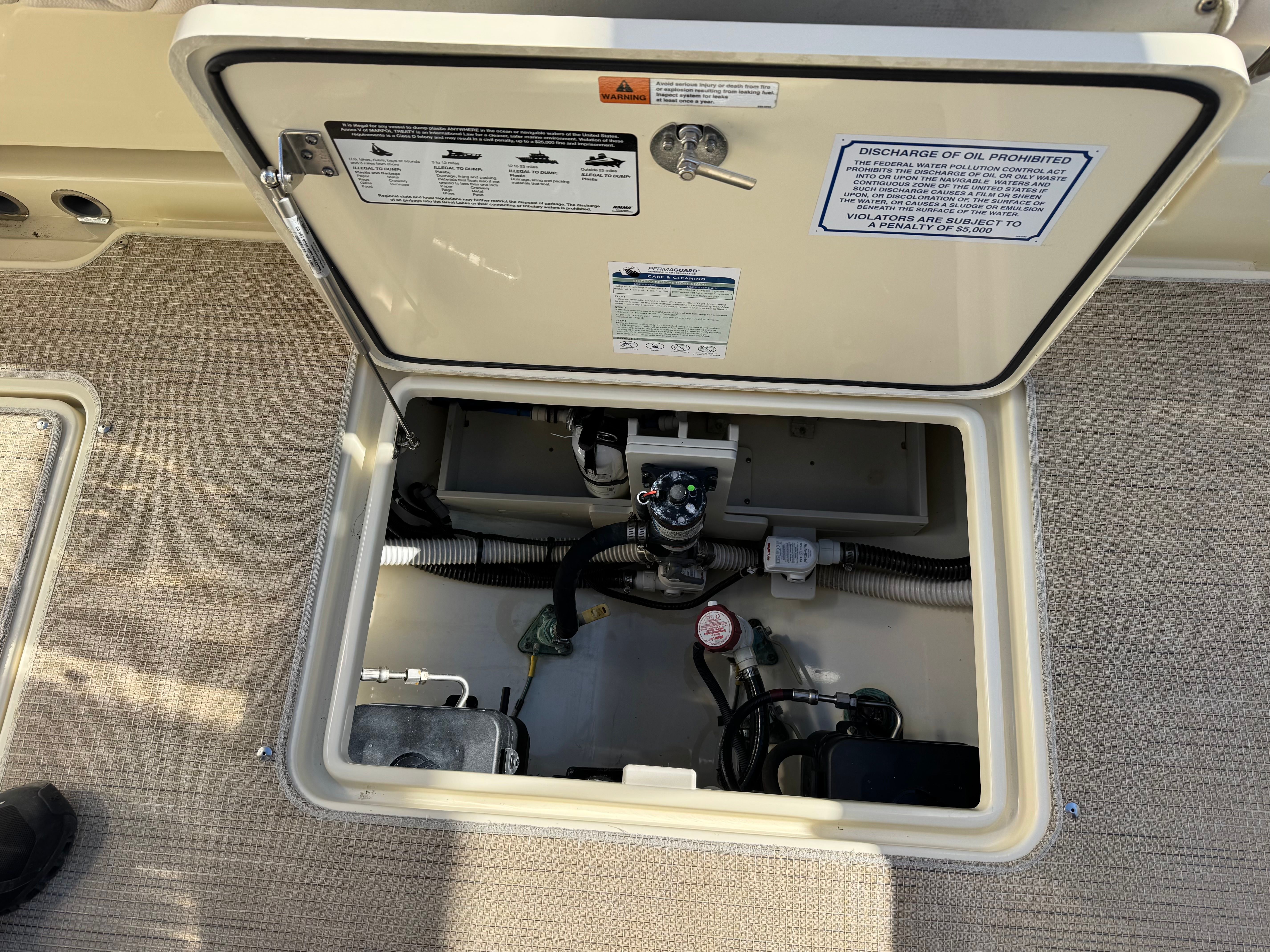 The transom bench and side seats can easily be folded out of the way for additional space on the boat. The open area is perfect for big water toys, other gear, or just for people and pets to move around more freely.