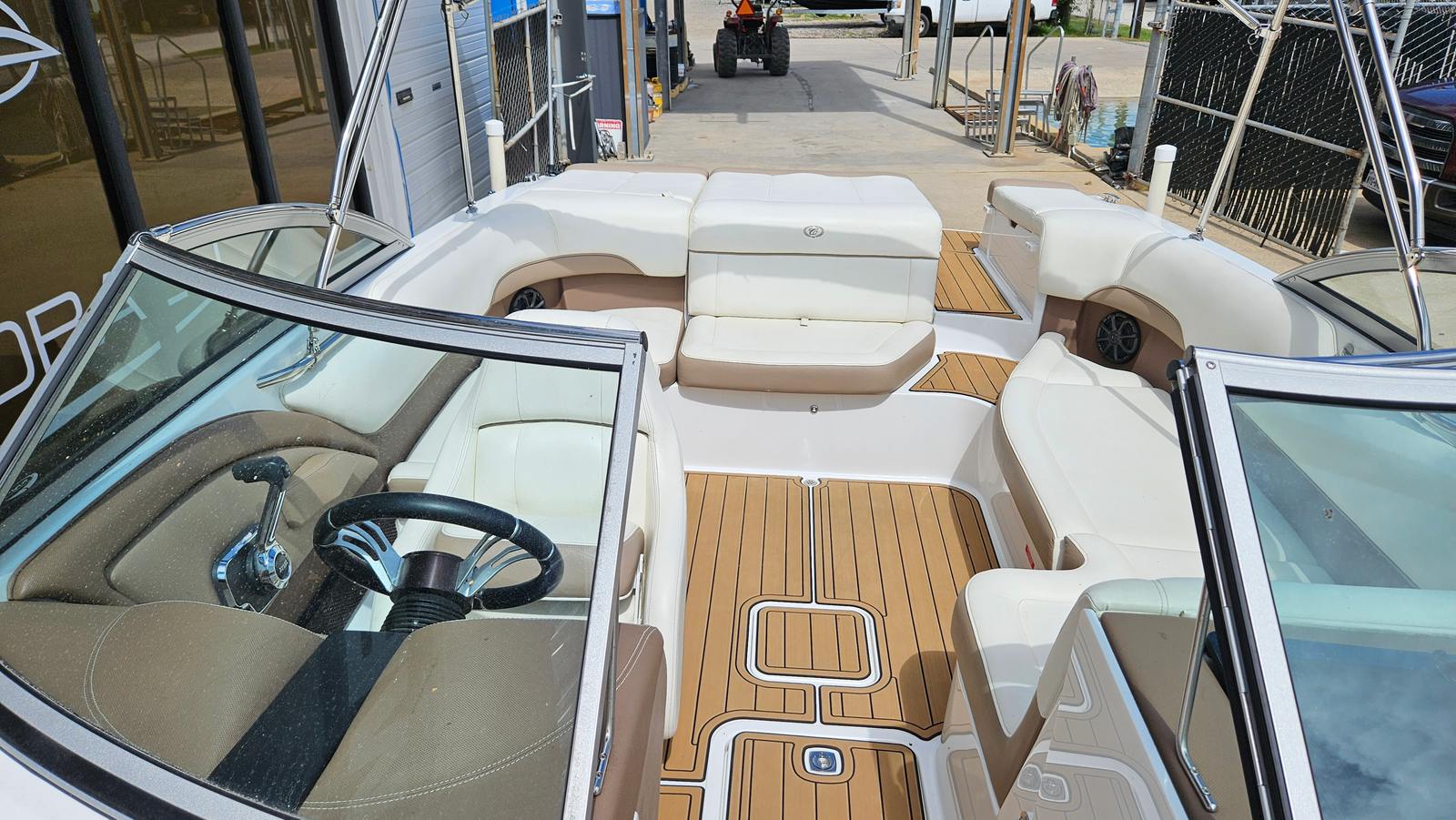 The 2013 Cobalt 220 is as practical as it is fun. The tandem axle trailer simplifies launching, retrieving, and storing the boat, making it convenient for owners who want to explore different waterways or store their boat off-season. The efficient Volvo engine offers a balance of power and fuel economy, helping you make the most of every outing without breaking the bank. The Sea Deck flooring is easy to clean and maintain, ensuring your boat stays looking great with minimal effort. The counter rotating props provide added confidence when docking or maneuvering in tight spaces, making this bowrider boat for sale a smart choice for both new and experienced boaters.