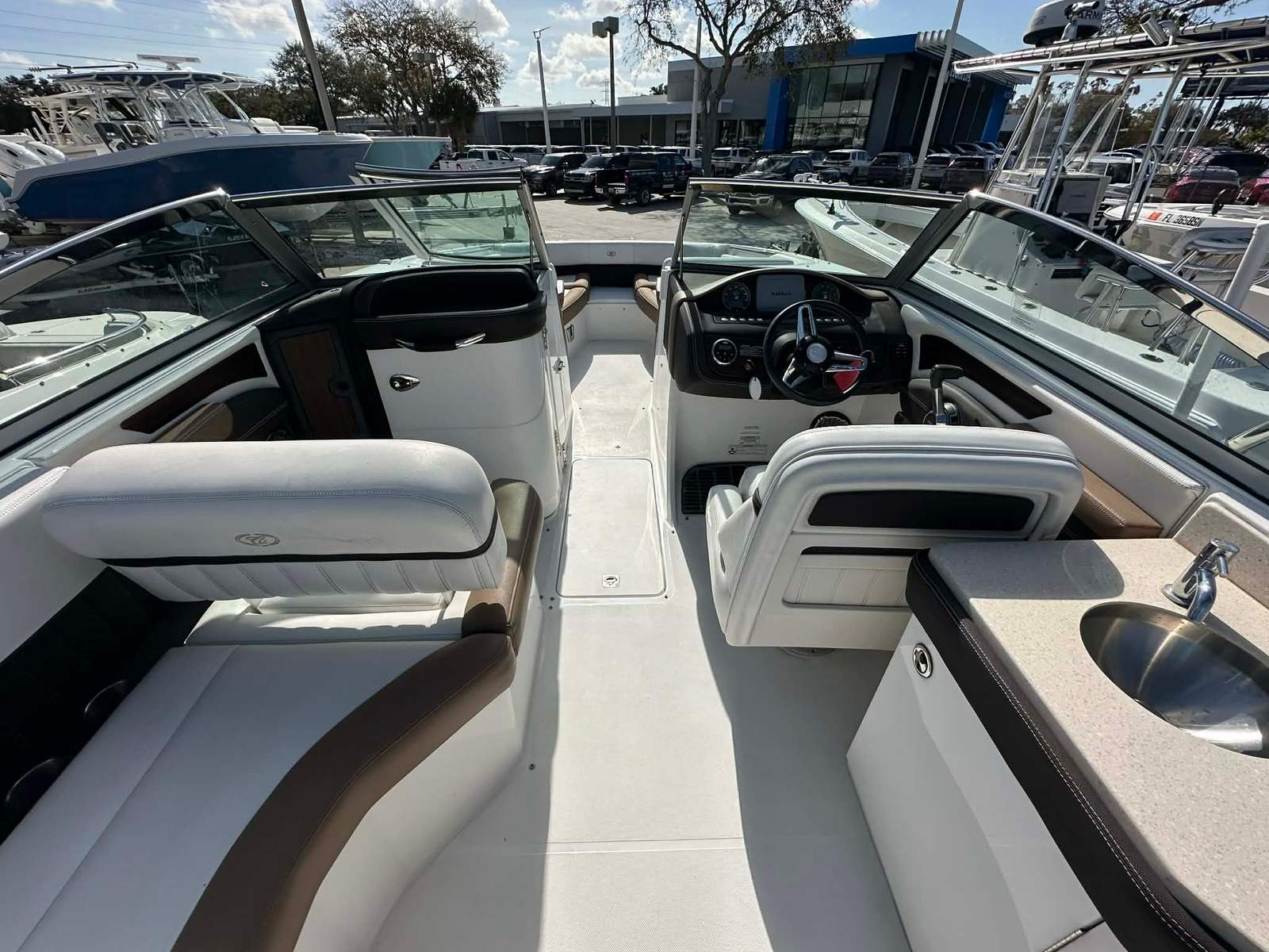 The 2015 Cobalt 26 SD is a testament to Cobalt’s renowned craftsmanship and attention to detail. Measuring approximately 23 feet in length, this used Bowrider offers ample space for family and friends, making it the perfect vessel for memorable outings. The boat’s striking profile and premium build quality are immediately apparent, ensuring you turn heads at every marina and on every waterway. With only 139 engine hours, this Cobalt 26 SD has been gently used and meticulously maintained, offering you peace of mind and lasting value.