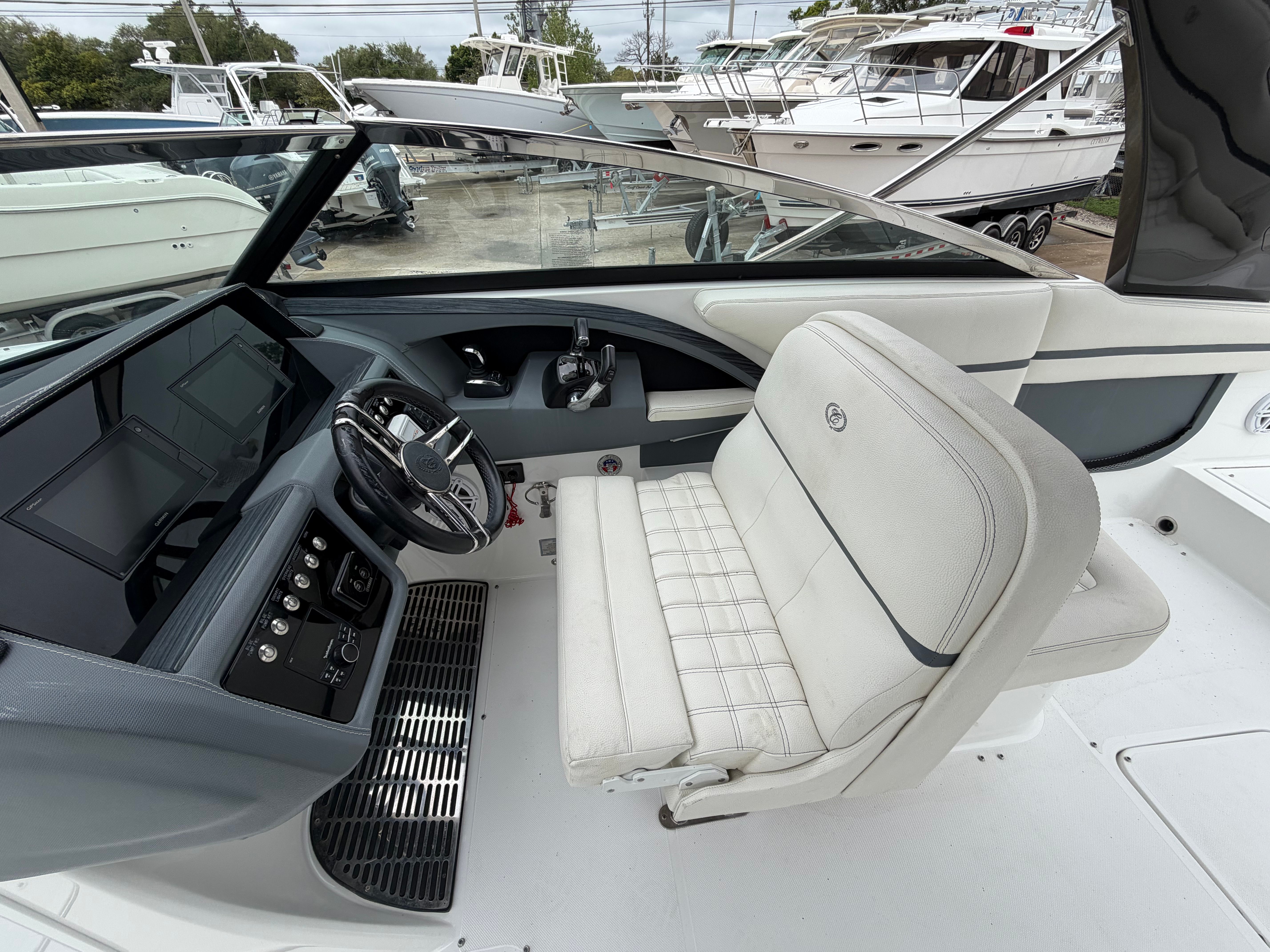 The 2021 Cobalt 30 SC is a stunning example of modern boat engineering, measuring just over 29 feet in length. Its sleek lines and sophisticated design make it a true head-turner at any marina or dock. As a center console boat, the 30 SC offers exceptional visibility and maneuverability, making it ideal for a variety of on-water activities. The used condition of this Cobalt boat for sale ensures you get premium quality and performance at a more accessible price point, without sacrificing the luxury and reliability that Cobalt is known for.