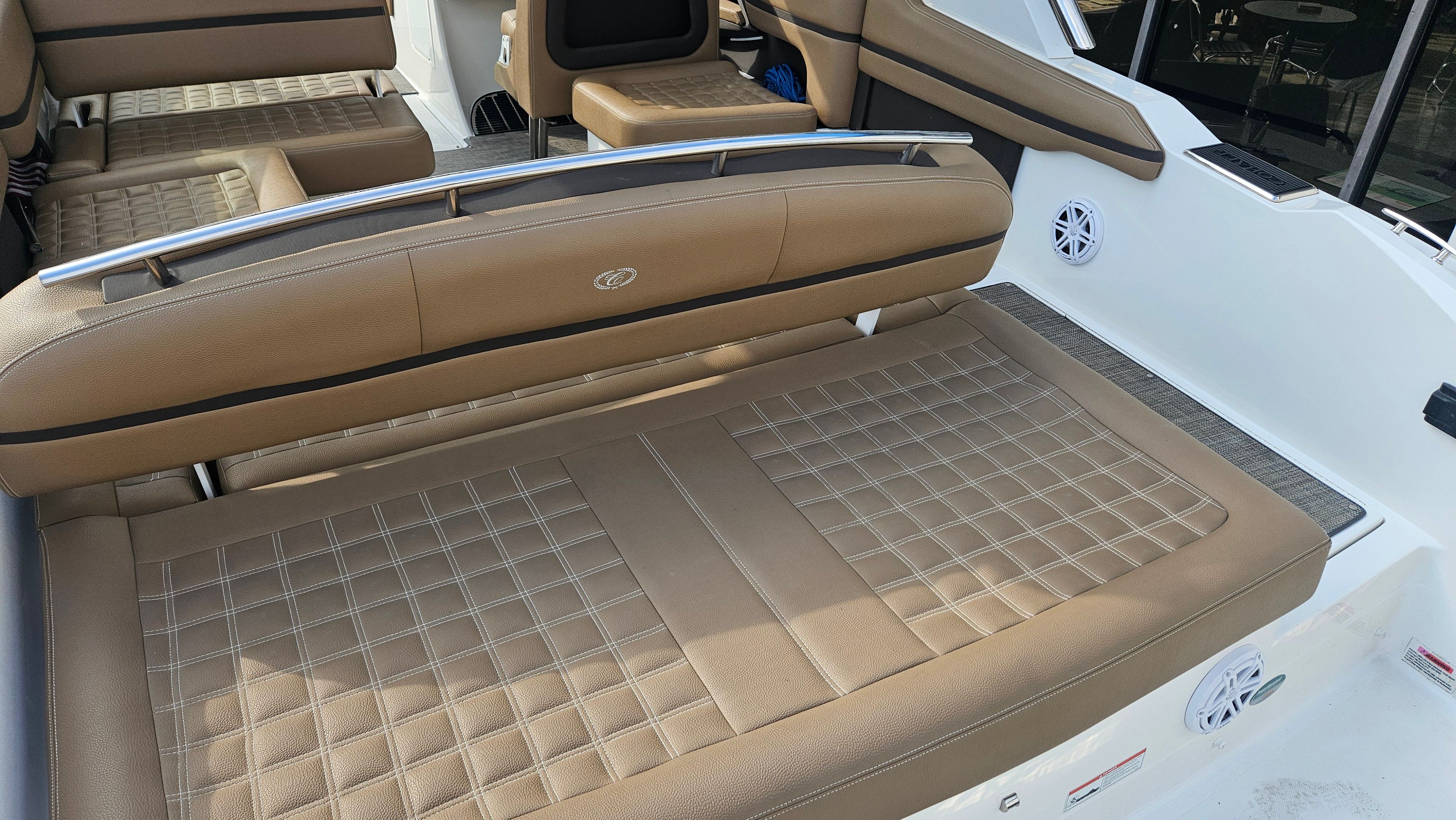 The Cobalt 30 SC is designed with practicality in mind, making ownership easy and enjoyable. The windlass anchor system simplifies the process of securing your boat, saving you time and effort. The aluminum triple axle trailer offers reliable transport, so you can take your boat to new destinations or store it safely when not in use. The twin Yamaha F300 engines provide not only impressive power but also efficient operation, helping you maximize your time on the water while minimizing fuel consumption. The snap-in carpet is easy to clean and maintain, ensuring your boat stays looking its best. With thoughtful features like these, the Cobalt 30 SC is a Bowrider boat for sale that delivers both convenience and performance.