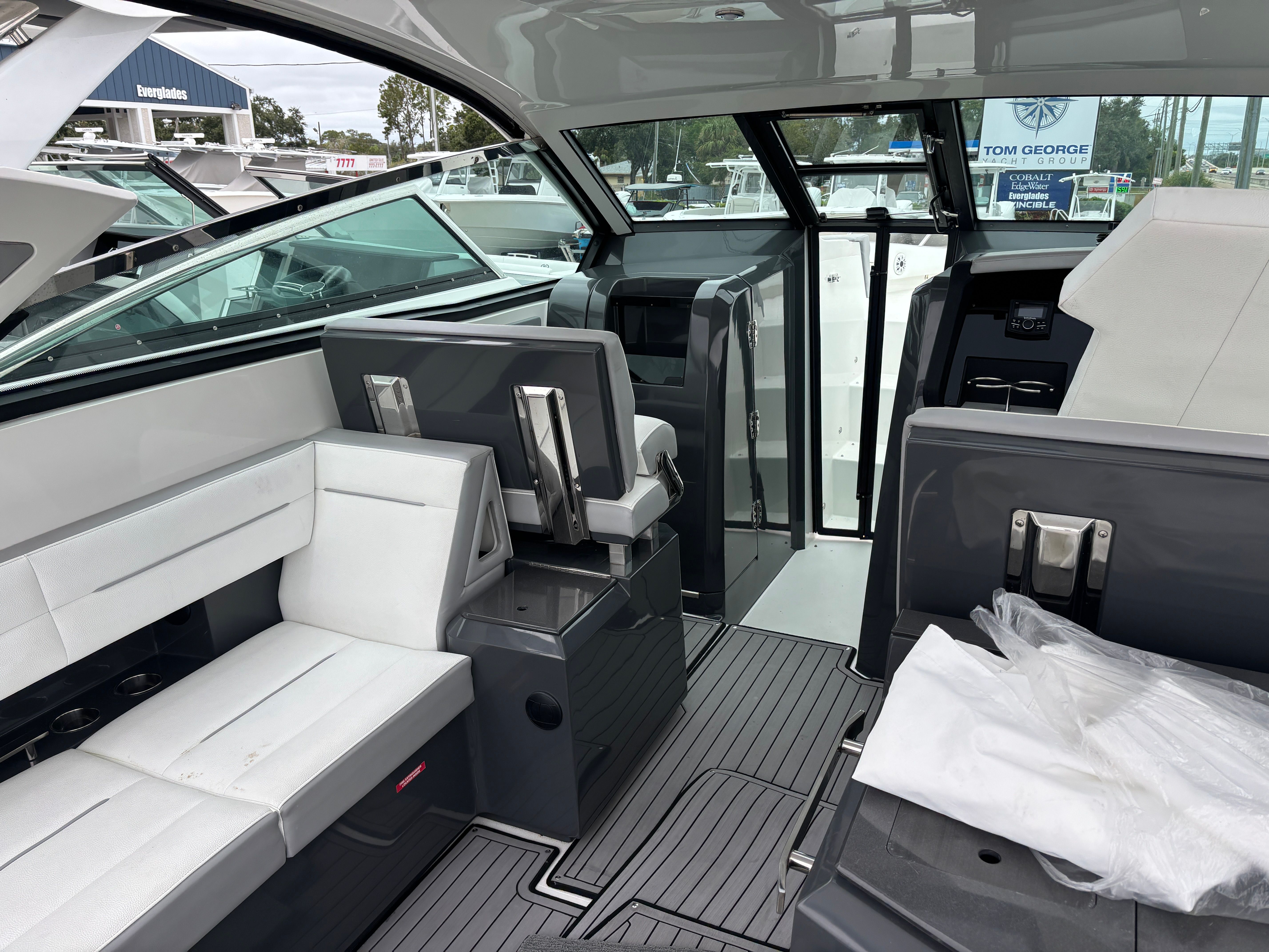 Under the hood, the Cobalt A36 is powered by twin engines that deliver a combined 860 horsepower, providing exhilarating speed and smooth handling. This powerful setup ensures that you can cruise effortlessly across the water, whether you are heading out for a day of watersports, exploring new destinations, or simply enjoying a leisurely ride. The dual-engine configuration not only enhances performance but also offers added reliability and control, making docking and maneuvering a breeze. With the Cobalt A36, you can expect responsive acceleration, impressive top speeds, and a ride that is as thrilling as it is comfortable.