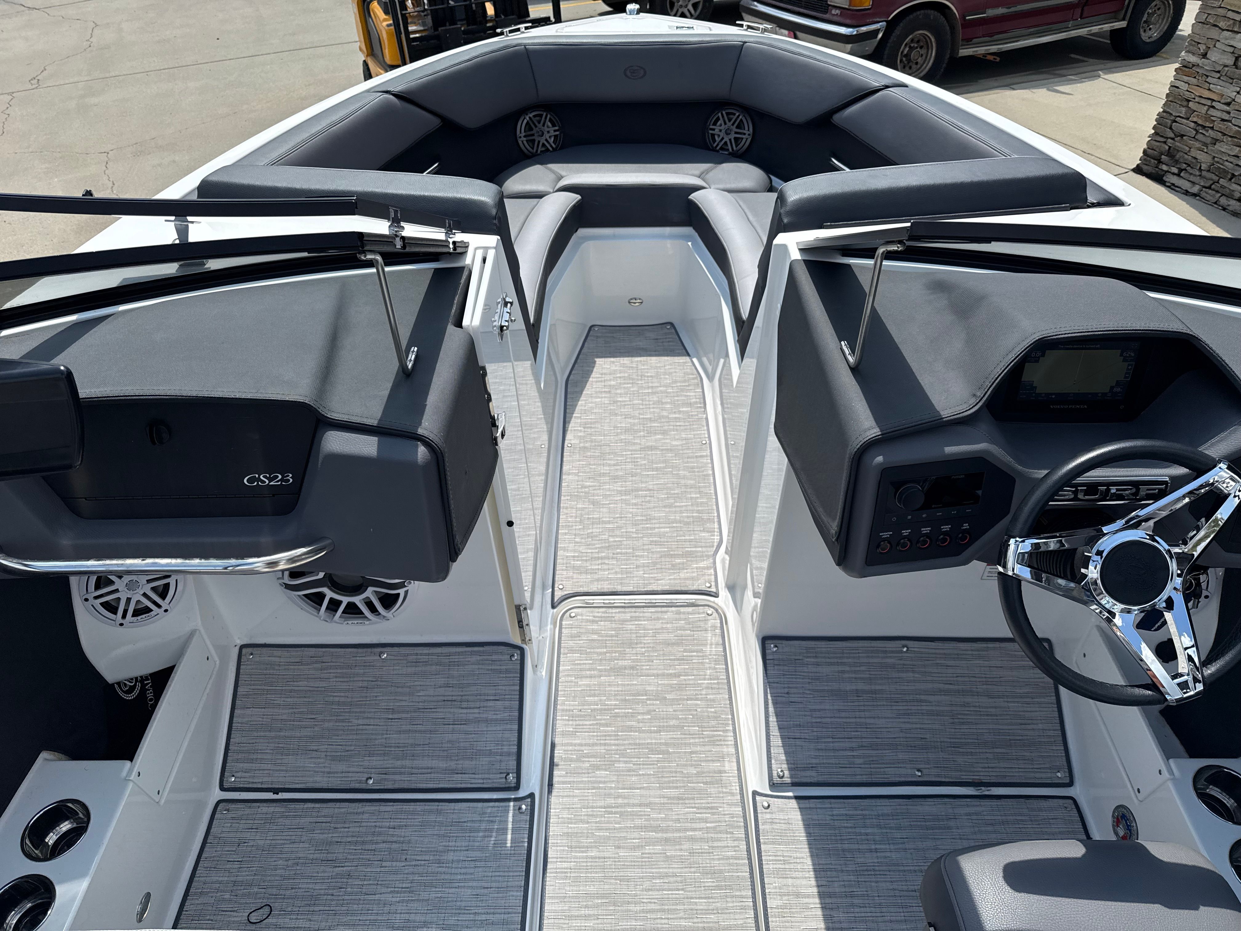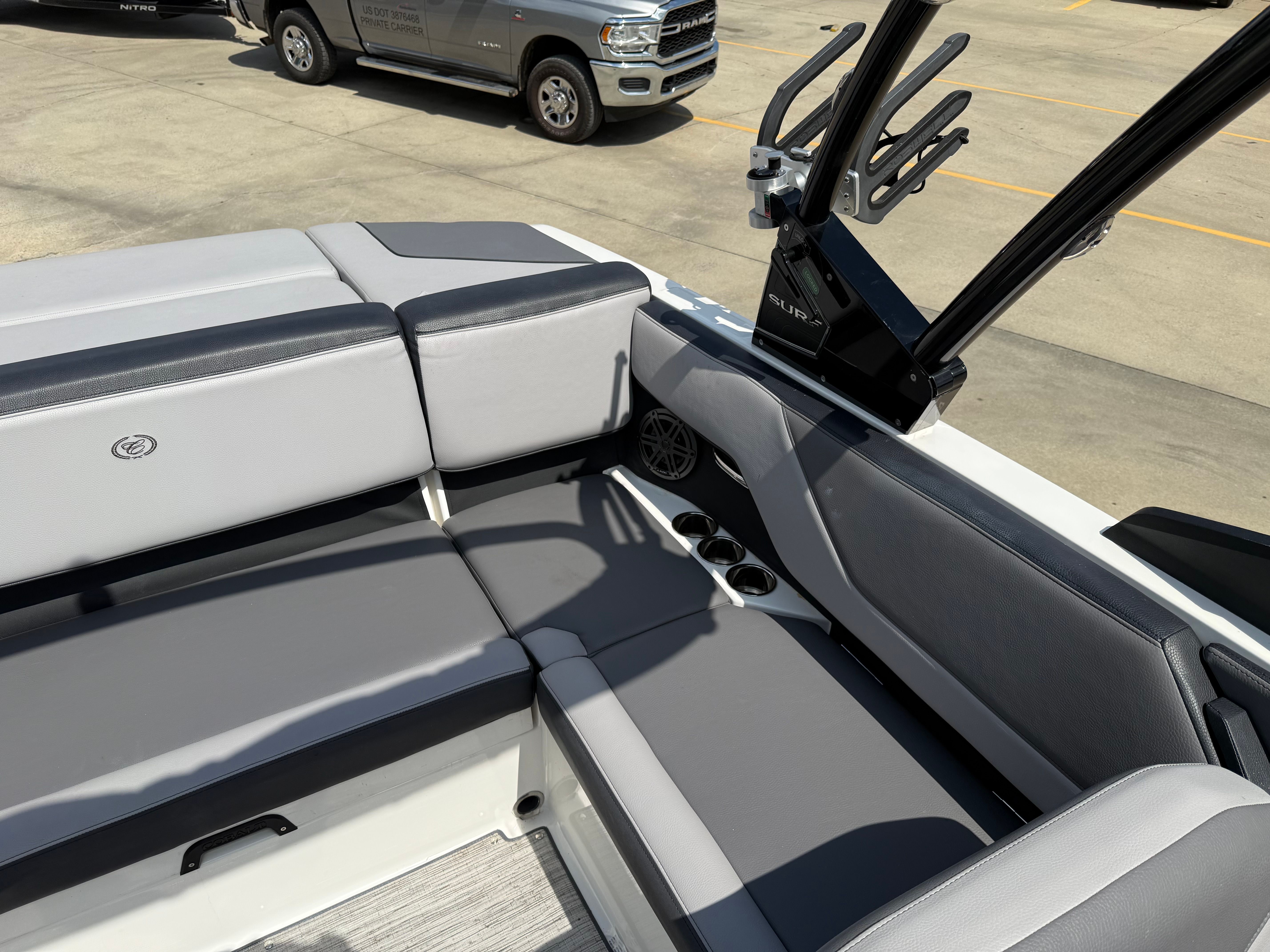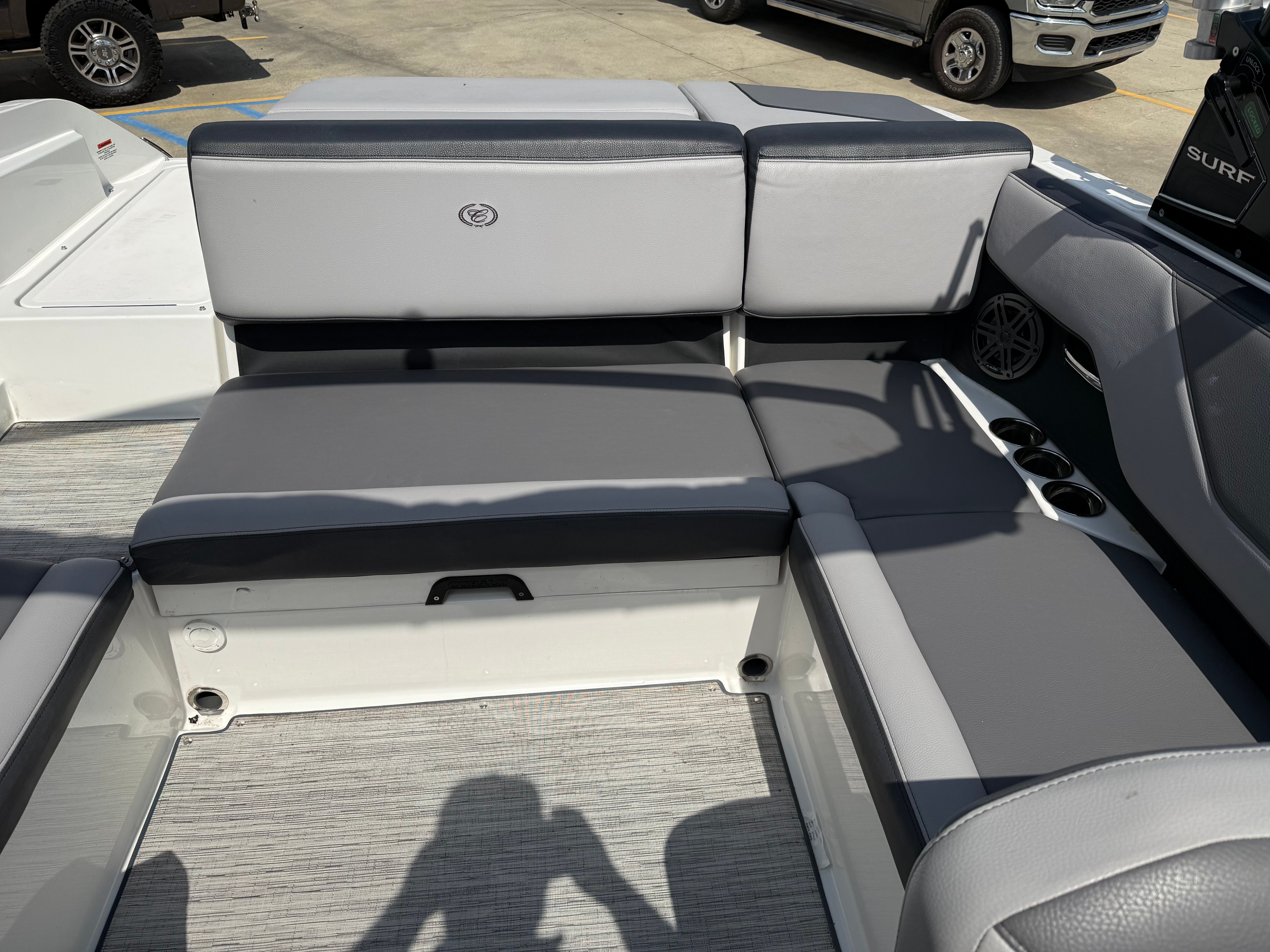 Under the hood, the 2024 Cobalt CS23 Surf is powered by a robust 300-horsepower engine, delivering the kind of exhilarating performance that water sports enthusiasts crave. With just one engine and only 80 hours of use, this bowrider boat for sale is primed for many more seasons of reliable fun.The CS23 Surf’s engine is engineered for smooth acceleration, responsive handling, and impressive top speeds, making it ideal for wake surfing, tubing, or simply cruising across the lake. The single-engine setup simplifies maintenance and operation, while the advanced hull design ensures a stable, comfortable ride even in choppier conditions. Whether you’re carving through waves or enjoying a leisurely sunset cruise, the CS23 Surf offers a dynamic and enjoyable boating experience.