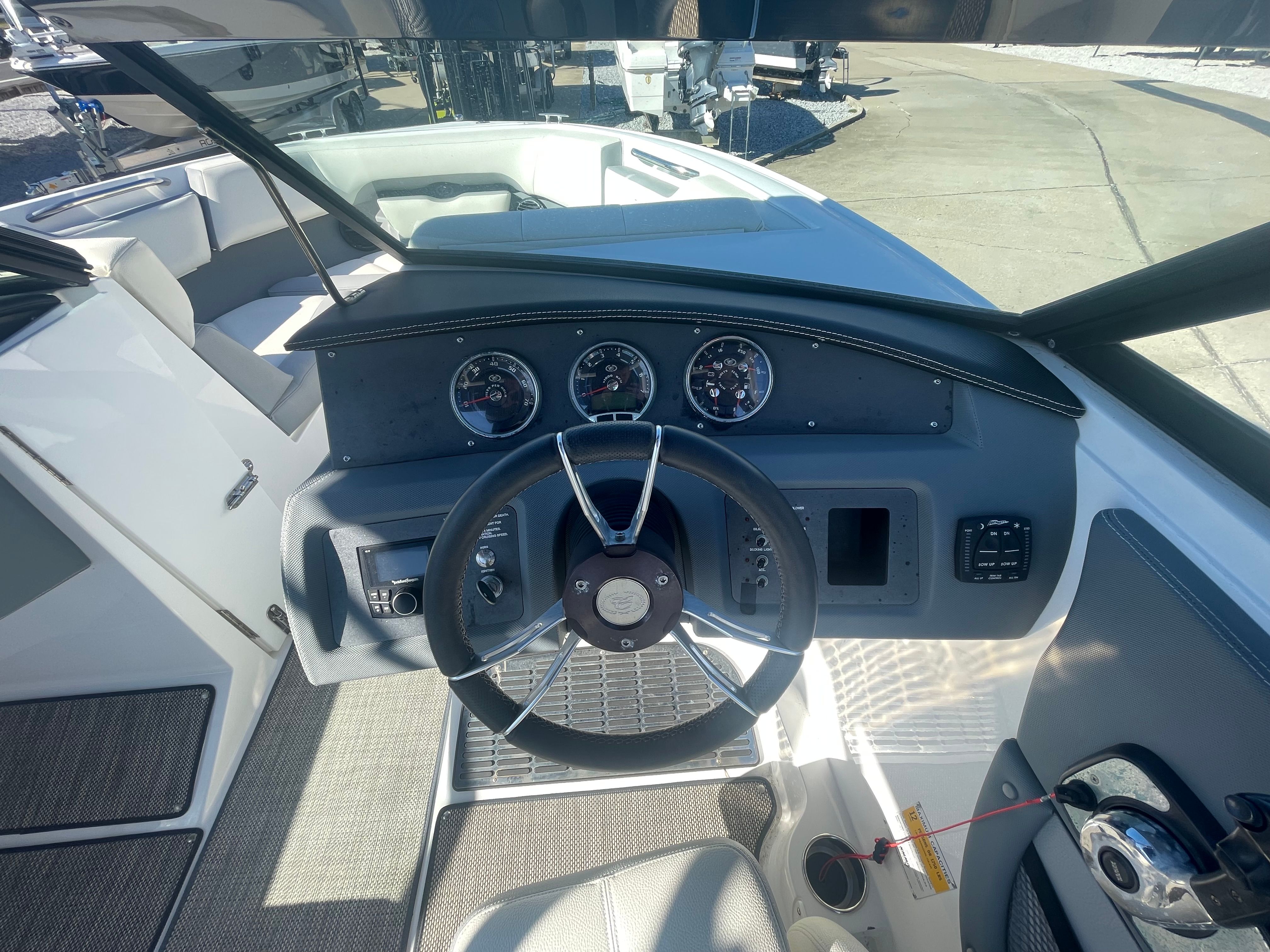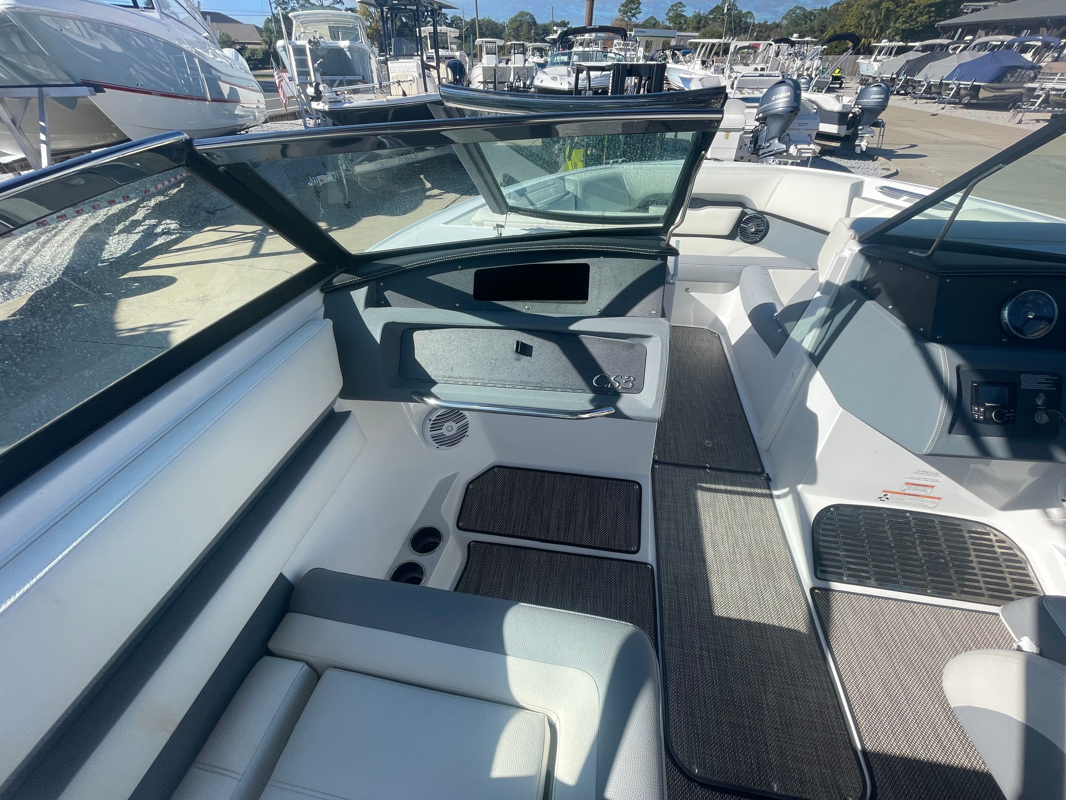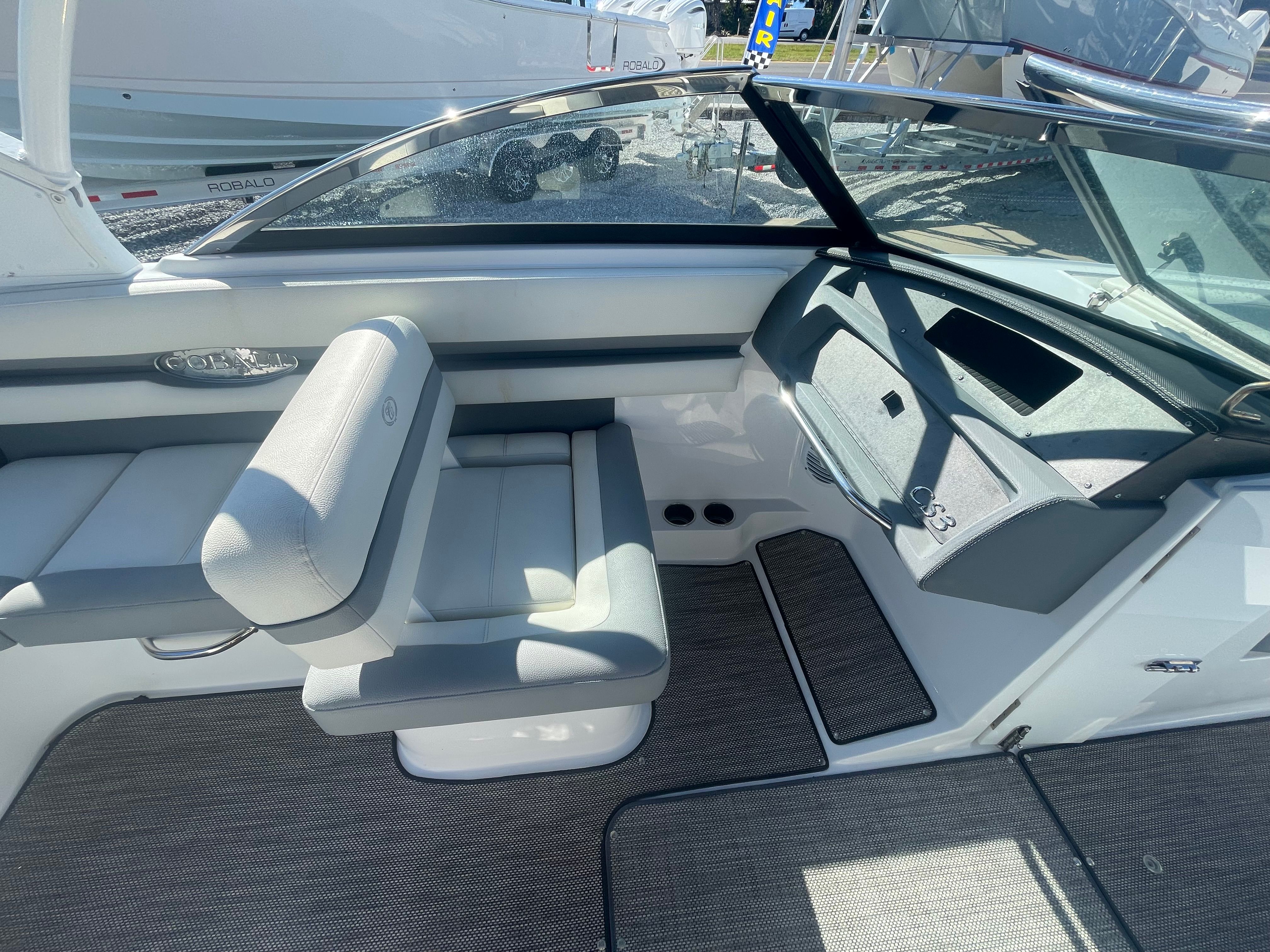 The Cobalt CS23 Bowrider is designed with both luxury and practicality in mind. Its spacious layout provides comfortable seating for passengers, allowing everyone to relax and enjoy the ride. The open Bowrider configuration is perfect for socializing, sunbathing, or simply taking in the views. The high-quality materials and finishes throughout the boat reflect Cobalt’s commitment to excellence, ensuring durability and a premium feel.With a length of 23.42 feet, the CS23 offers plenty of room for gear, refreshments, and recreational equipment. The thoughtful design maximizes usable space, making it easy to move around and enjoy every moment on board. The single-engine setup simplifies maintenance and operation, while the 280 horsepower ensures you have all the power you need for a variety of activities.