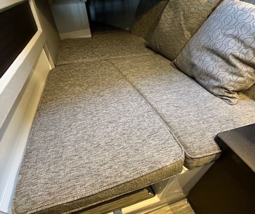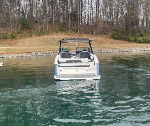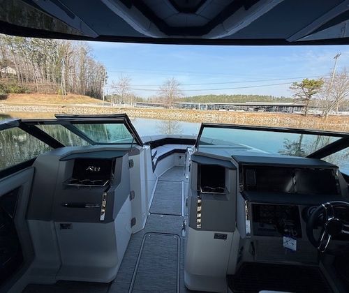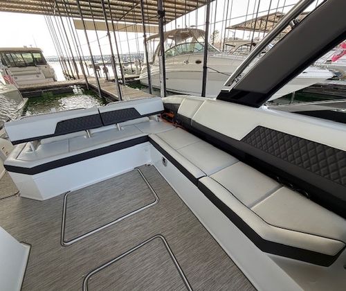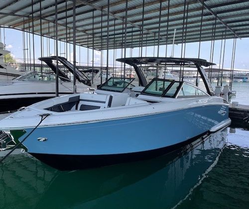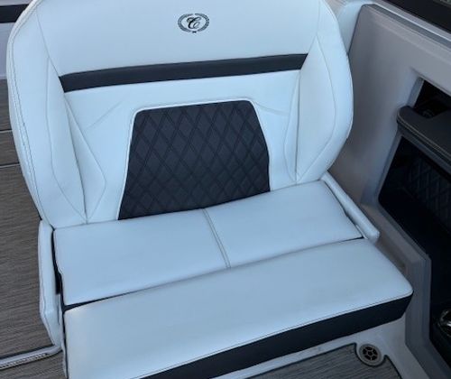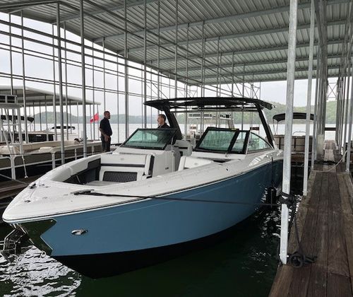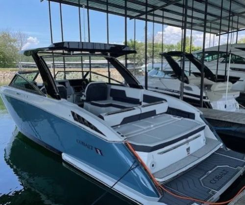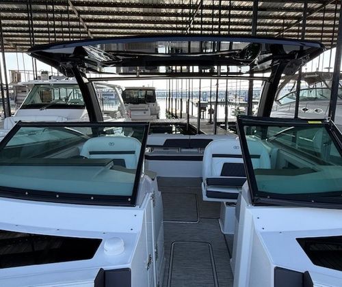 This 2022 Cobalt R33 has been kept in a covered slip on a freshwater lake and shows extremely well throughout. Designed for those who want more than a typical day boat, the R33 blends size, comfort, and performance into a layout that’s both social and thrilling. With a 33’4” overall length and a wide 10’6” beam, this Cobalt offers generous space for entertaining while still delivering the sharp handling and sleek profile Cobalt is known for.
