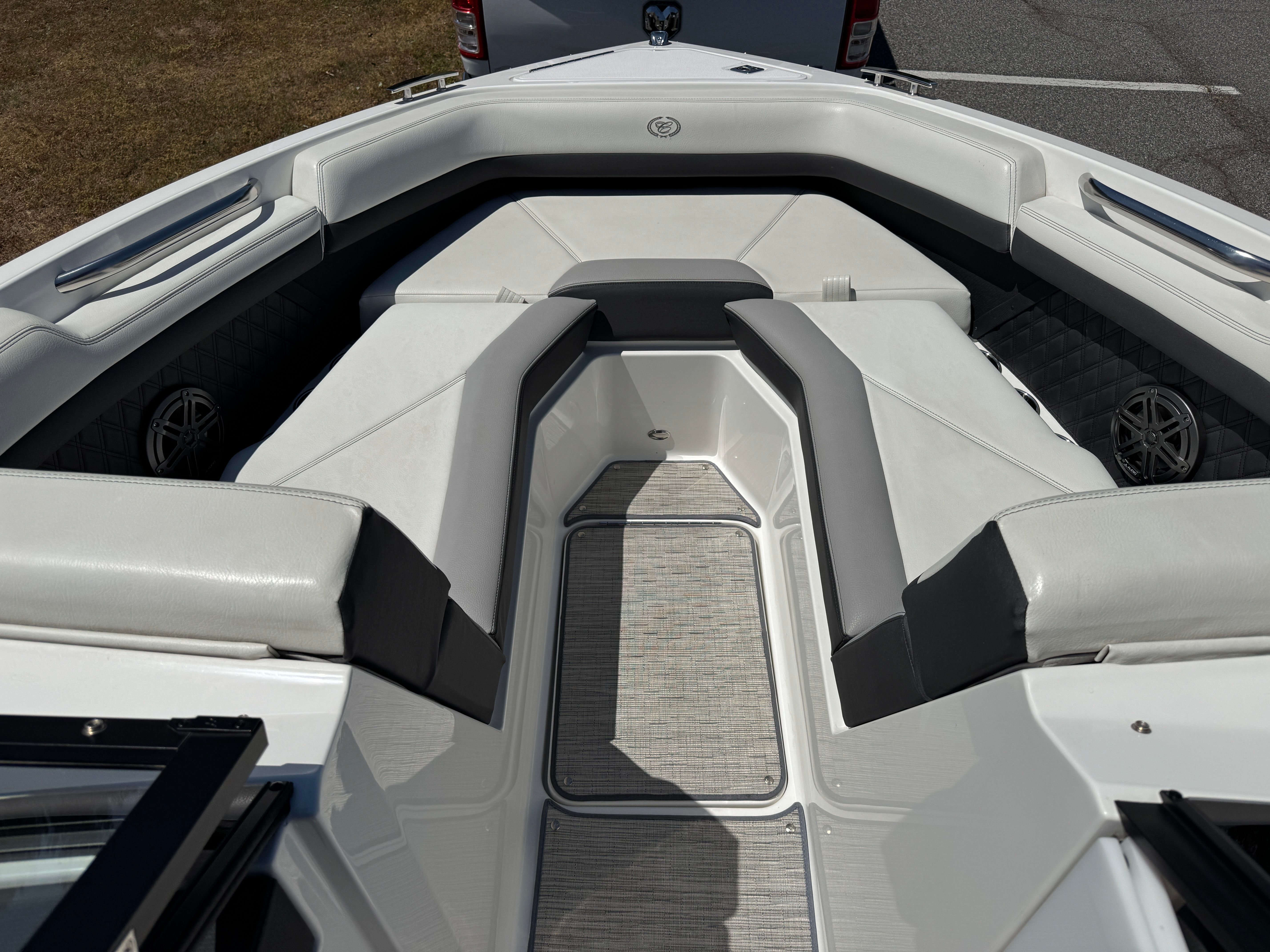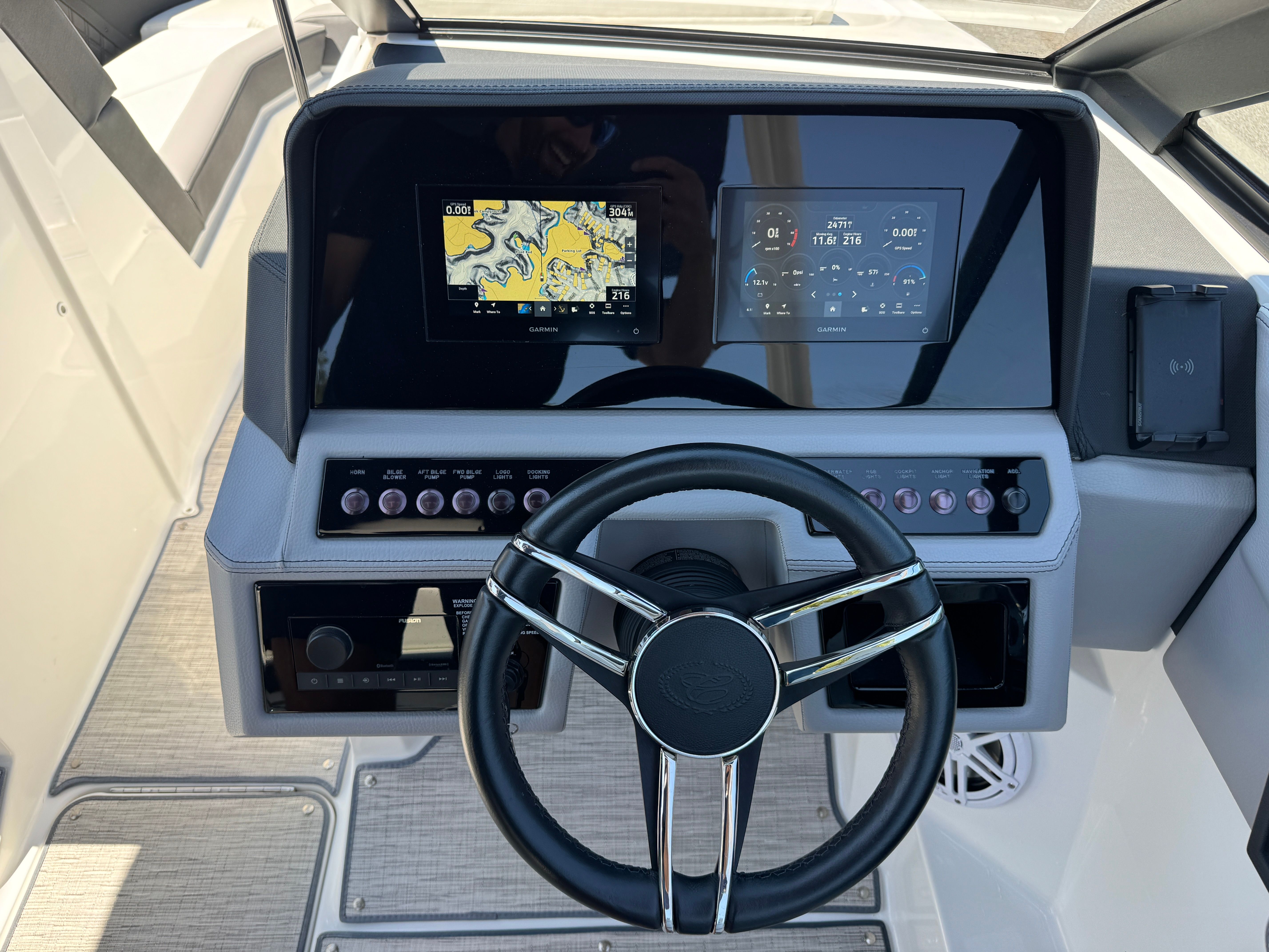 The 2024 Cobalt R4 is packed with features that make every outing enjoyable and memorable. The spacious 24.25-foot layout offers ample seating for guests, with plush upholstery and ergonomic design ensuring comfort throughout the day. The Bowrider configuration provides an open, social atmosphere, allowing everyone on board to relax and enjoy the ride. The R4’s cockpit is thoughtfully arranged for both the captain and passengers, with intuitive controls and easy access to all areas of the boat. Storage is abundant, making it simple to stow away gear, water toys, and personal items for a clutter-free experience. The used Cobalt R4 also boasts premium materials and finishes, reflecting the brand’s commitment to quality and durability.