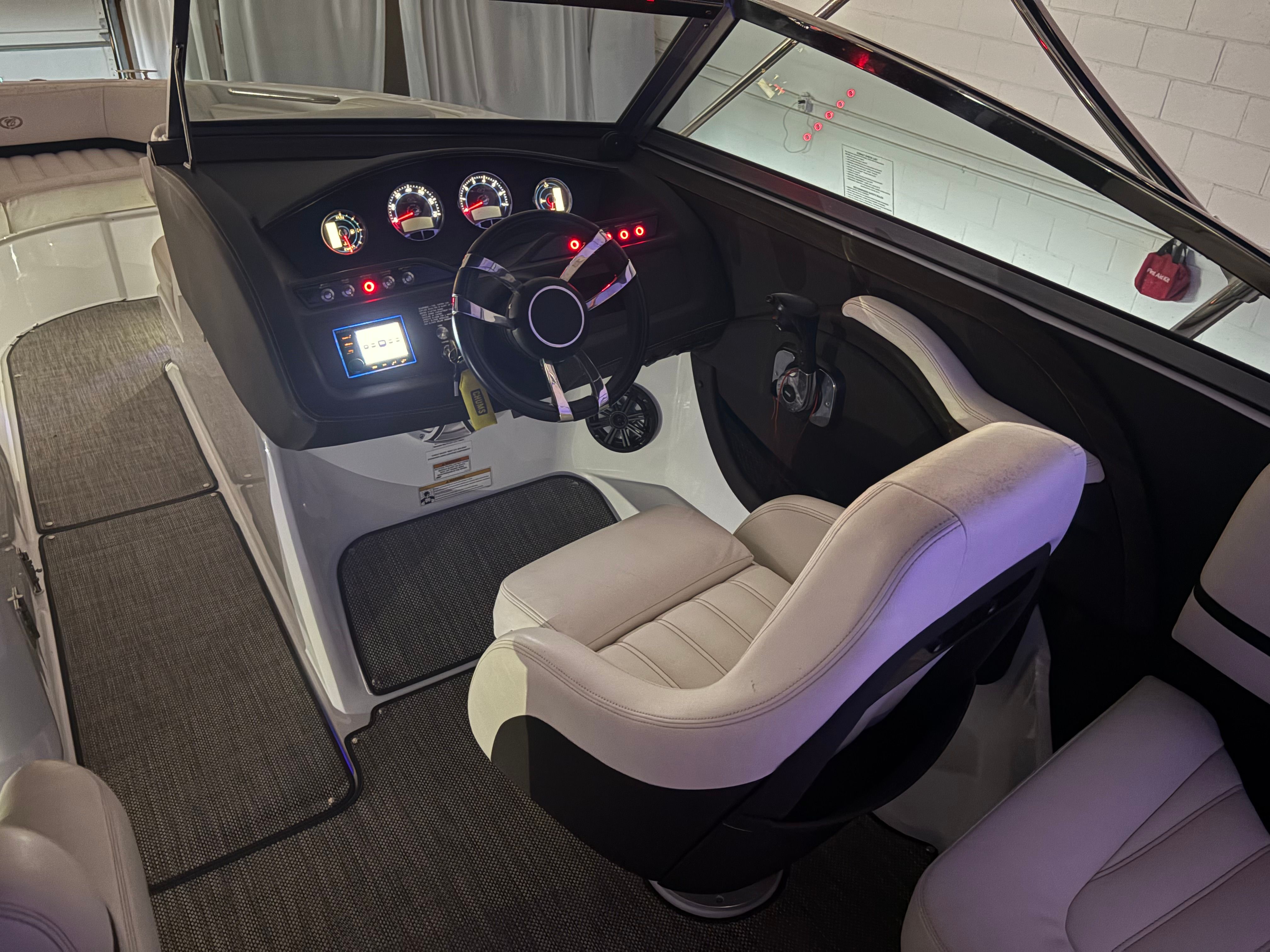The 2016 Cobalt R5 is packed with features that enhance both functionality and enjoyment. Its spacious bow seating area is perfect for lounging, while the ergonomic helm ensures the captain has full control and comfort. The boat’s thoughtful layout maximizes usable space, offering plenty of room for guests to move about freely.Special features of the Cobalt R5 include high-quality upholstery, durable flooring, and strategically placed storage compartments that keep gear organized and accessible. The boat’s design emphasizes both style and practicality, with sleek contours and premium finishes that set it apart from other bowriders on the market.