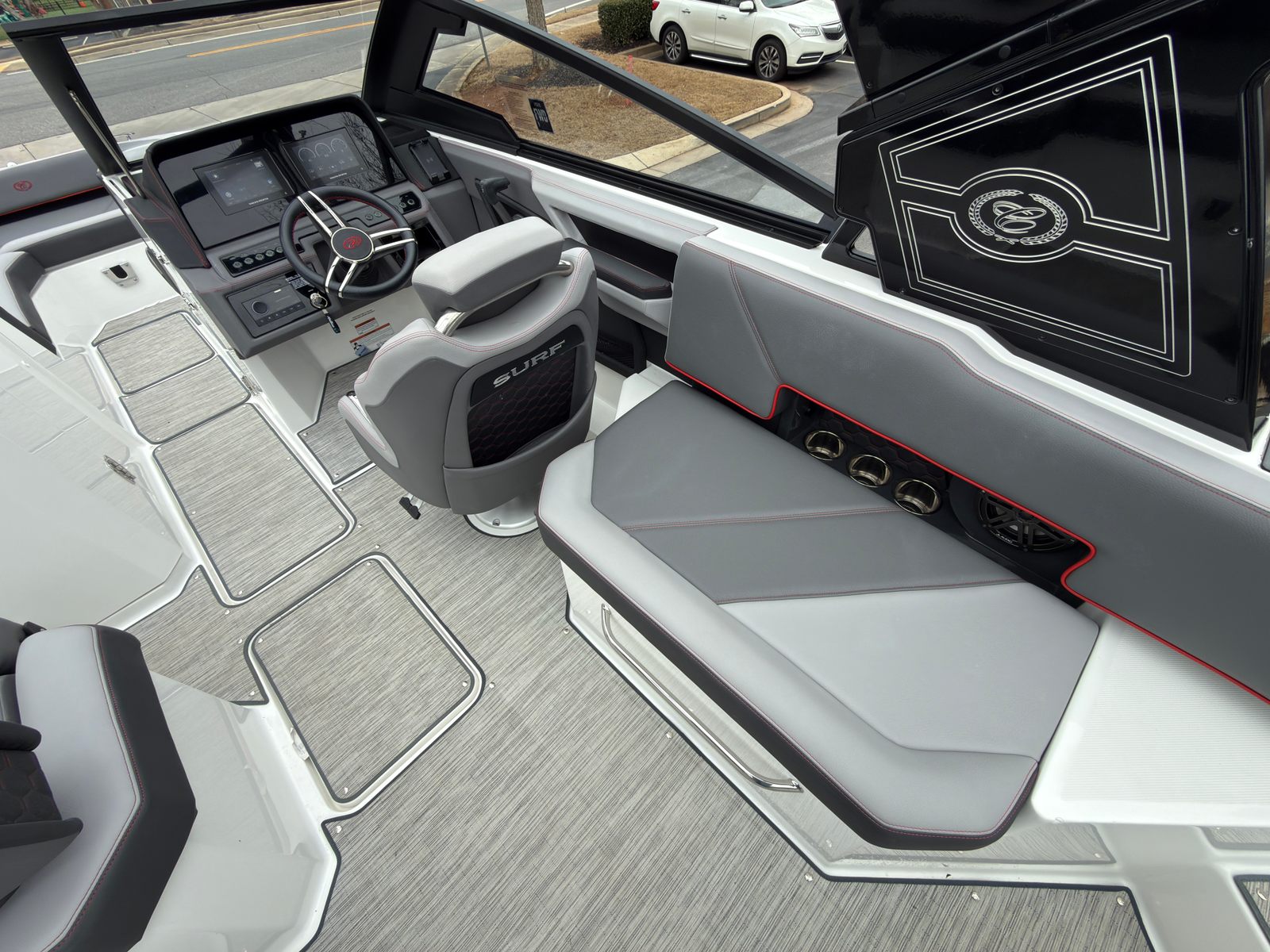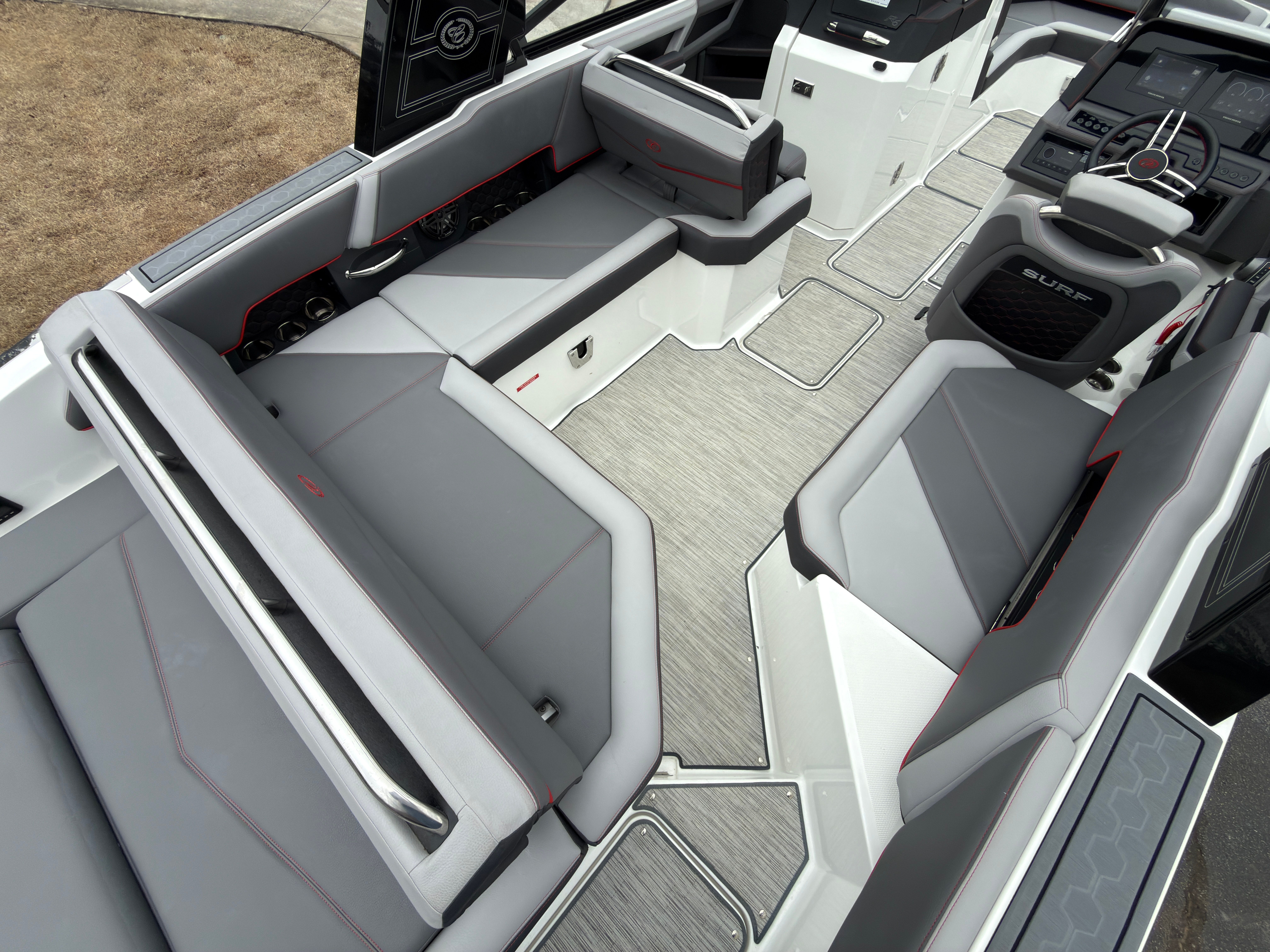 At the heart of the 2022 Cobalt R6 Surf is a powerful 380-horsepower engine, engineered to deliver thrilling acceleration and smooth cruising. Whether you’re carving through waves or gliding across calm waters, this bowrider’s robust powerplant ensures an exhilarating ride every time. The R6 Surf’s advanced hull design enhances stability and maneuverability, making it easy to handle for both seasoned boaters and newcomers alike. With its impressive horsepower, this Cobalt boat for sale is ready to take on any adventure, from high-speed runs to leisurely cruises.