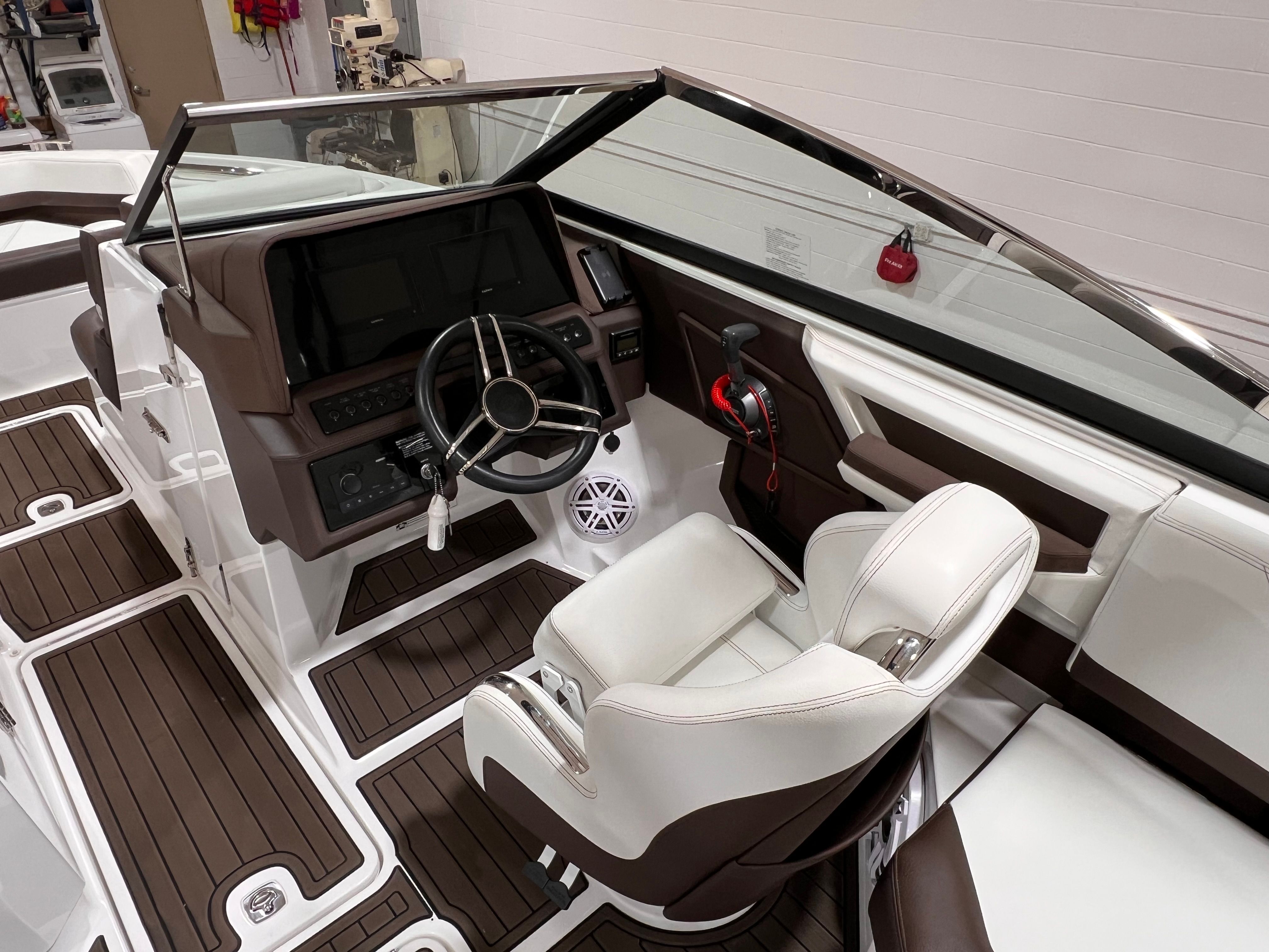 The 2023 Cobalt R6 is loaded with features that enhance both comfort and convenience, making every outing a pleasure. As a premium bowrider boat for sale, the R6 offers a spacious and thoughtfully designed cockpit, plush seating, and high-quality materials throughout. The open bow layout provides plenty of seating for guests, while the ergonomic helm ensures the captain enjoys both comfort and control. The R6’s generous length allows for a roomy swim platform, making it easy to access the water for swimming, lounging, or watersports. Storage compartments are strategically placed to keep your gear organized and out of the way, ensuring a clutter-free environment on board.