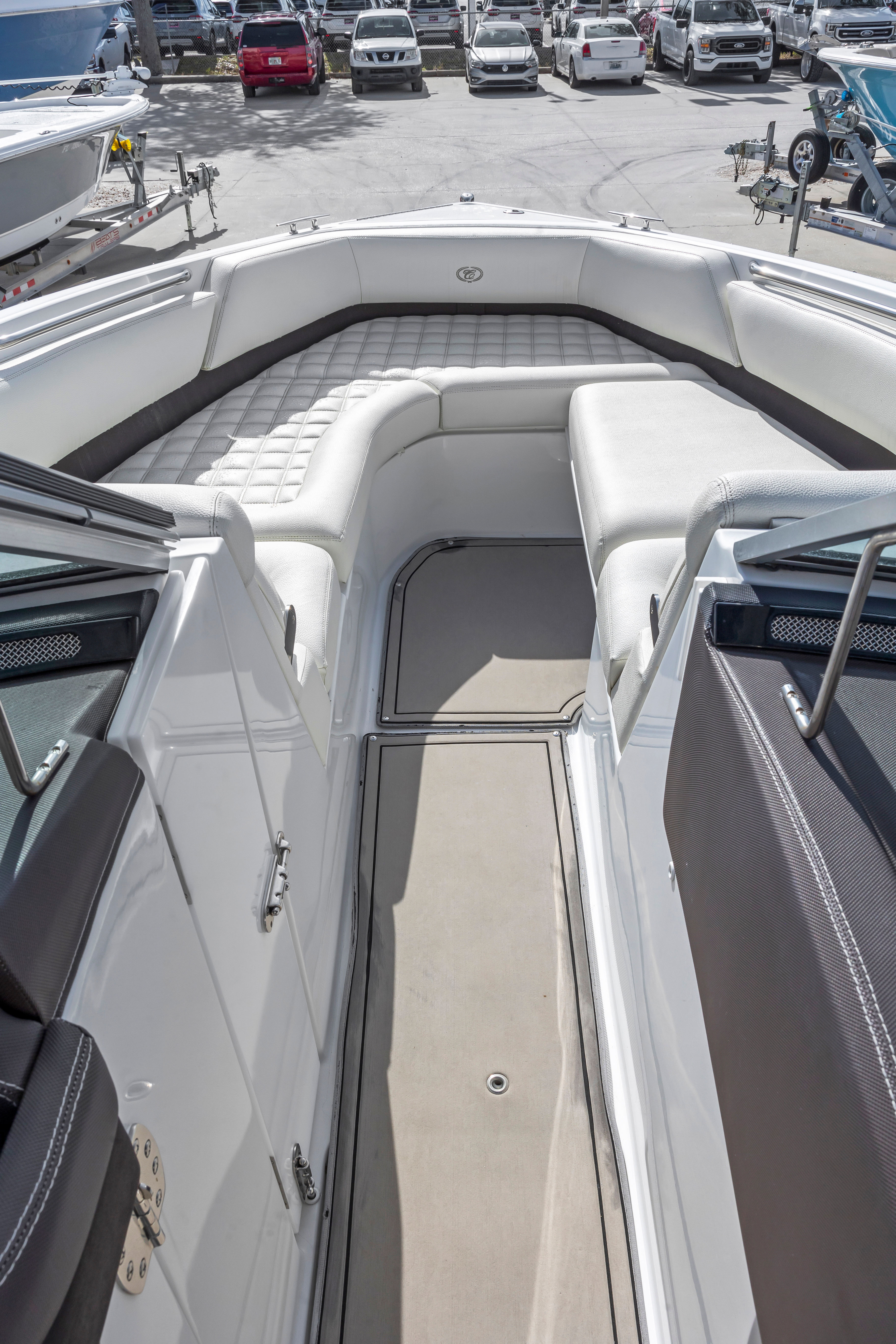 The Cobalt R7 is renowned for its thoughtful features and high-quality craftsmanship. Its spacious 25.75-foot layout provides plenty of room for guests to stretch out and enjoy the ride. The open Bowrider design allows for easy movement throughout the boat, while the plush seating ensures everyone travels in comfort. The R7’s ergonomic helm station puts all controls within easy reach, enhancing the driving experience and making navigation a breeze. With its stylish exterior and refined interior, this Cobalt boat for sale offers a premium boating experience that is hard to match.