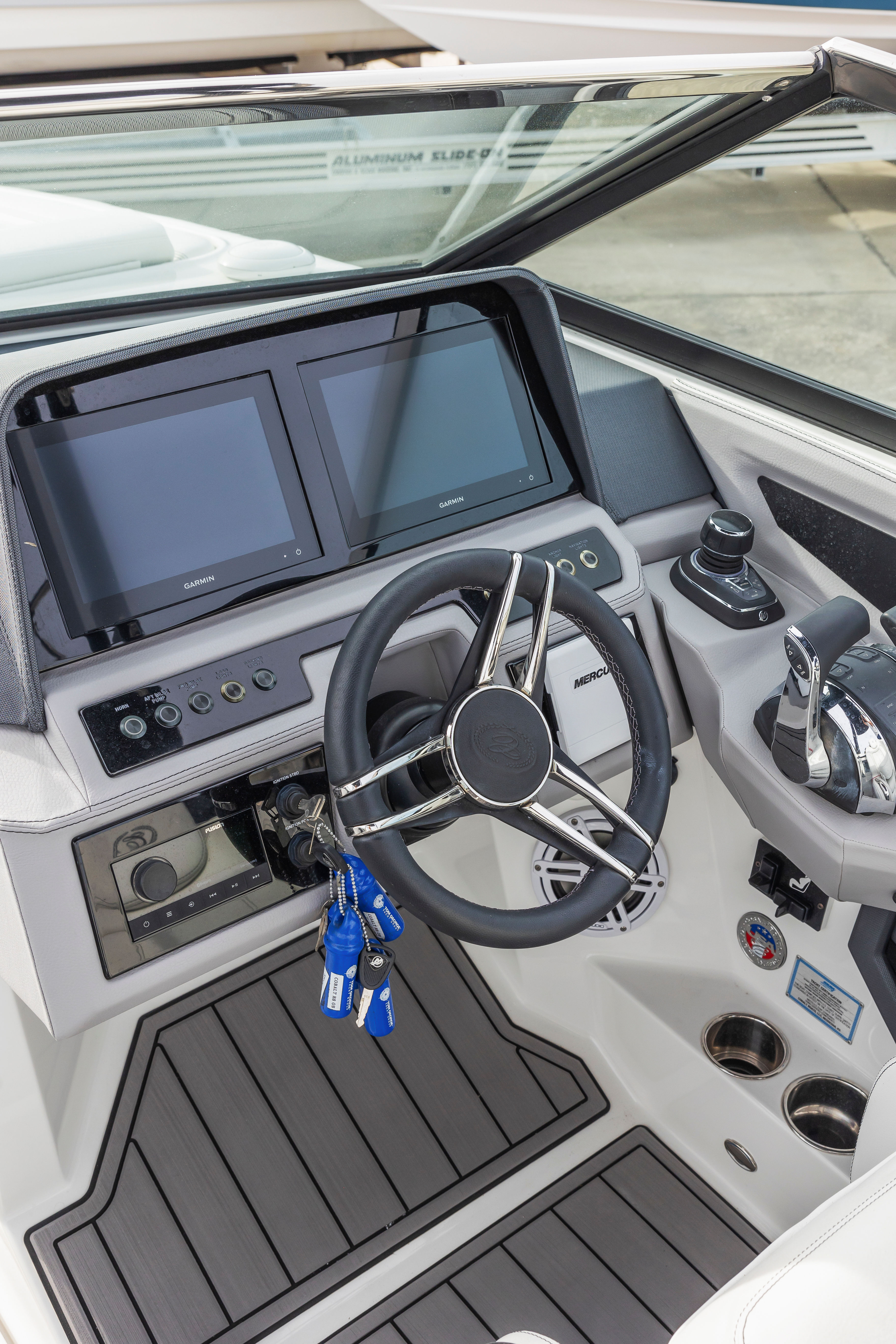 Beyond its recreational appeal, the Cobalt R8 OB offers practical benefits that make ownership easy and enjoyable. The boat’s generous length provides ample storage for gear, water toys, and personal items, keeping the deck clutter-free and organized. Its twin-engine configuration enhances maneuverability, making docking and handling in tight spaces straightforward and stress-free. The efficient engines help maximize fuel economy, allowing you to spend more time on the water and less time refueling. Whether you’re planning a day trip or a weekend getaway, this Bowrider is equipped to handle all your boating needs with ease.