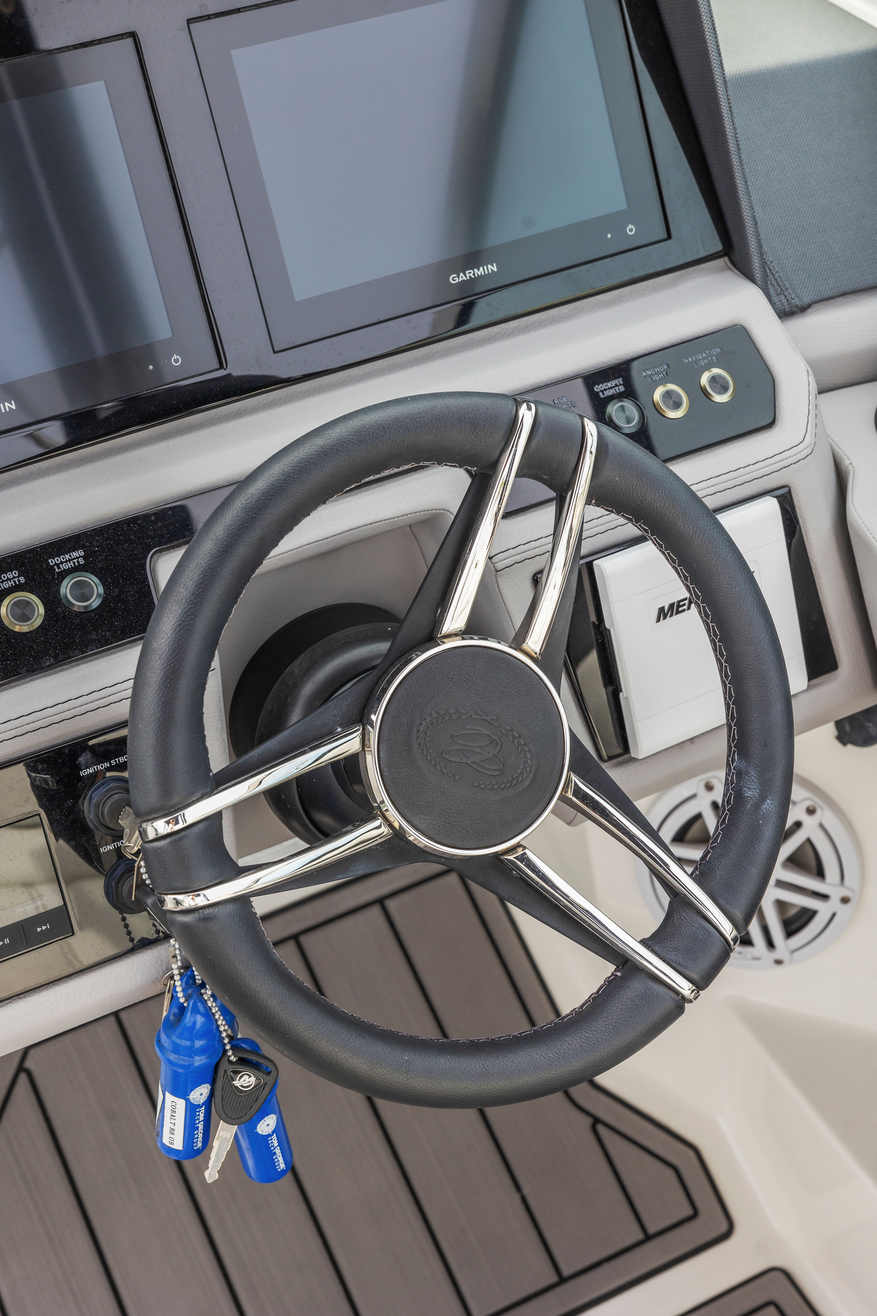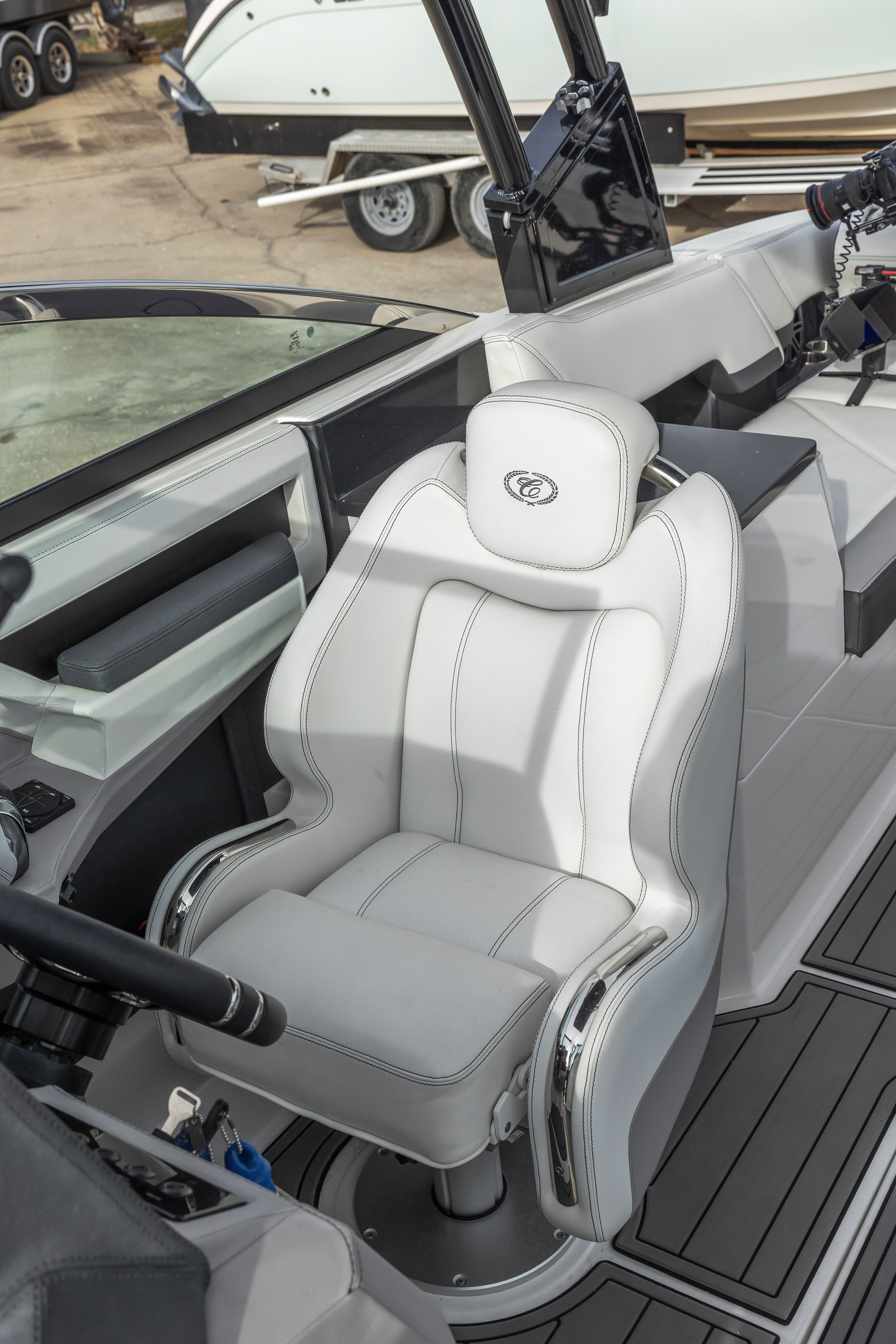 Power and precision are at the heart of the Cobalt R8 OB. Equipped with two robust engines delivering a combined 500 horsepower, this Bowrider boat for sale offers exhilarating acceleration and smooth handling. The twin-engine setup ensures optimal balance and control, making it easy to navigate tight turns or cruise effortlessly at higher speeds. With only 150 engine hours, these engines promise reliability and longevity for years to come. Whether you’re towing water toys, racing across open water, or enjoying a leisurely cruise, the R8 OB’s performance capabilities are sure to satisfy even the most discerning boater.