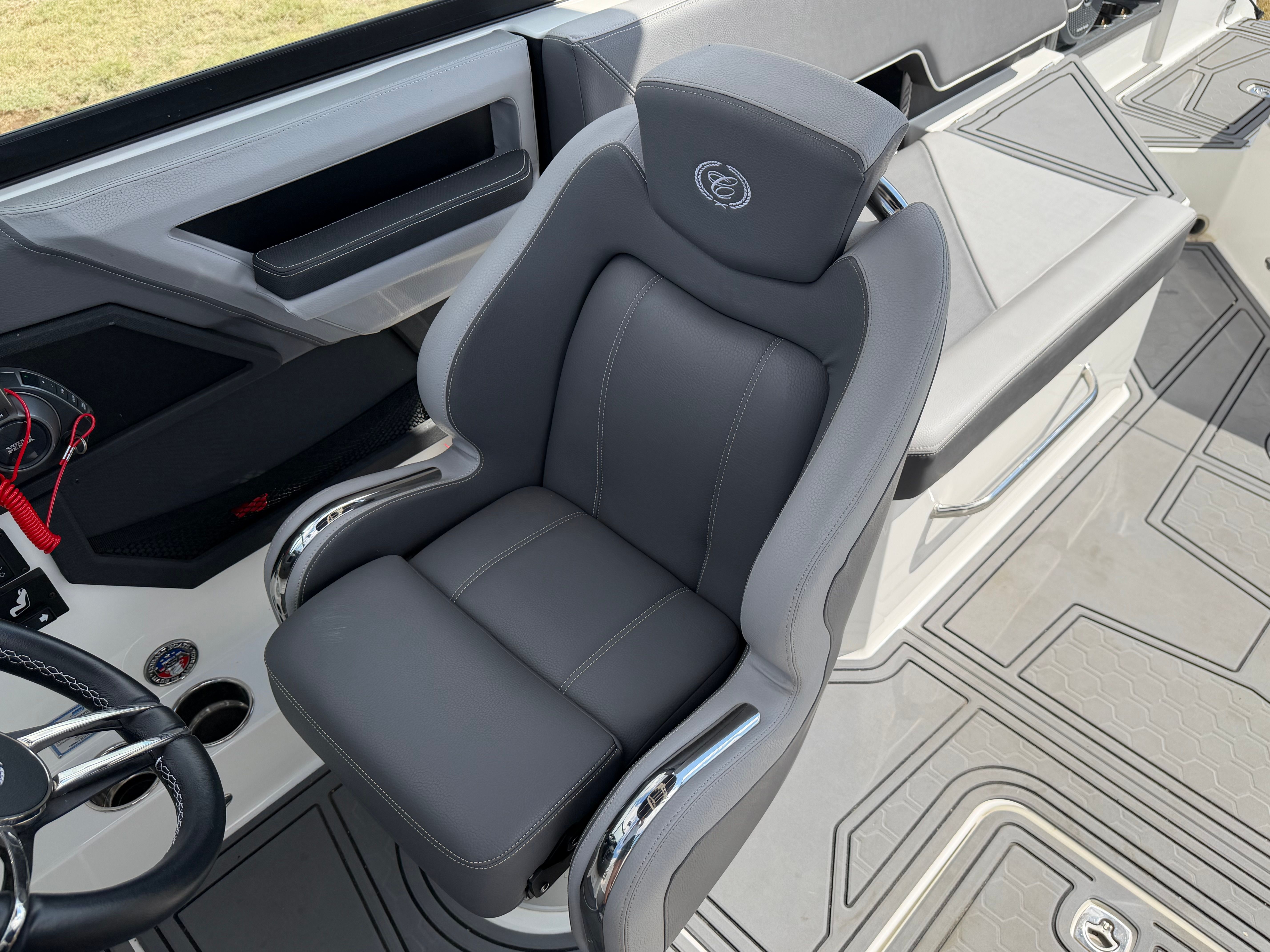 The Cobalt R8 Surf is packed with features that enhance both its functionality and enjoyment. As a bowrider, it offers an open and inviting layout, perfect for socializing and soaking up the sun. The spacious bow seating area provides a comfortable spot for passengers to relax, while the cockpit is designed for both convenience and luxury. High-quality materials and attention to detail are evident throughout, reflecting Cobalt’s commitment to craftsmanship and durability.This model’s surf capabilities set it apart from other bowriders. The R8 Surf is engineered for water sports enthusiasts, offering a smooth and customizable wake for surfing, wakeboarding, and more. The intuitive controls make it easy to adjust the wake to suit different skill levels, ensuring everyone can have a great time on the water. The boat’s length of just over 27 feet provides ample space for gear, coolers, and all the essentials needed for a day of fun.
