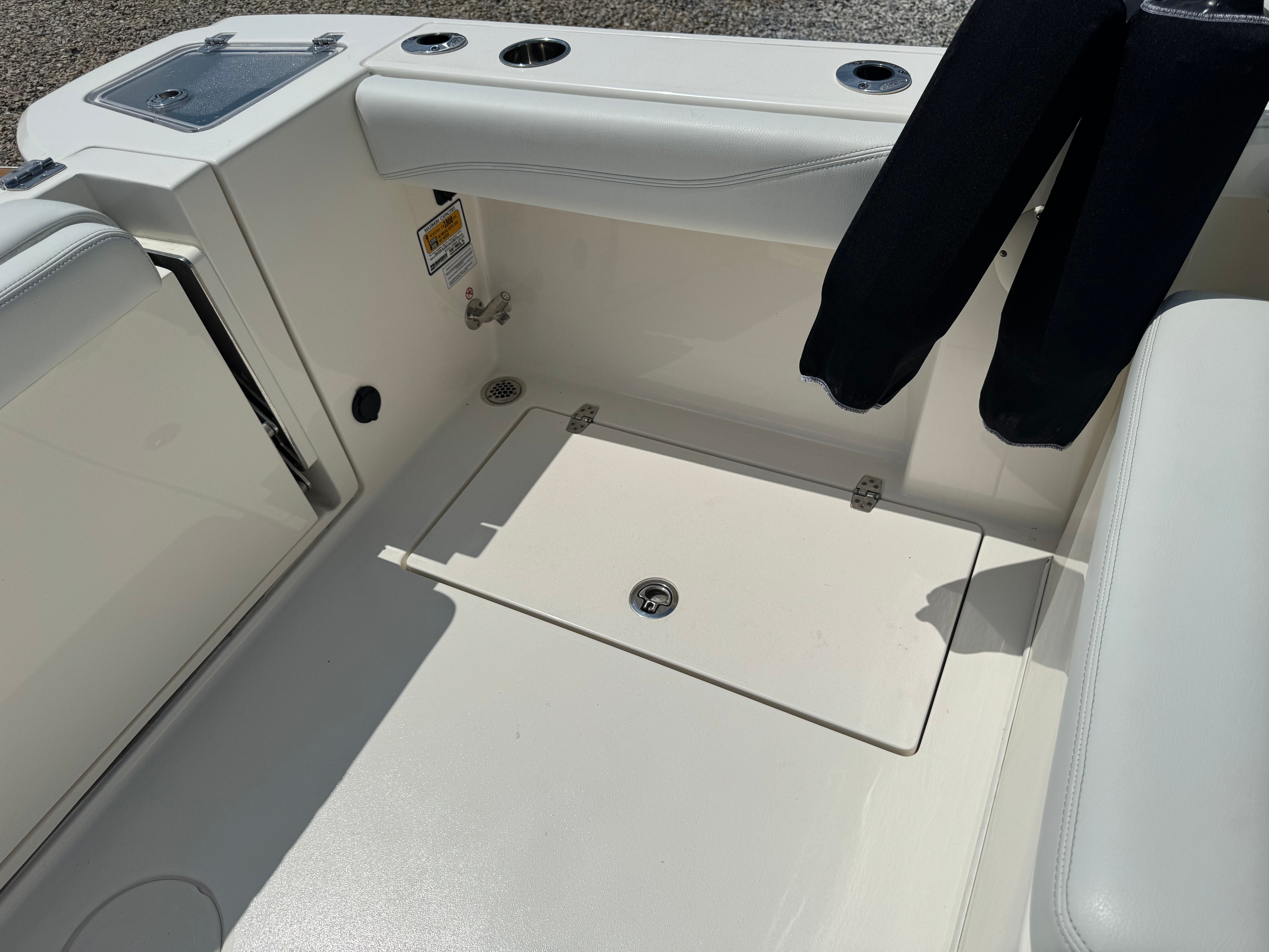Powering the Cobia 240 DC is a single, robust 300-horsepower engine, delivering impressive acceleration and smooth handling. With only 29 engine hours, this motor is barely broken in, promising years of reliable performance ahead. The combination of power and efficiency ensures you can reach your favorite destinations quickly, while maintaining excellent fuel economy. Whether you’re navigating coastal waters or exploring inland lakes, the Cobia 240 DC’s engine provides the confidence and capability you demand from a Dual Console boat.