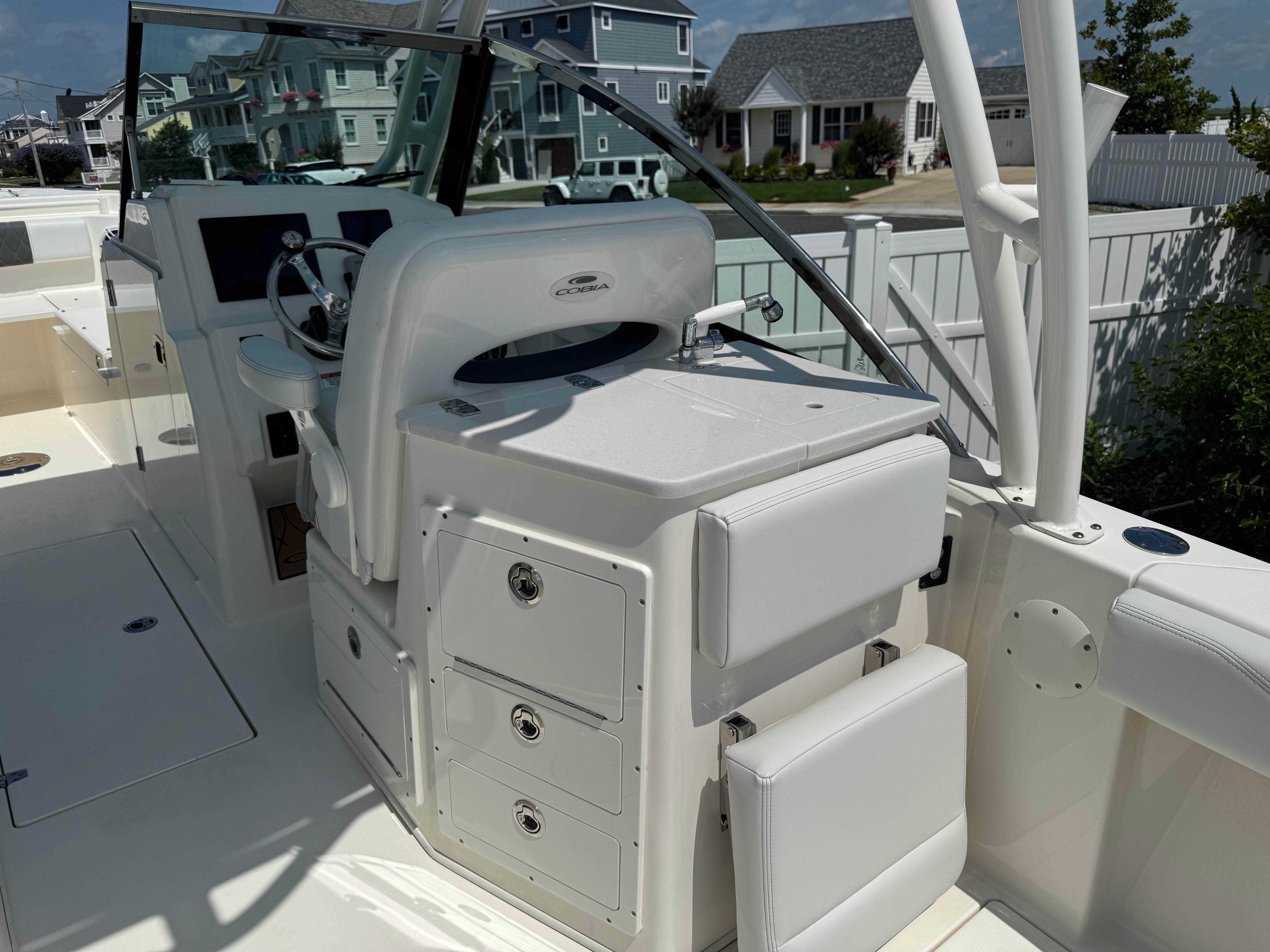 The Cobia 240 DC is designed with practicality in mind, making ownership both easy and enjoyable. The efficient 300-horsepower engine provides excellent fuel economy, allowing you to spend more time on the water and less time at the pump. The boat’s manageable 24-foot length makes docking and maneuvering a breeze, even for those new to boating. Ample storage compartments keep your gear organized and accessible, while the sturdy construction ensures long-lasting durability.Whether you’re heading out for a quick afternoon cruise or planning an extended adventure, the Cobia 240 DC adapts to your needs. Its versatile design accommodates a wide range of activities, from fishing and watersports to relaxing and entertaining. The boat’s user-friendly features and reliable performance make it a smart choice for both experienced boaters and newcomers alike.