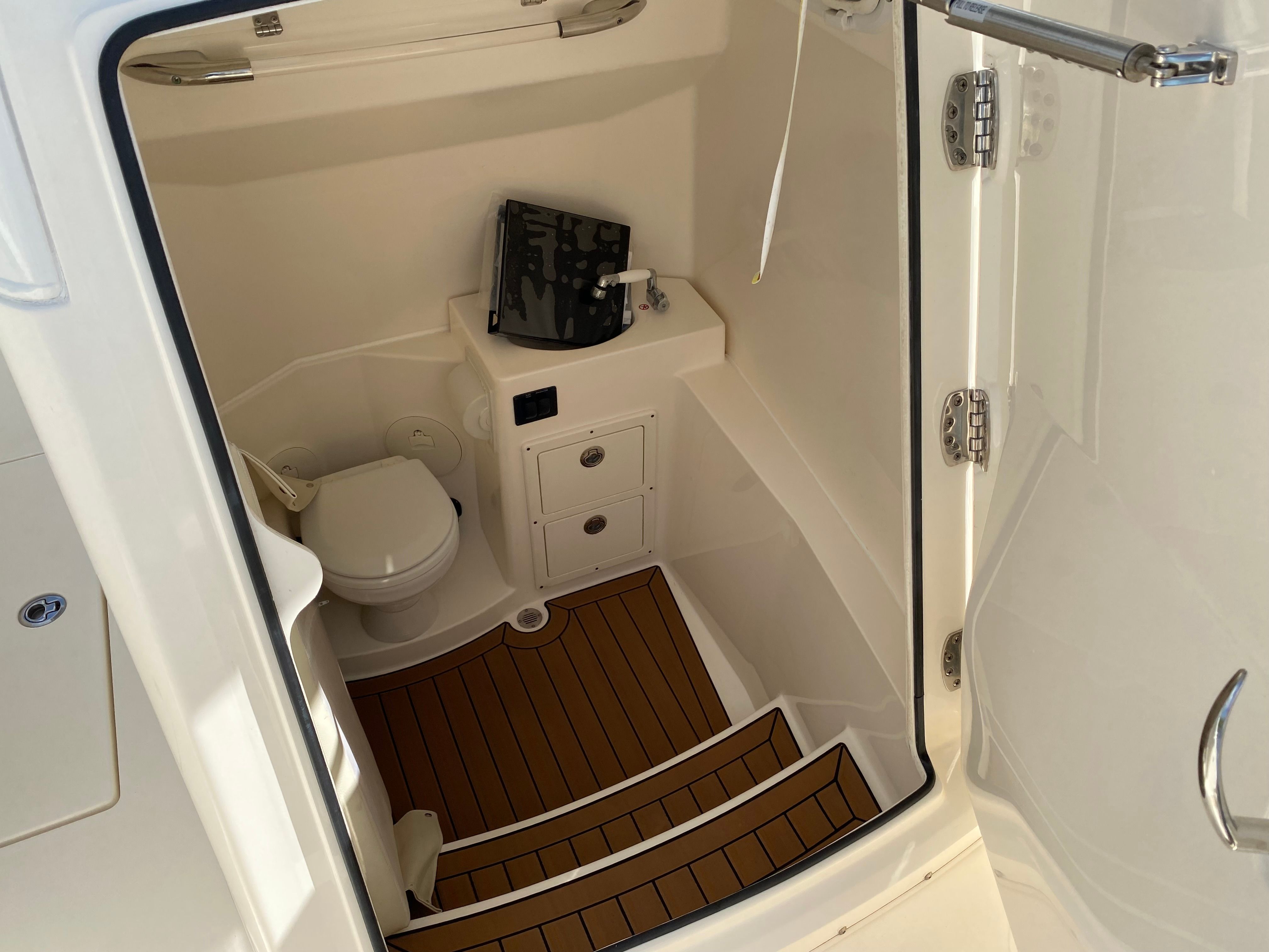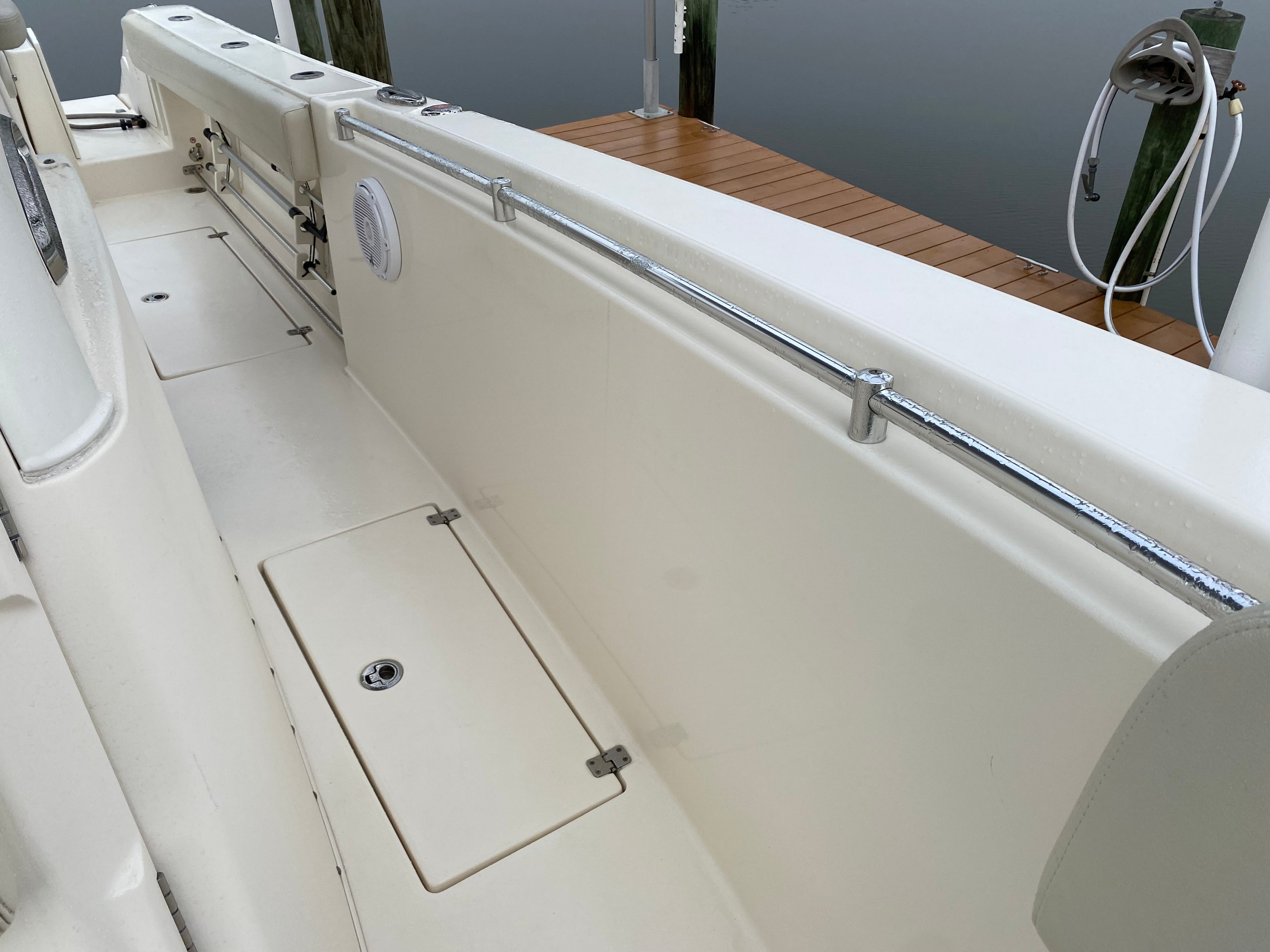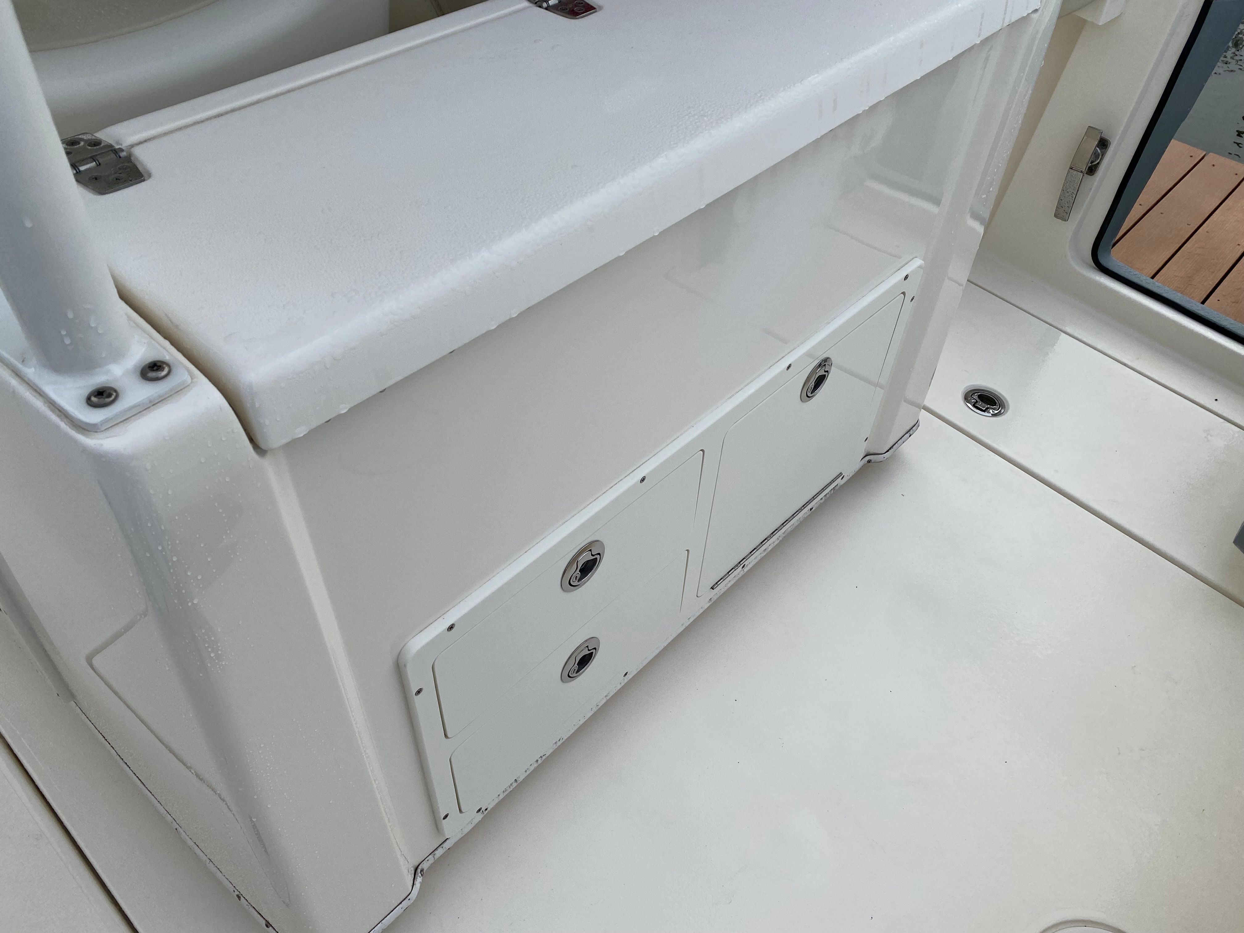 This Cobia boat for sale is as practical as it is exciting. The Center Console configuration allows for ample storage space for fishing gear, water toys, and personal belongings, keeping the deck clutter-free and organized. The boat’s design makes docking and maneuvering straightforward, even for those new to boating. The efficient twin-engine setup not only delivers impressive power but also offers the peace of mind that comes with redundancy and reliability. With only 150 engine hours, this used Cobia 301 CC is ready to provide years of dependable service. Whether you are planning a quick afternoon escape or a full day on the water, this boat’s thoughtful features make every trip easy and enjoyable.