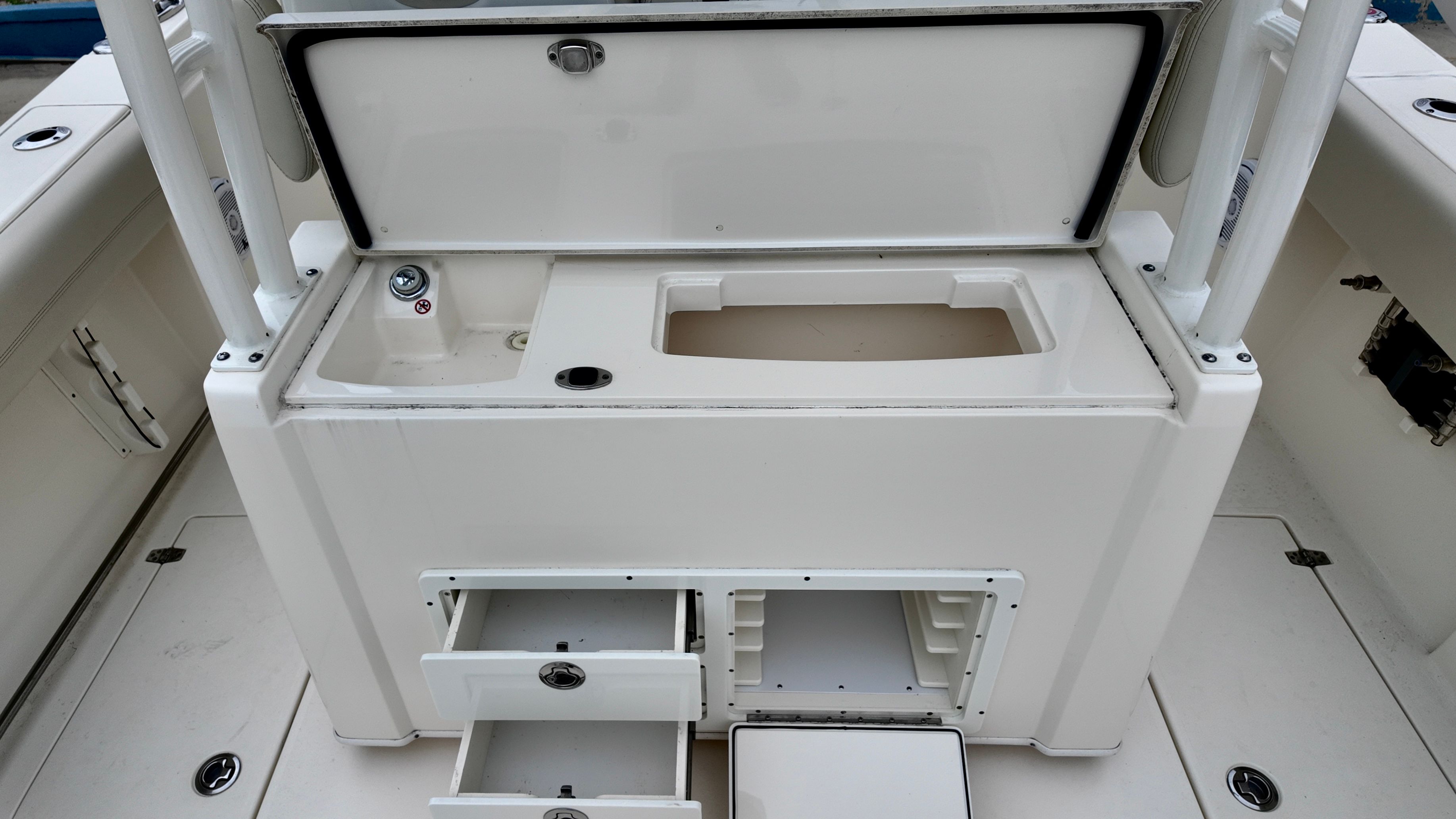 The 2019 Cobia 320 CC is as practical as it is fun. Its thoughtful design makes docking and maneuvering a breeze, even in tight marina spaces. The twin engines provide added confidence when navigating challenging conditions or making precise movements around docks and other boats. Storage is abundant, with cleverly designed compartments that keep your gear organized and easily accessible.Fuel efficiency is another practical advantage of this center console boat for sale. The modern engine technology helps you get the most out of every gallon, so you can spend more time on the water and less time at the fuel dock. Maintenance is straightforward, thanks to Cobia’s reputation for building boats that are as easy to care for as they are enjoyable to use.