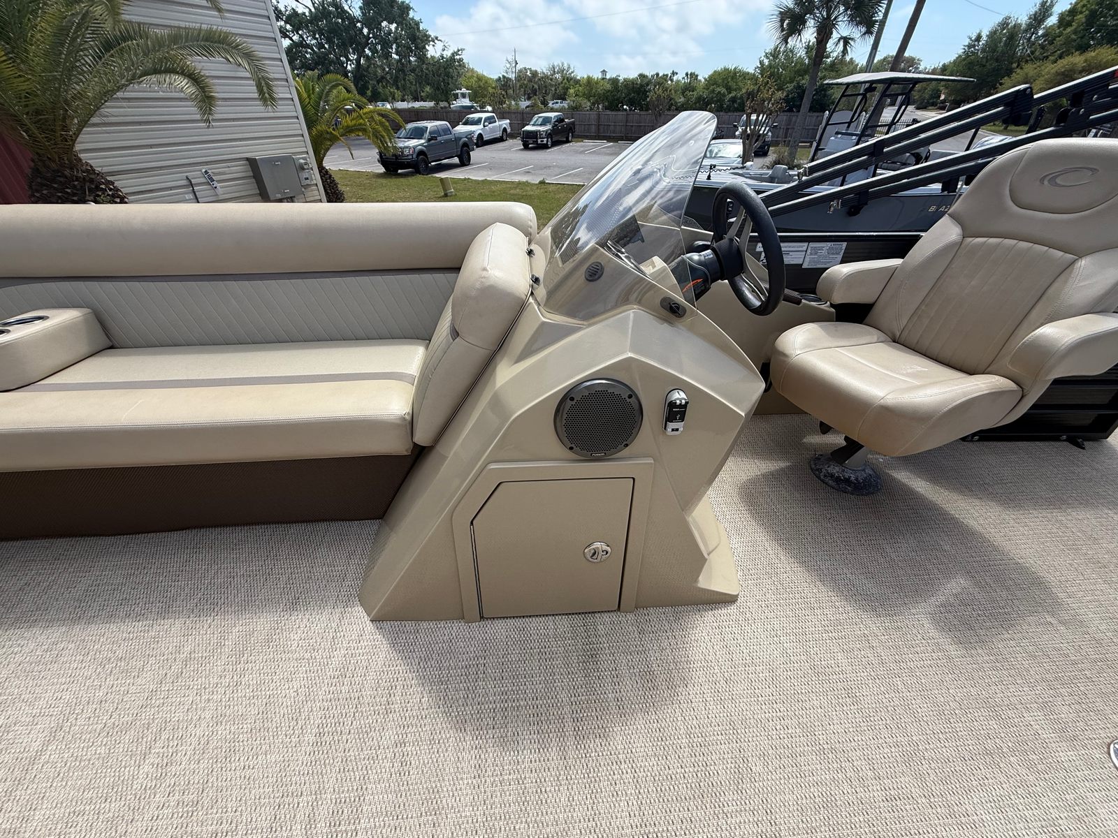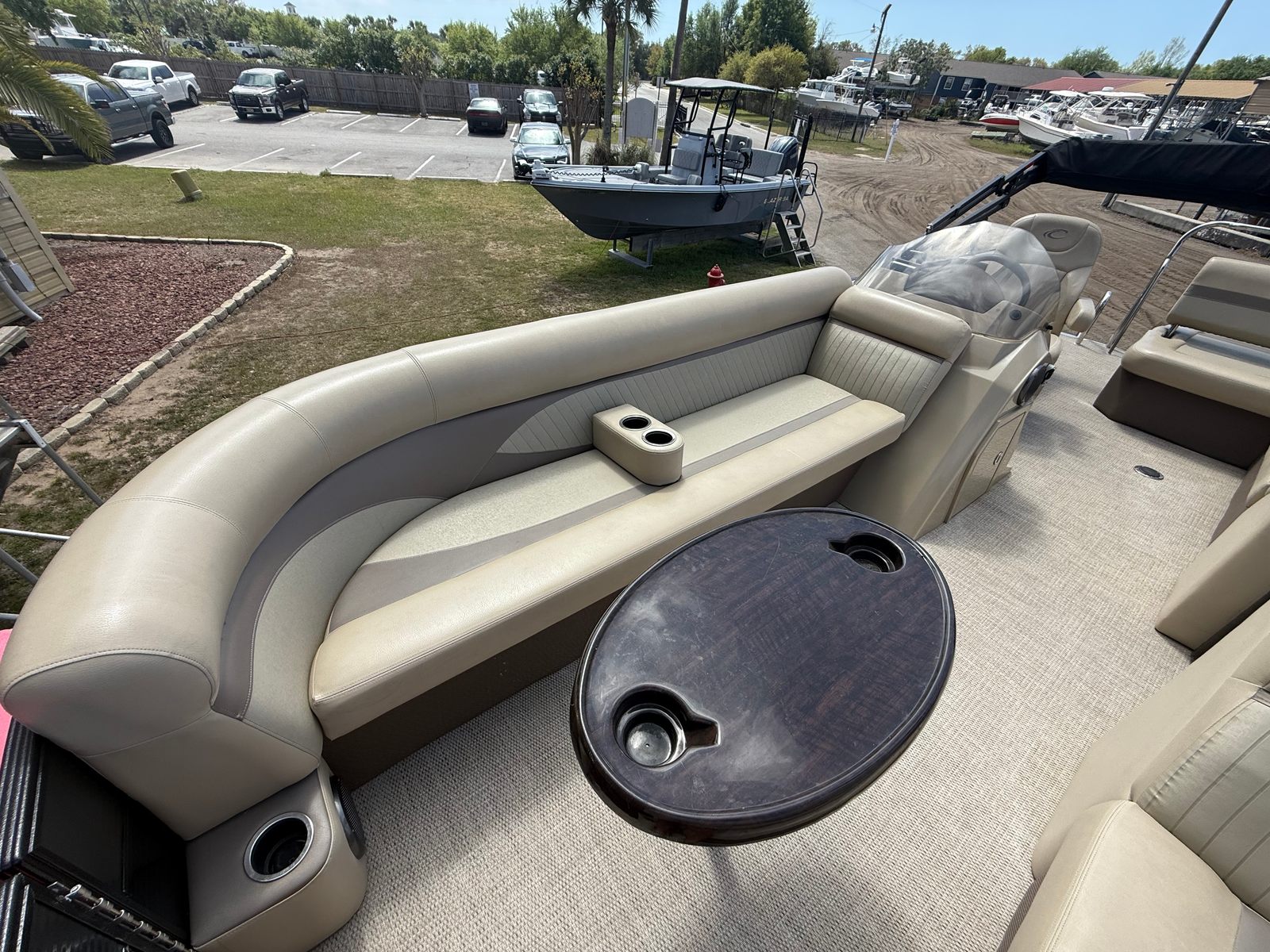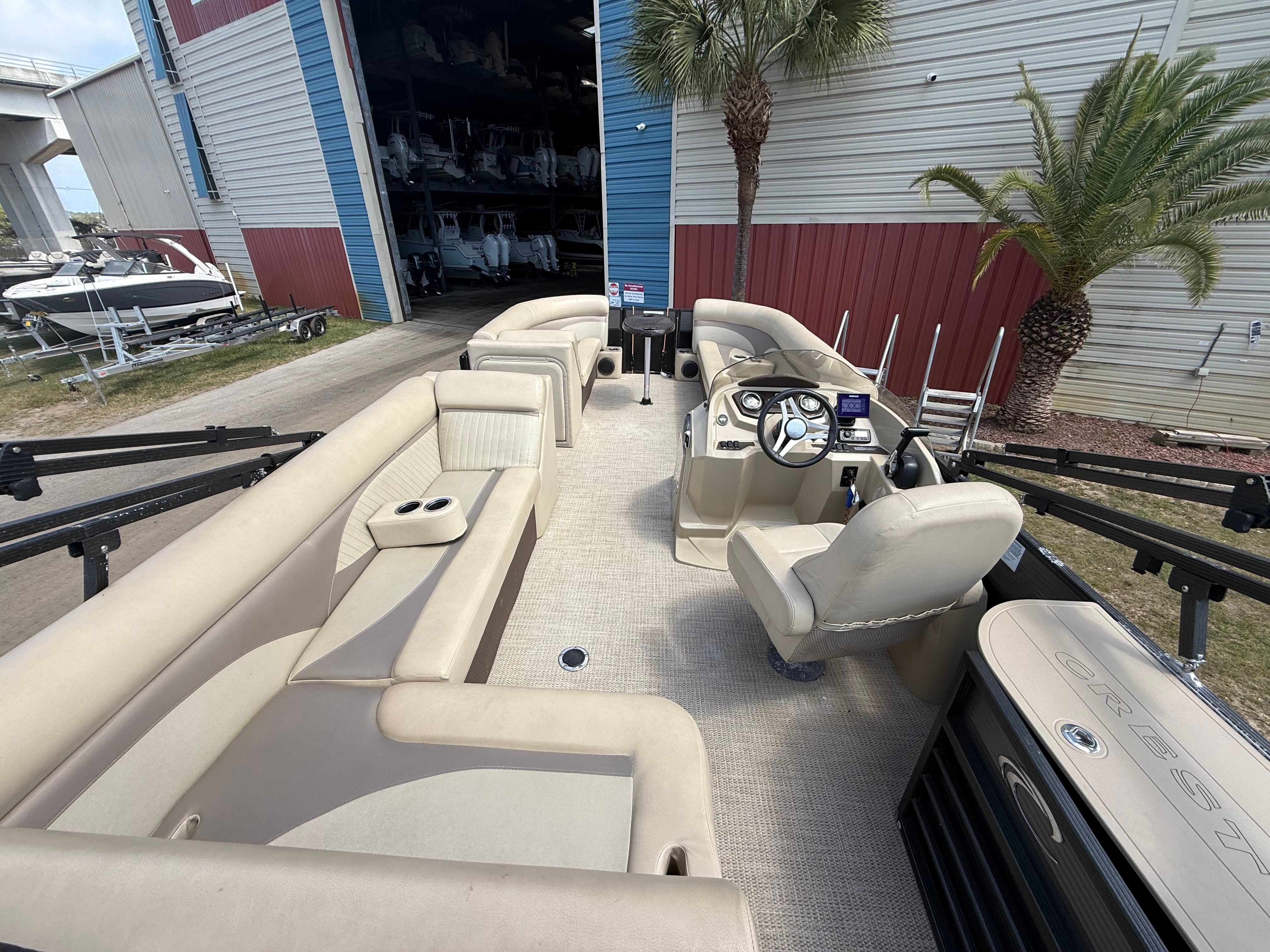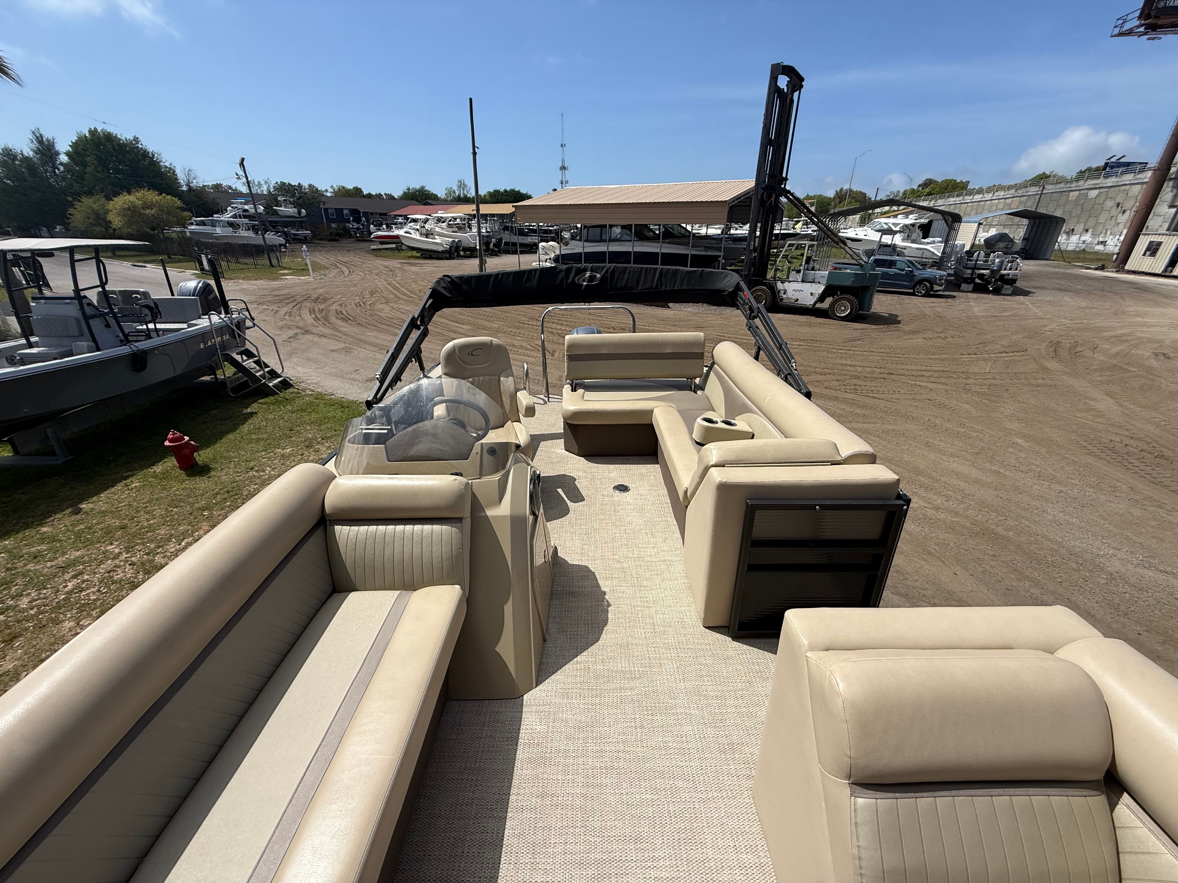 Powering the Crest 230 II is a single engine with an impressive 150 horsepower. This setup ensures that you have all the muscle you need for a variety of on-water activities, from leisurely cruises to thrilling rides across the lake. The 150 HP engine provides smooth acceleration, responsive handling, and reliable performance, making every outing enjoyable and stress-free. Whether you are towing a tube, heading to your favorite fishing spot, or simply exploring new waterways, the Crest 230 II delivers the power and dependability you expect from a top-tier pontoon boat for sale.