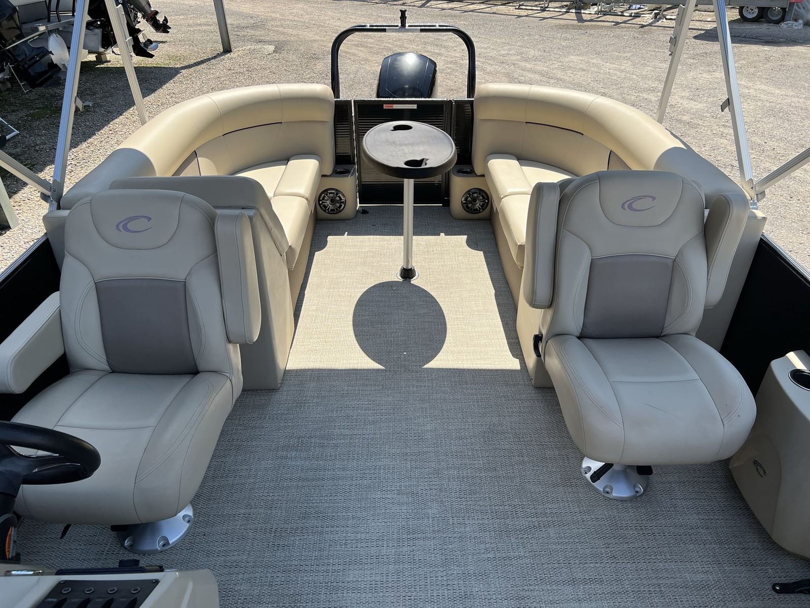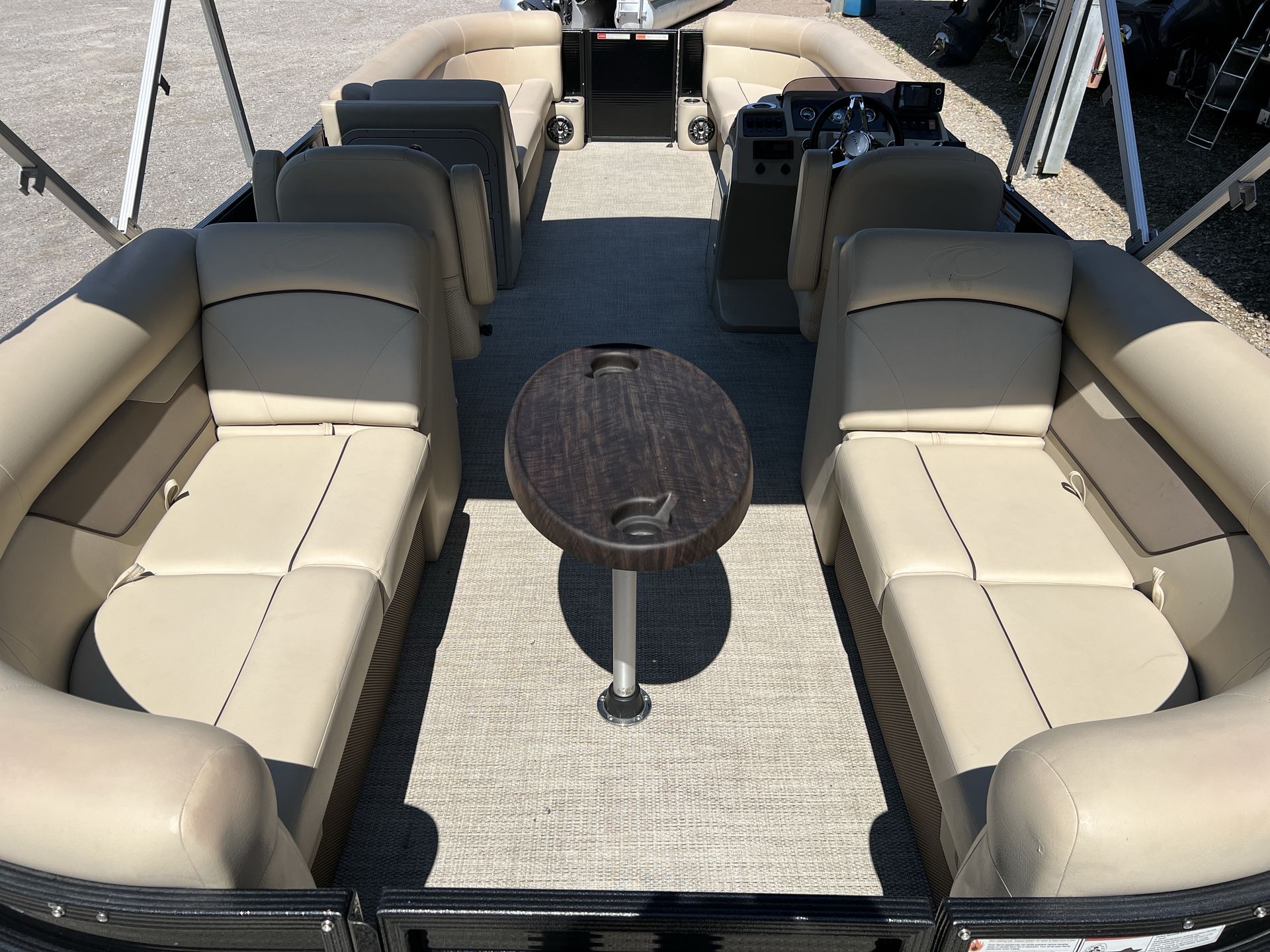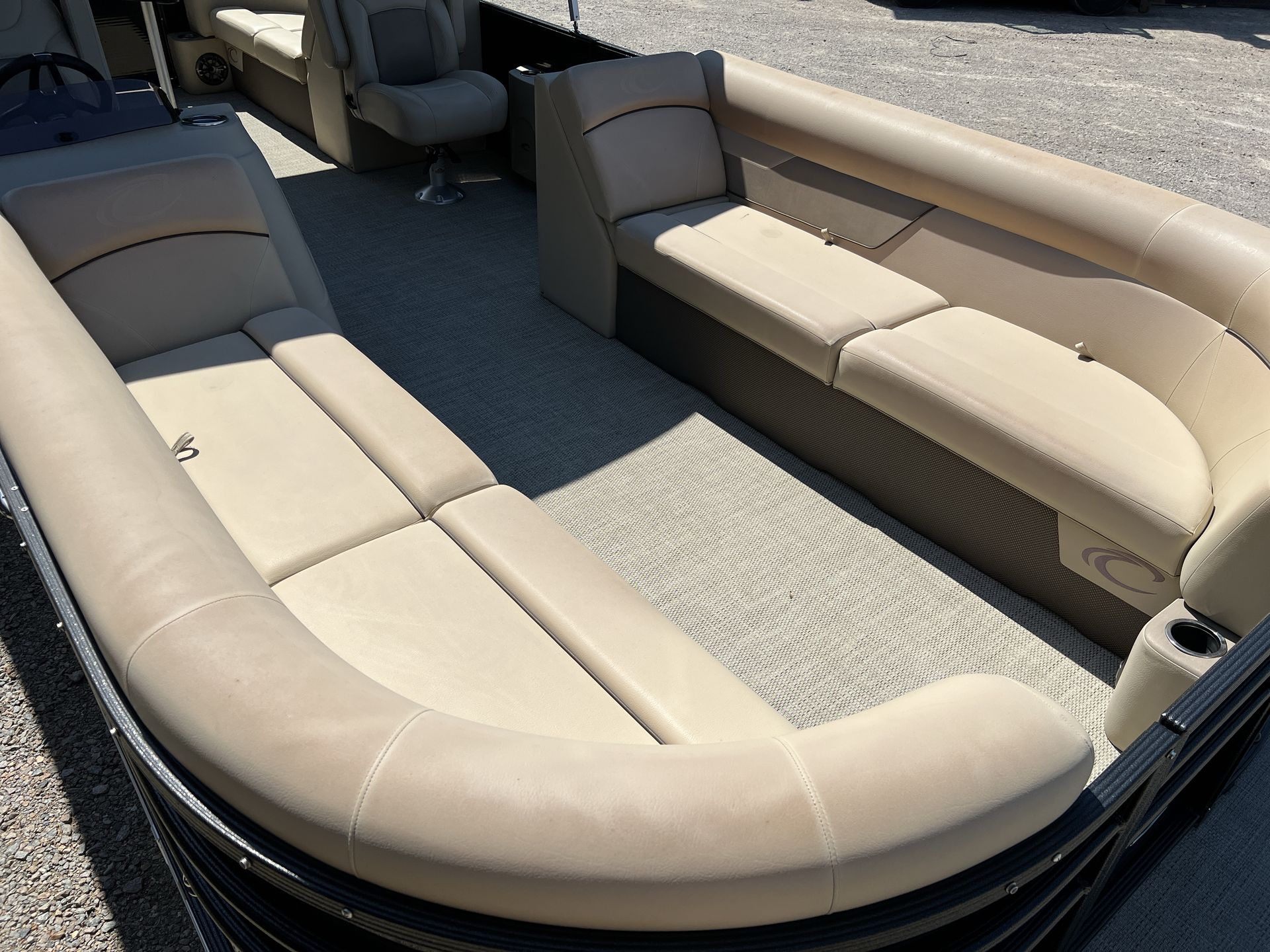 The Crest Classic 240 LX is packed with features designed to enhance your time on the water. Its spacious deck layout offers plenty of seating for family and friends, while the high-quality construction ensures durability and longevity. The pontoon’s design emphasizes comfort, with plush seating and ample legroom throughout. The 24-foot length allows for a generous amount of space, making it easy to move around and enjoy every moment on board.As a used pontoon boat for sale, this Crest model has been crafted to deliver a premium boating experience. The sturdy pontoons provide stability and a smooth ride, even in choppier conditions. The helm is thoughtfully arranged for easy navigation and control, while the open deck plan encourages socializing and relaxation. With its sleek lines and modern aesthetic, the Classic 240 LX is sure to turn heads wherever you go.