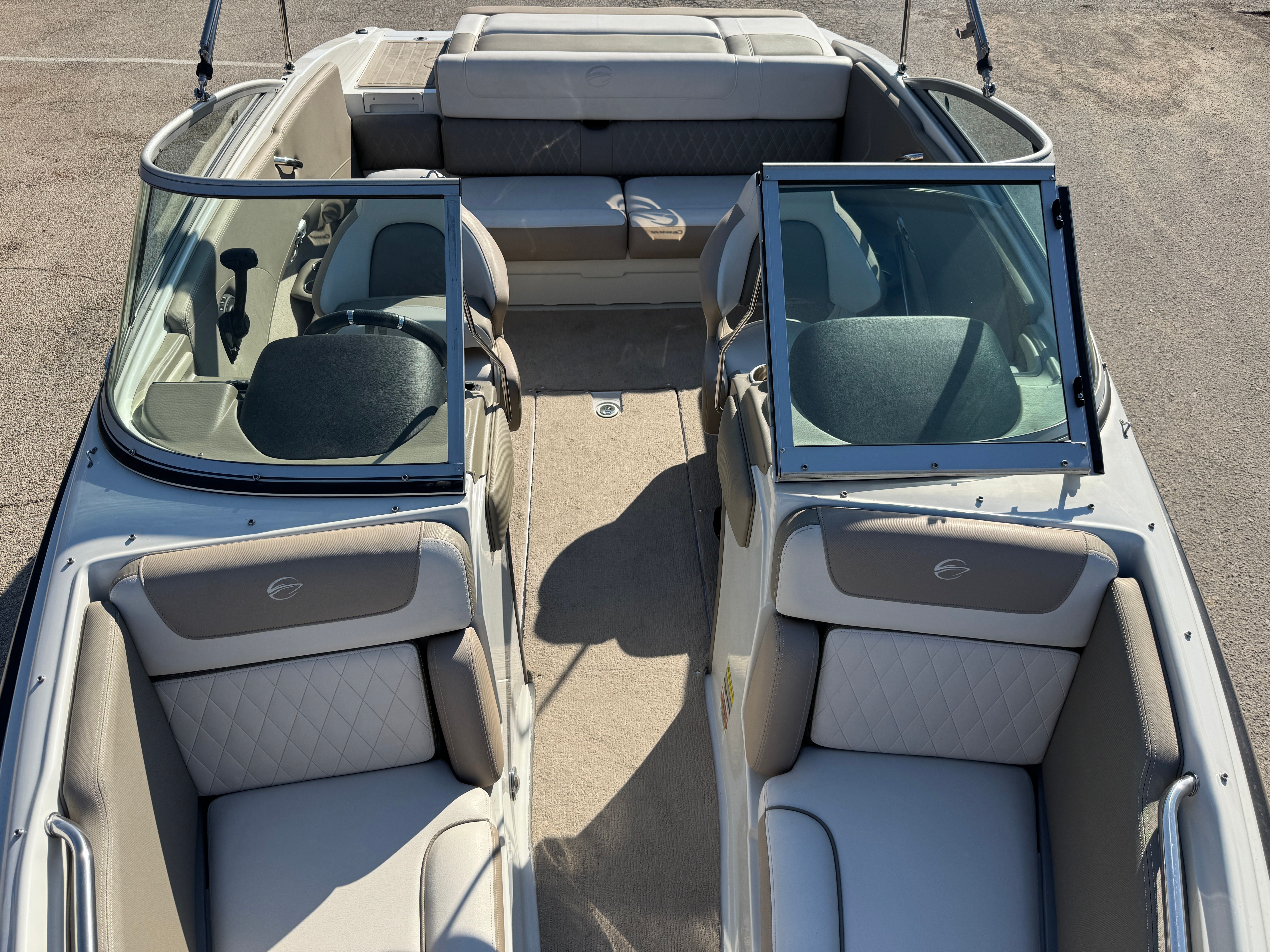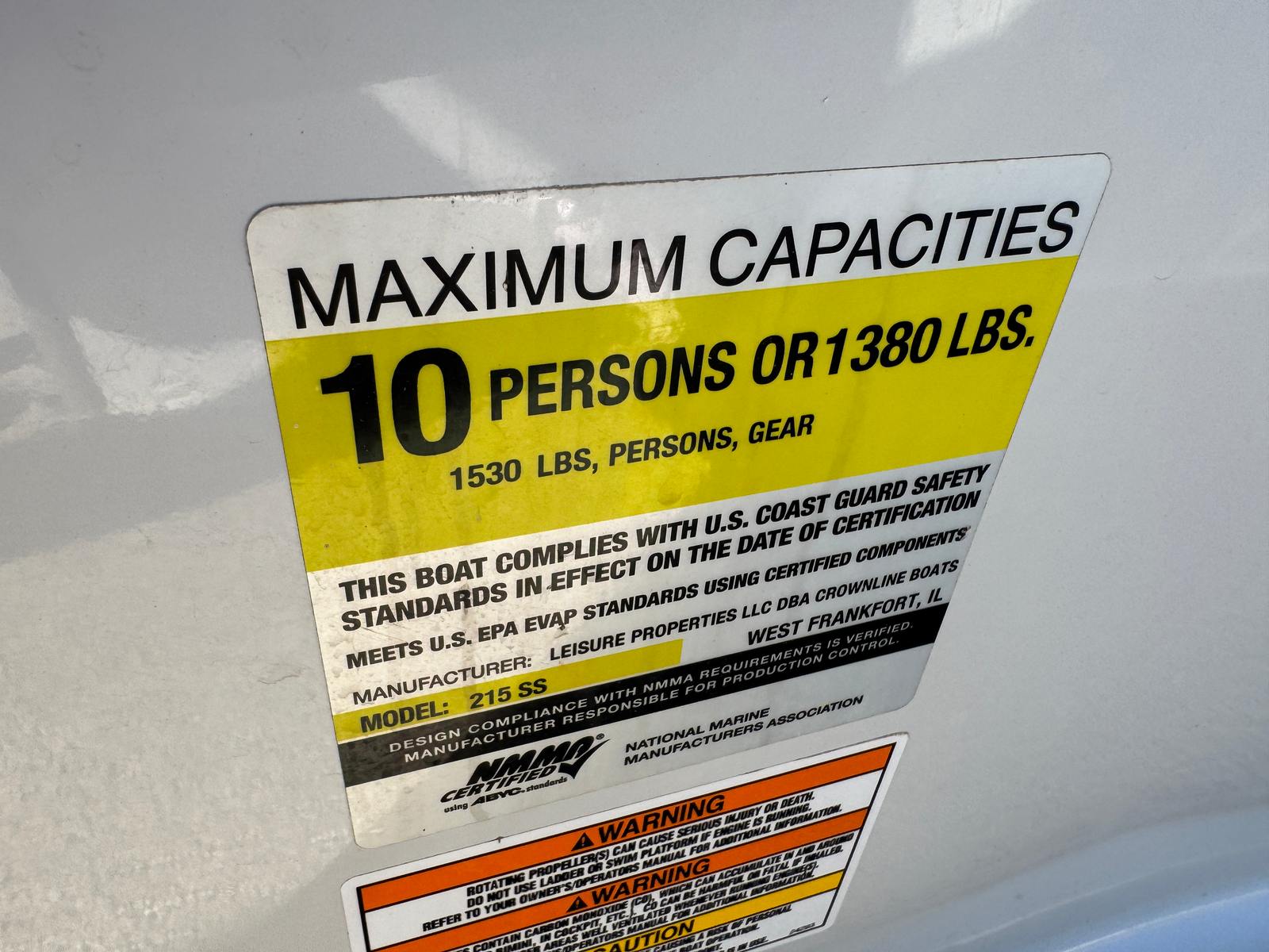 Practicality is at the core of the Crownline 215 SS design. Its manageable 21-foot length makes docking and storage a breeze, whether you are keeping the boat at a marina or trailering it to different locations. The efficient engine ensures you can enjoy long days on the water without worrying about excessive fuel consumption. The spacious layout provides plenty of room for gear, coolers, and water toys, making it easy to prepare for any adventure.The boat’s user-friendly features make it accessible for boaters of all experience levels. The intuitive controls and responsive handling inspire confidence, while the comfortable seating and open layout ensure everyone on board has a great time. Whether you are planning a day of fishing, water skiing, or simply cruising with friends, the Crownline 215 SS adapts to your needs with ease.