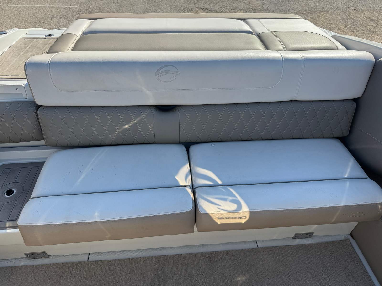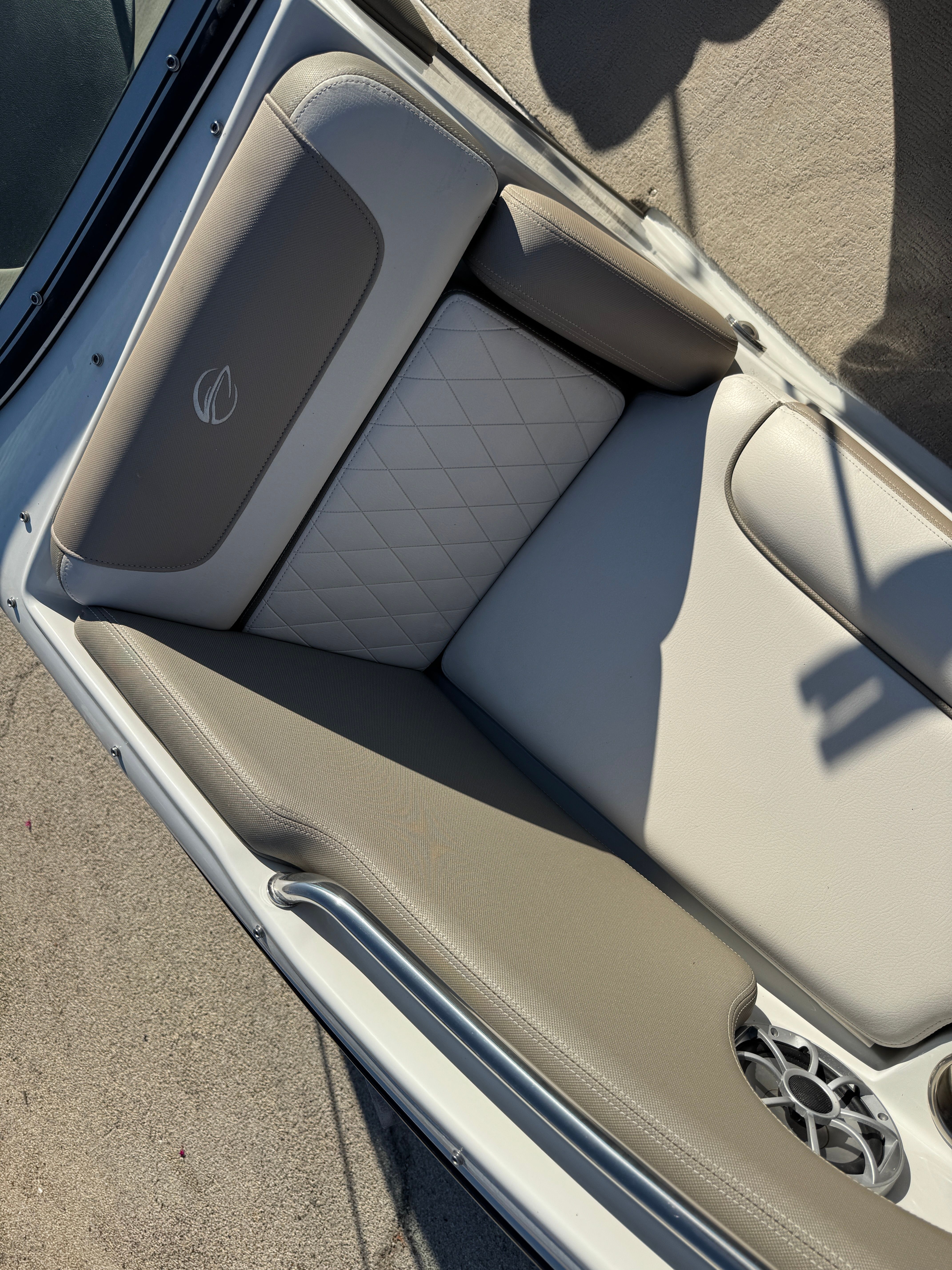 At the heart of this Crownline boat for sale is a powerful single engine delivering an impressive 250 horsepower. With only 50 engine hours, this used bowrider is ready to provide many more seasons of reliable performance. The robust engine ensures quick acceleration, smooth cruising, and the ability to tow water toys or skiers with ease. Whether you are gliding across calm waters or powering through choppy waves, the Crownline 215 SS offers a responsive and exhilarating ride. The efficient powertrain also contributes to better fuel economy, allowing you to spend more time enjoying the water and less time refueling.