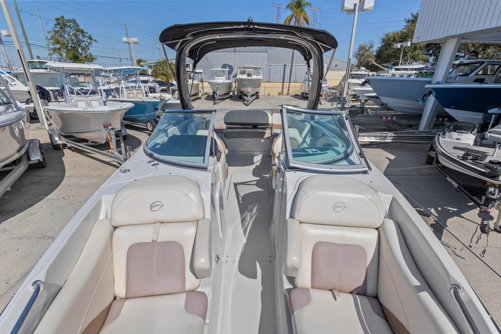 The Crownline 275 SS Bowrider is packed with features that enhance your time on the water. Its spacious bow seating invites guests to relax and soak up the sun, while the open cockpit layout encourages socializing and fun. The ergonomic helm station puts you in command, offering clear sightlines and intuitive controls for stress-free navigation. The boat’s generous length provides plenty of room for lounging, dining, or stretching out after a swim. Storage compartments are thoughtfully integrated throughout, keeping gear organized and out of the way. The single engine setup simplifies maintenance and maximizes fuel efficiency, making this bowrider boat for sale both practical and enjoyable.