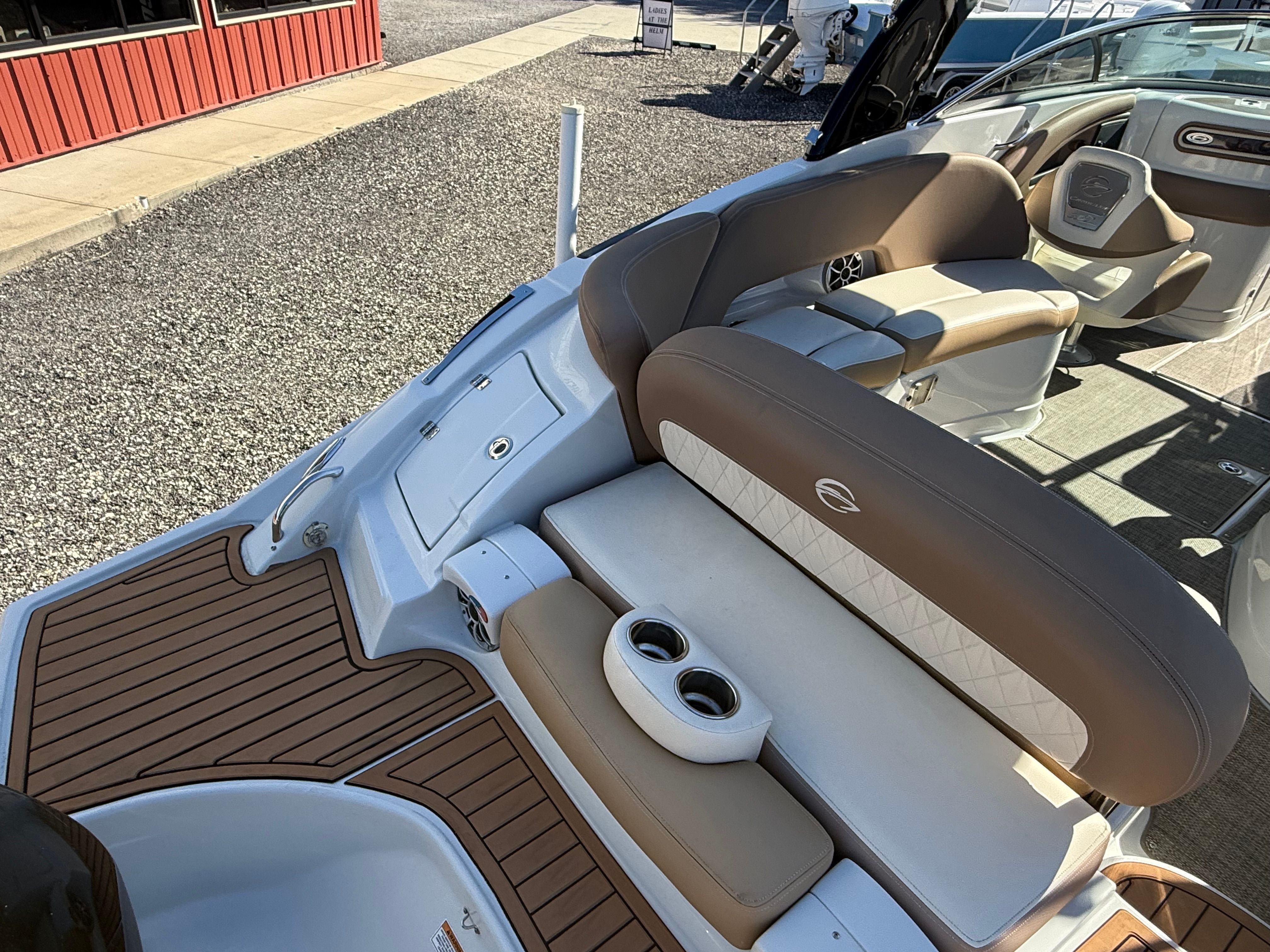In summary, the 2021 Crownline E275XS is a standout pontoon boat for sale that combines luxury, performance, and versatility in one impressive package. With its 27-foot length, powerful 350-horsepower engine, and low engine hours, this used Crownline boat for sale offers exceptional value and reliability. The spacious layout, high-quality construction, and thoughtful features make it an ideal choice for anyone looking to elevate their boating adventures. Whether you are seeking fun-filled days with family, exciting watersports, or relaxing cruises, the E275XS delivers on all fronts. Don’t miss the opportunity to own this remarkable pontoon boat—contact your local dealer today to learn more and schedule a viewing.