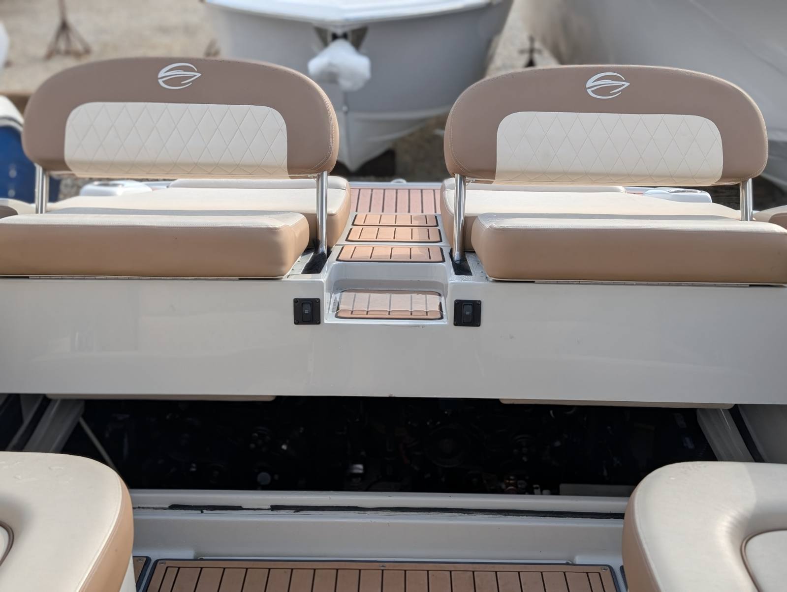Power and agility define the Crownline E30 XS. Equipped with twin engines delivering a combined 600 horsepower, this bowrider is engineered for exhilarating performance and smooth handling. Whether you are cruising across the lake, towing water toys, or exploring new coastlines, the E30 XS responds with impressive acceleration and stability. The dual-engine setup not only enhances speed but also provides added reliability and maneuverability, making docking and navigating tight spaces a breeze. For those seeking a bowrider boat for sale that delivers both excitement and confidence on the water, the Crownline E30 XS is a standout performer.
