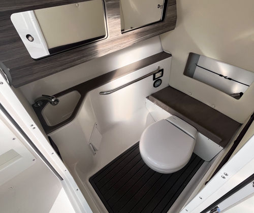 At the heart of the Edgewater 248 CX is a powerful single engine delivering an impressive 300 horsepower. This setup provides the perfect balance of speed, agility, and fuel efficiency, making it easy to reach your favorite destinations quickly and smoothly. The responsive handling and reliable performance of this Center Console boat make it a joy to operate, whether you are navigating tight marinas or cruising open waters. The 300-horsepower engine ensures that you have the power needed for towing water toys, getting to prime fishing spots, or simply enjoying a spirited ride across the waves.