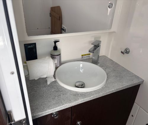 Hull side has been wrapped since new all White Gelcoat under wrap in perfect condition. This vessel is very well equipped some details are as follows. Video walk through is this vessel for sale.