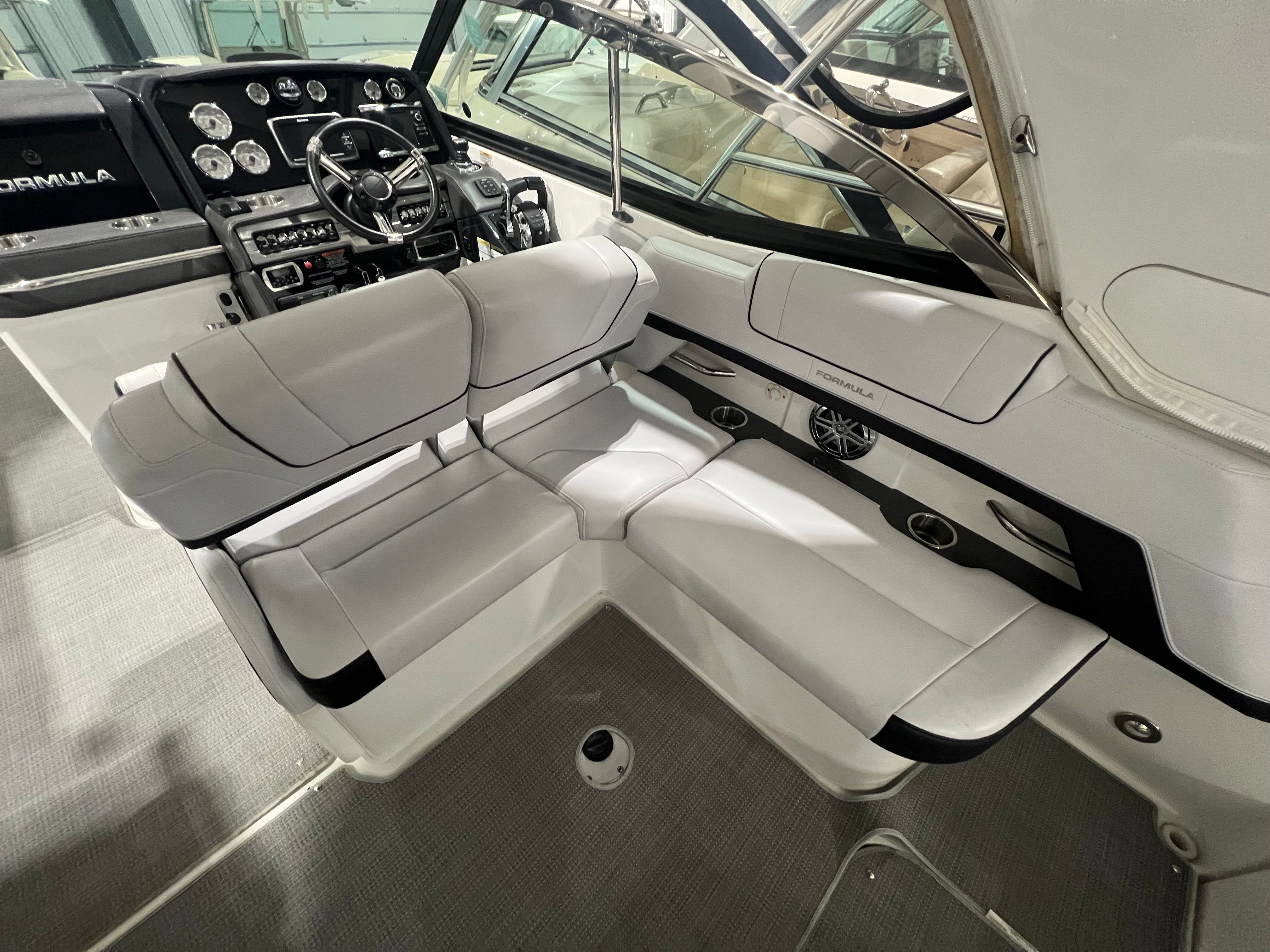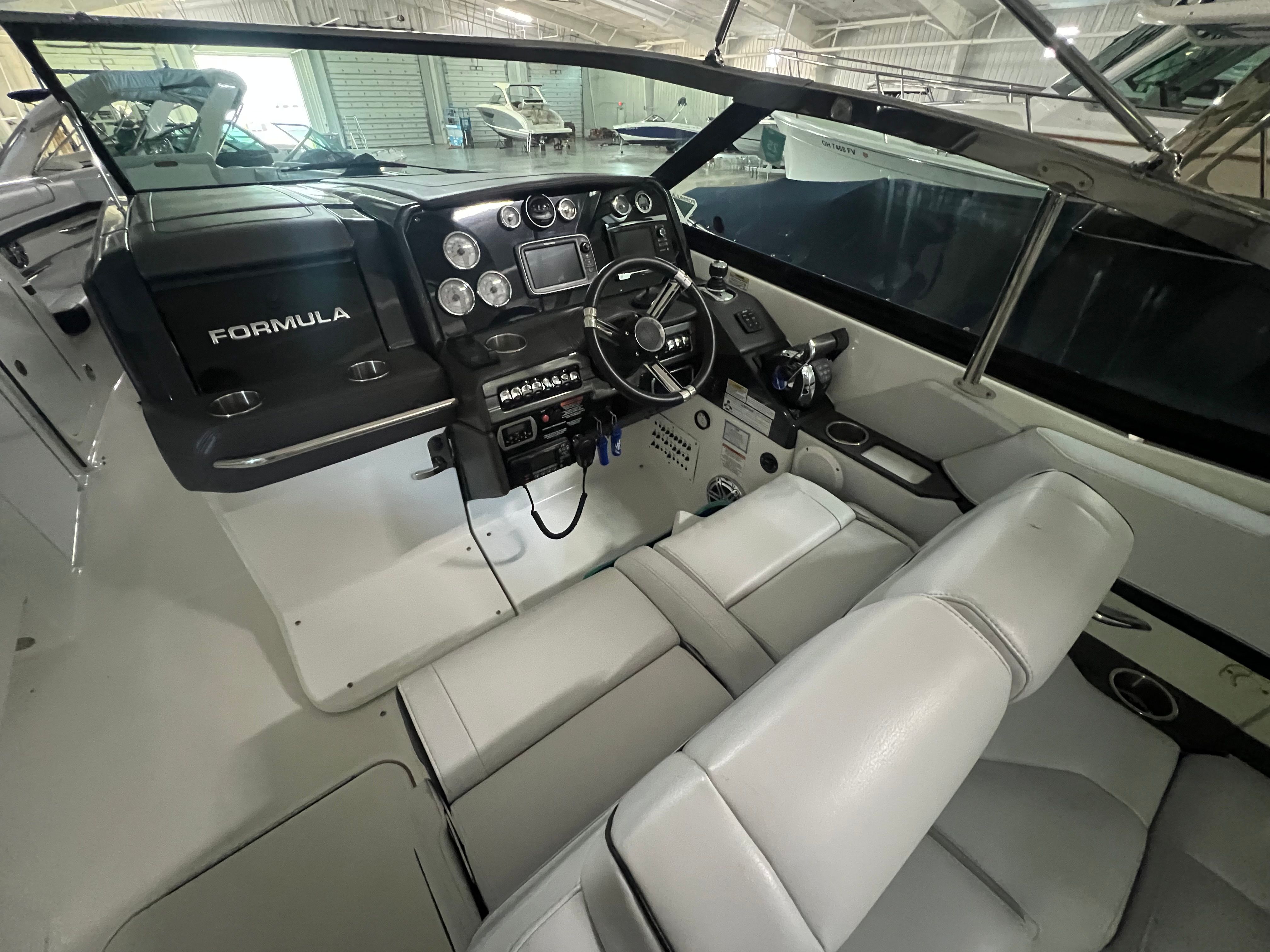 Powering the Formula 330 CBR are two robust engines, delivering a combined 760 horsepower. With 731 engine hours, these engines have proven their reliability and are ready to provide exhilarating performance for years to come. The twin-engine setup ensures smooth acceleration, responsive handling, and impressive speed, making this Formula boat for sale a true standout in its class. Whether you’re navigating open waters or docking at the marina, you’ll appreciate the confidence and control that comes with this powerful cruiser.