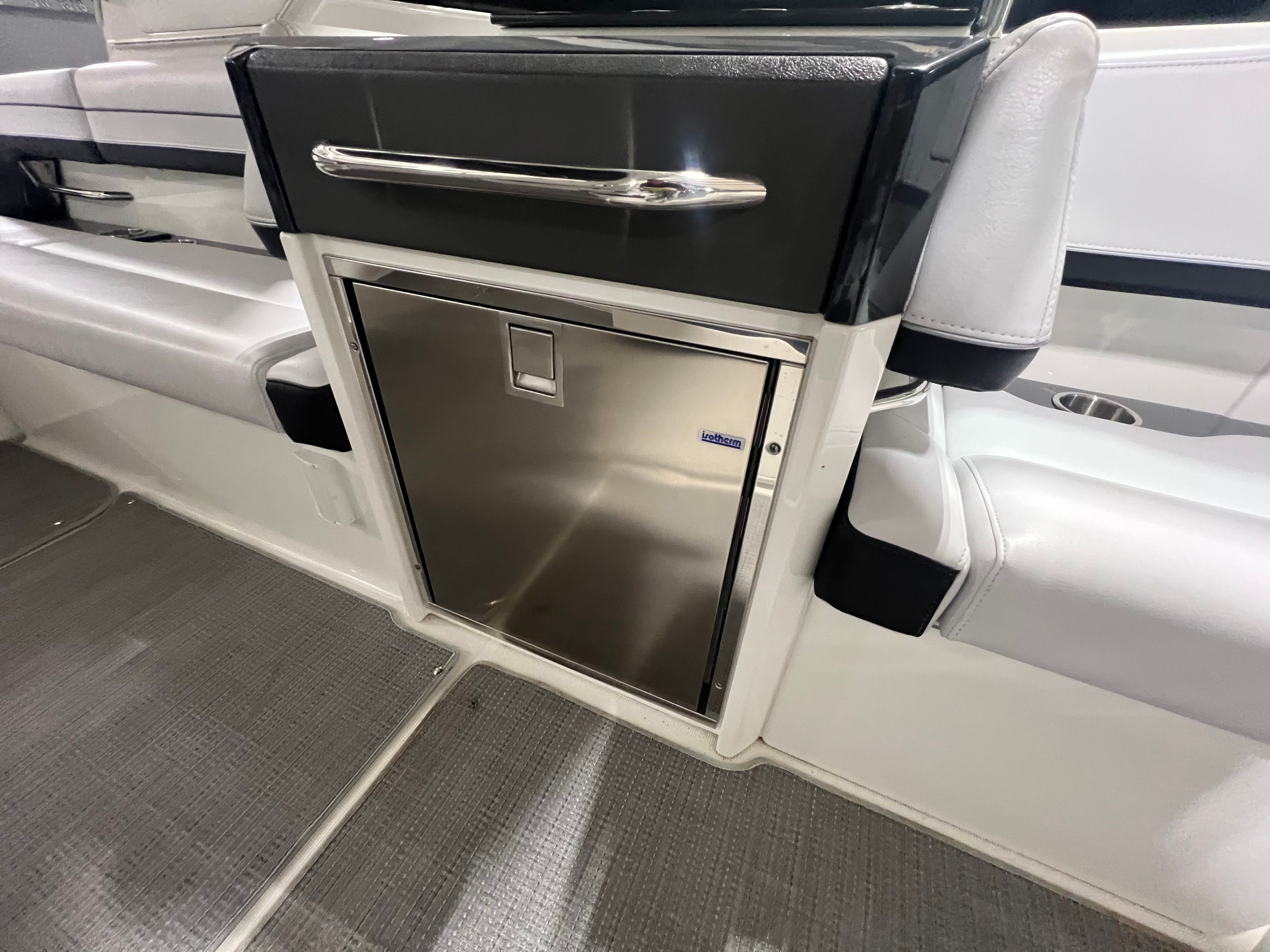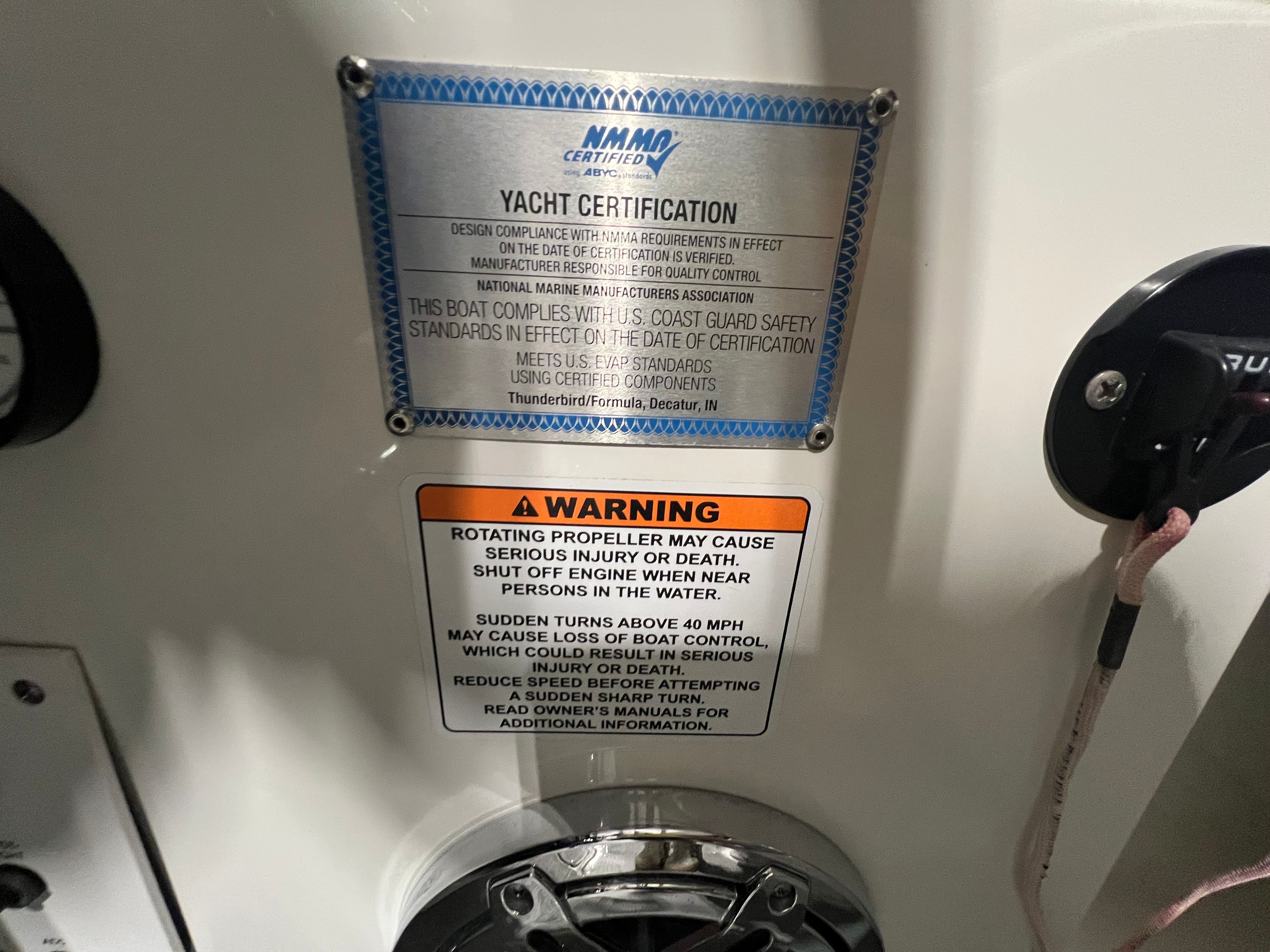 The Formula 330 CBR is designed with practicality in mind, making ownership both enjoyable and convenient. The battery charger keeps your systems running smoothly, while the bottom paint reduces maintenance requirements and helps preserve the boat’s sleek appearance. The bow and cockpit covers offer protection from the elements, ensuring your investment stays in top condition year after year. Docking and storage are made easier thanks to the boat’s manageable 33-foot length, allowing you to access a variety of marinas and slips with confidence. The twin engines provide excellent maneuverability, making docking and navigating tight spaces a stress-free experience. Fuel efficiency is enhanced by Formula’s advanced engineering, so you can spend more time on the water and less time at the pump.
