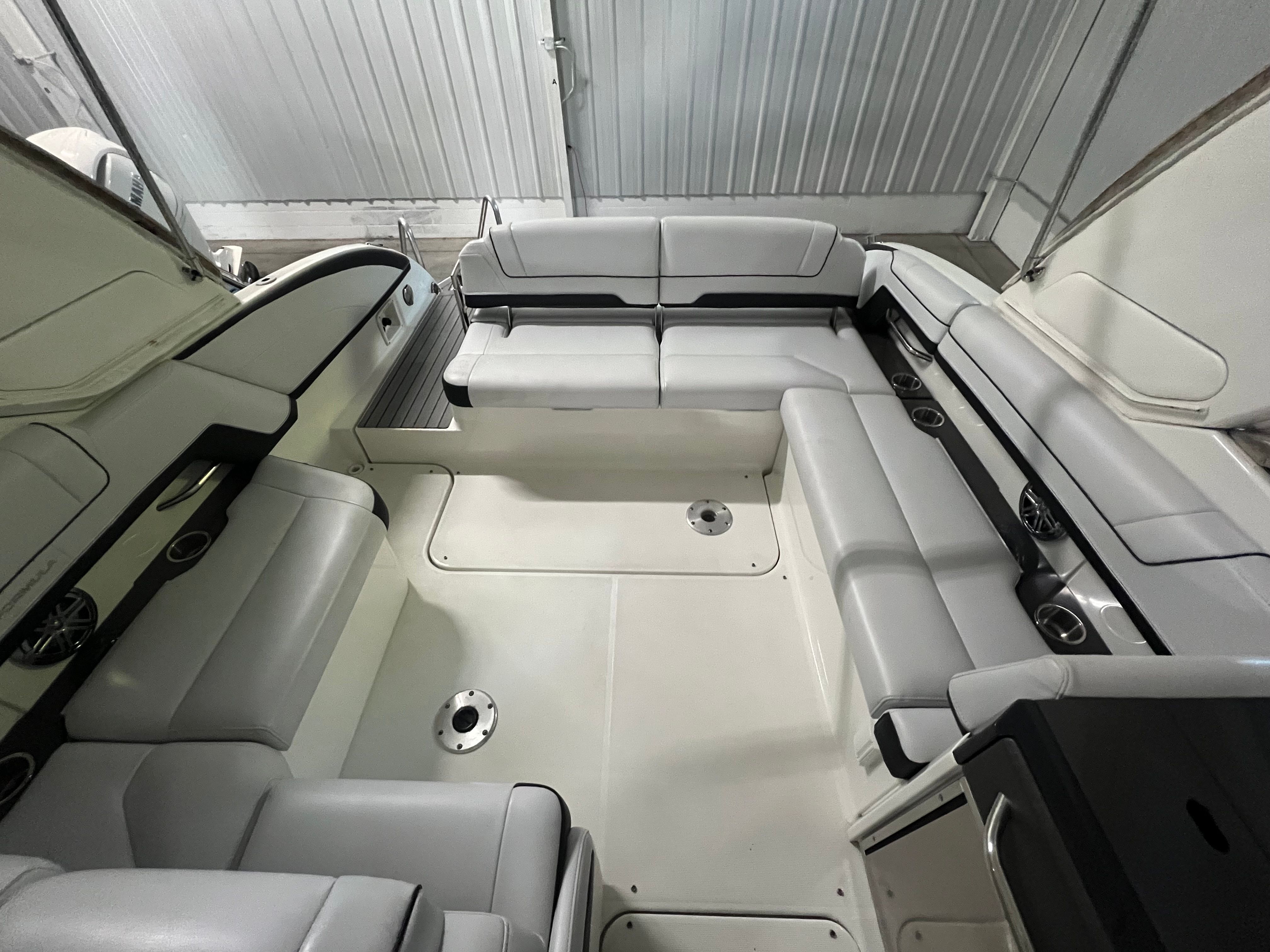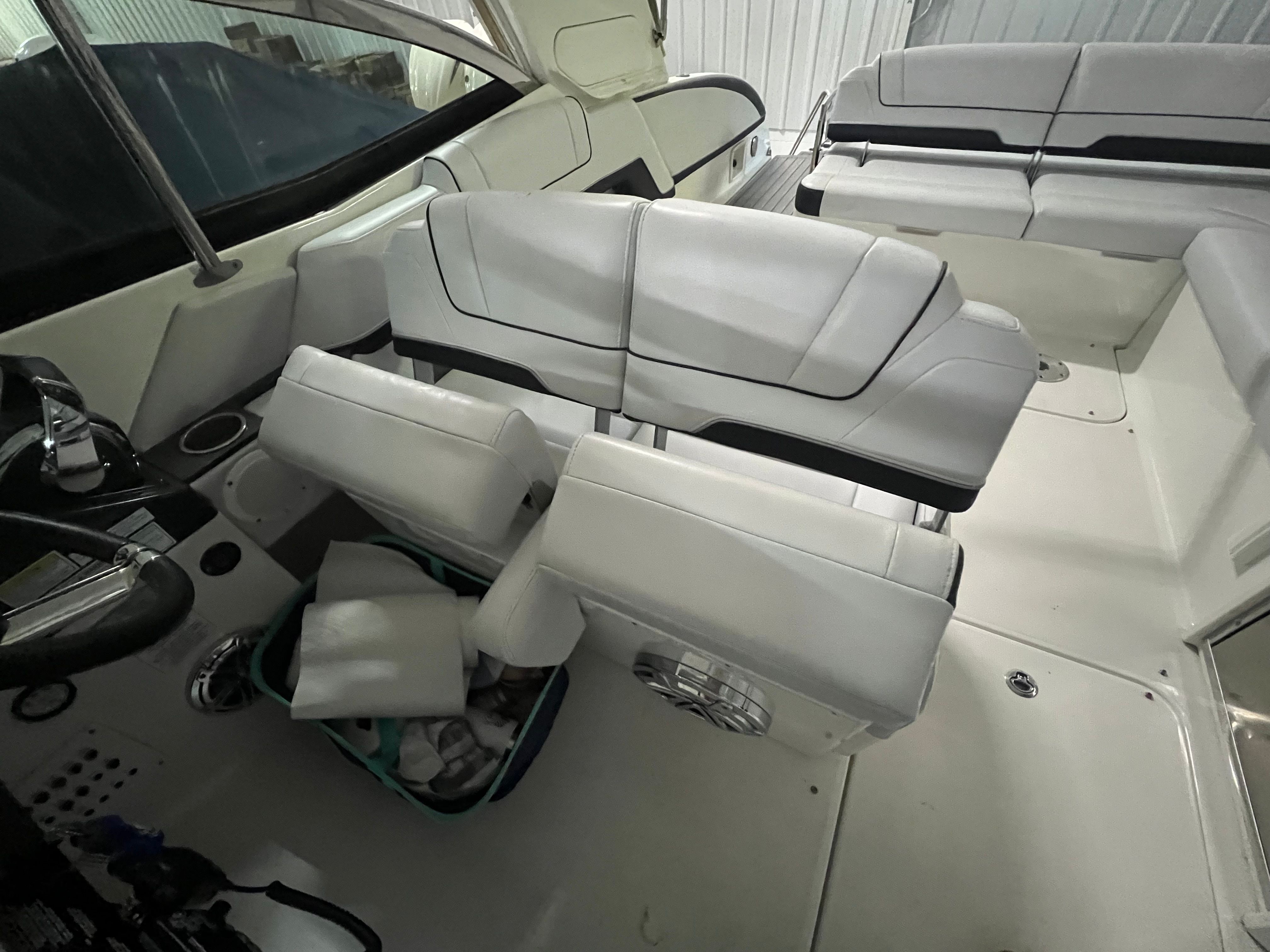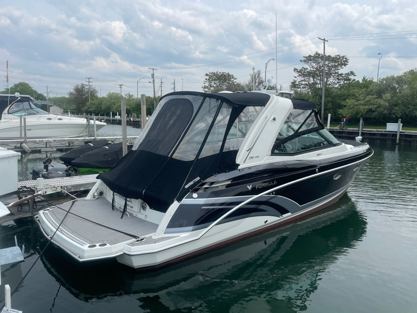 Owning the Formula 330 CBR cruiser means embracing a lifestyle of fun, relaxation, and adventure. The spacious layout is perfect for entertaining friends and family, offering ample seating and room to move about. The comfortable cabin and climate control features ensure everyone stays cozy, whether you’re escaping the summer heat or enjoying a crisp autumn evening on the water. The premium sea grass flooring in the cockpit adds both style and practicality, making cleanup after a day of fun effortless. Socializing is a breeze on this cruiser boat for sale, with plenty of space for dining, lounging, and enjoying the company of loved ones. The bimini top and camper enclosure provide flexible options for sun and shade, so you can tailor your experience to suit the weather and your preferences. Whether you’re hosting a sunset cocktail party or embarking on a weekend adventure, the Formula 330 CBR delivers the perfect setting for memorable moments.