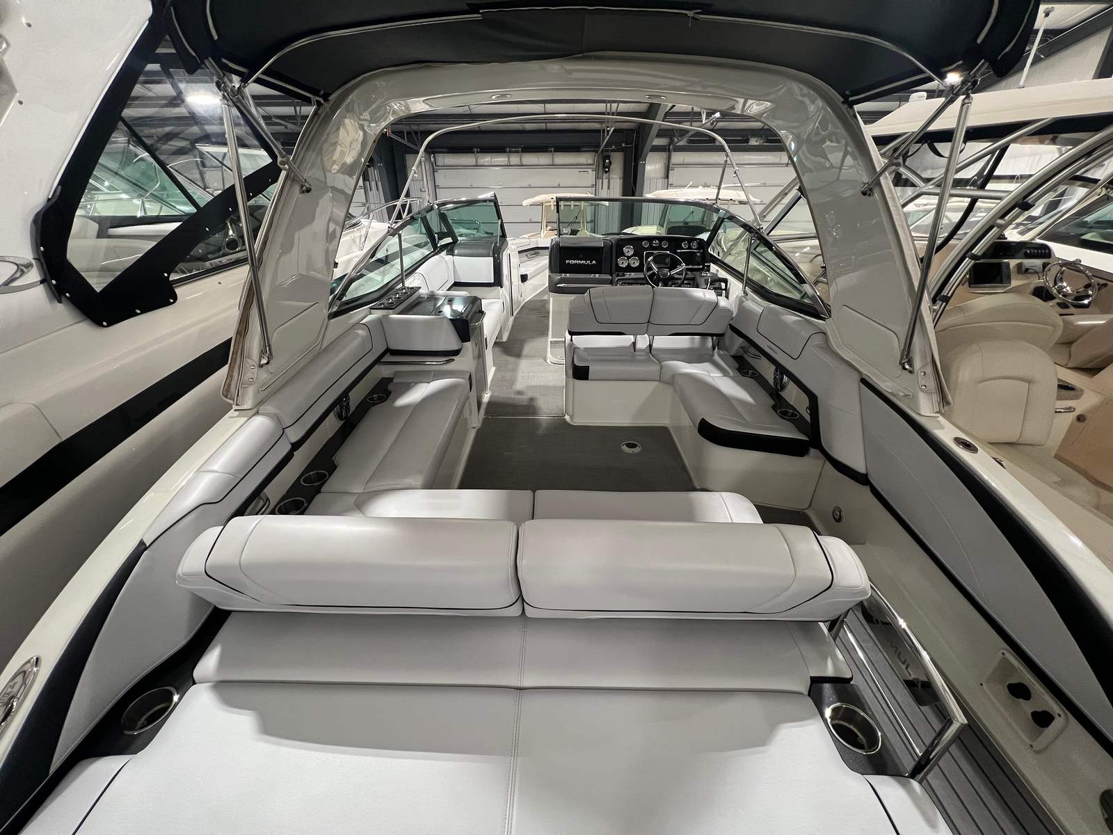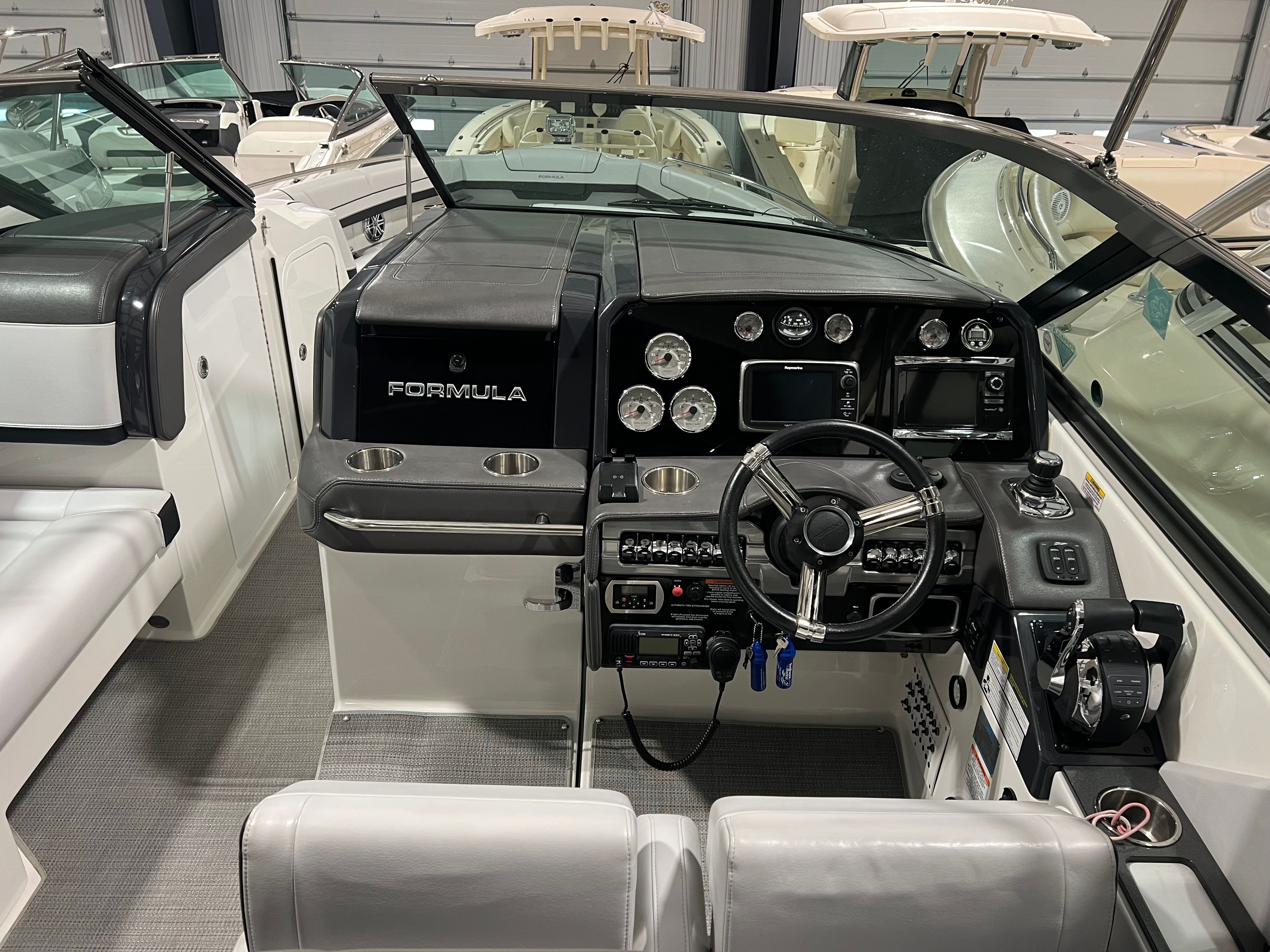 The Formula 330 CBR cruiser is the perfect choice for a wide range of boating activities. Families will love the spacious deck and comfortable cabin, ideal for day trips, picnics, and water sports. Fishing enthusiasts can take advantage of the boat’s stability and ample room for gear, while those seeking luxury getaways will appreciate the stylish design and premium amenities. Imagine setting out for a weekend escape, enjoying the comfort of cabin AC/heat, and relaxing under the bimini top as you cruise to your favorite destination. The camper enclosure allows you to extend your adventures into the cooler months, while the elegant sea grass flooring provides a touch of luxury throughout your journey. Whether you’re exploring new waters or revisiting beloved spots, the Formula 330 CBR is your ticket to endless fun and relaxation.