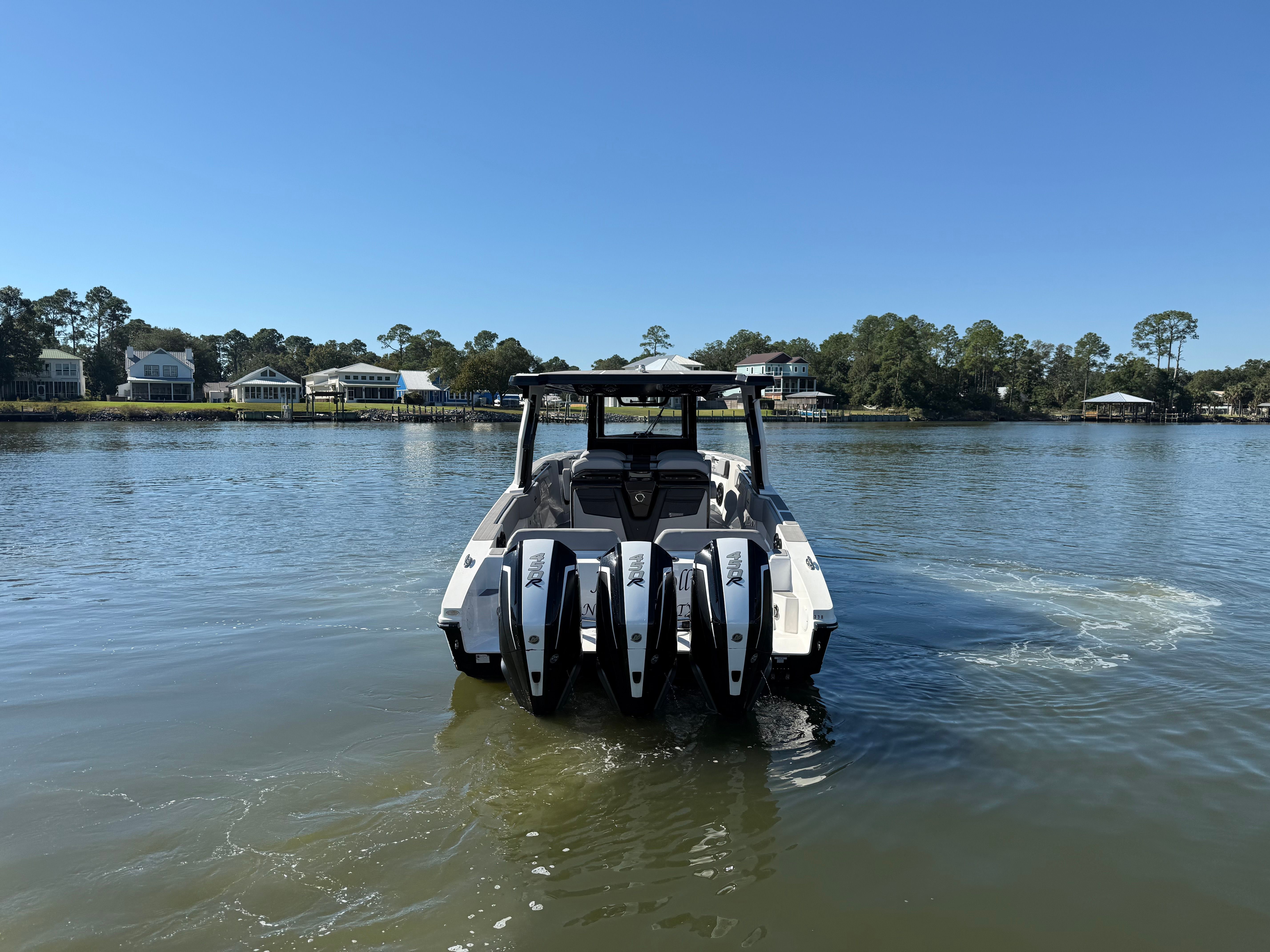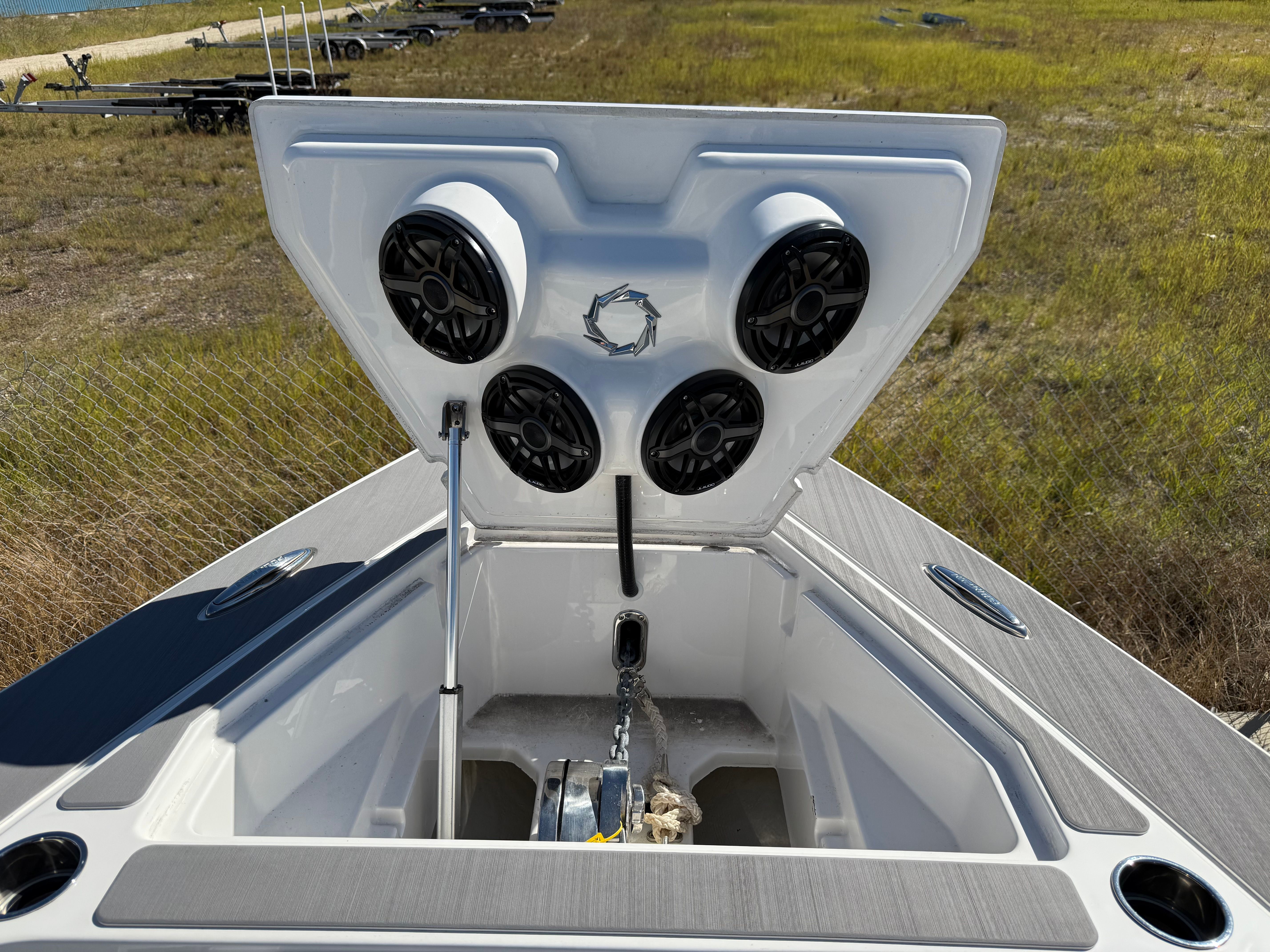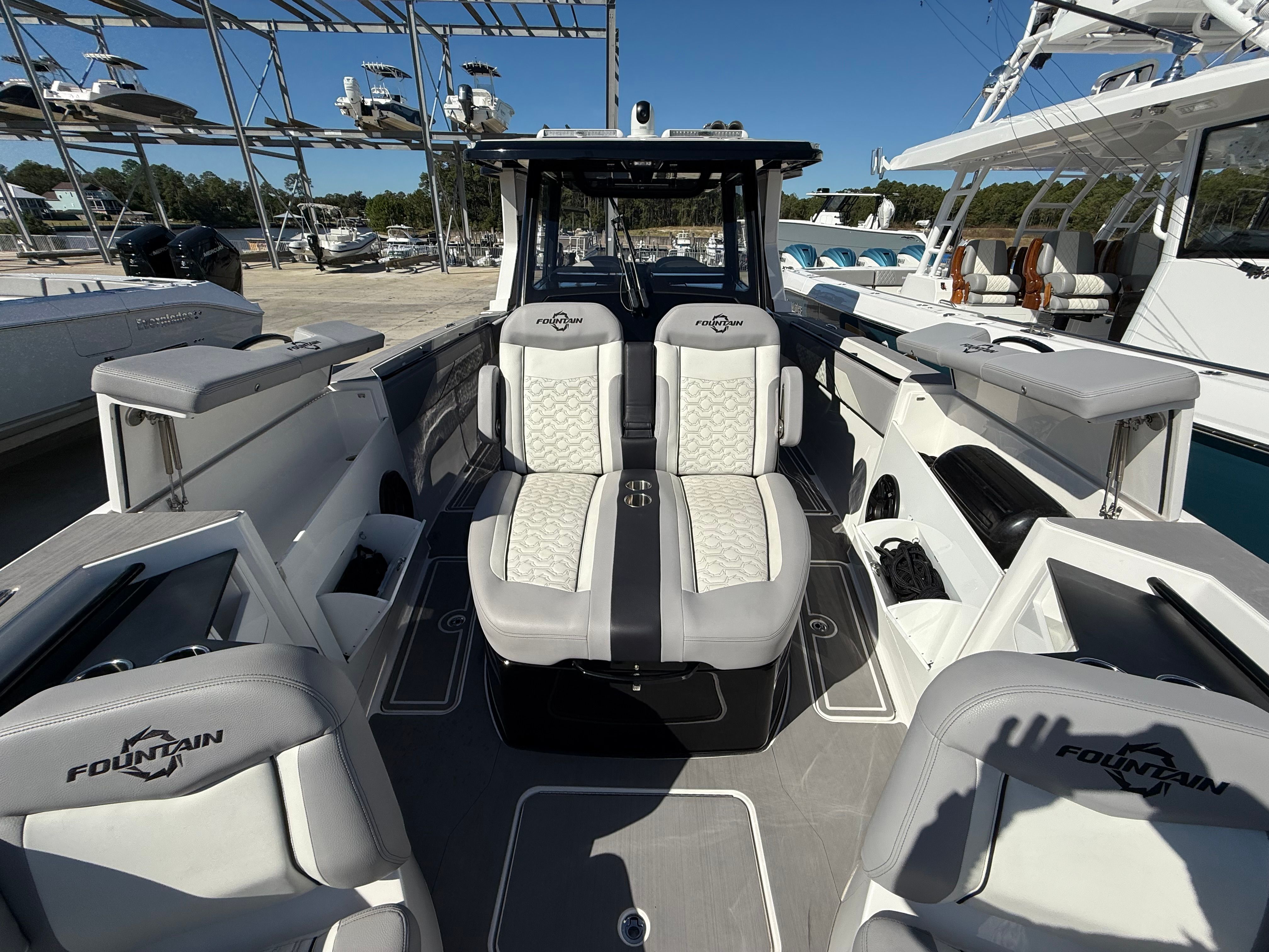 At the heart of the Fountain 38 SCX lies a powerful trio of engines, delivering a combined 1350 horsepower. With only 146 engine hours, these motors are primed for many more seasons of exhilarating performance. The triple-engine configuration ensures rapid acceleration, impressive top speeds, and smooth handling even in challenging conditions. Whether you’re navigating choppy waters or cruising at high speeds, the Fountain 38 SCX responds with precision and agility. This Center Console boat for sale is built for those who demand superior performance and reliability, making it ideal for both seasoned boaters and newcomers alike.