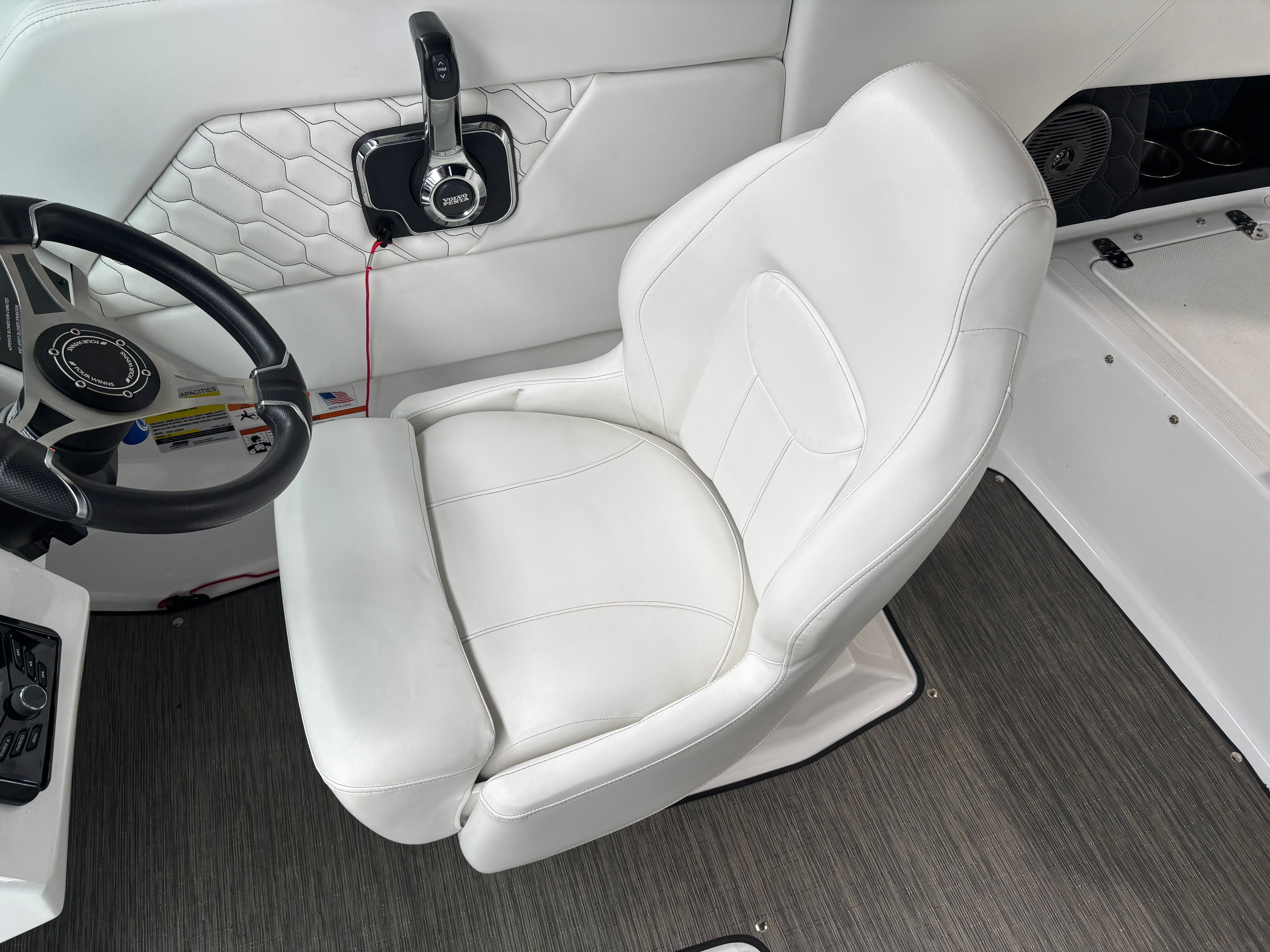 Under the hood, the Four Winns H1 is powered by a single engine delivering an impressive 250 horsepower. This robust engine ensures exhilarating acceleration, smooth handling, and reliable performance, whether you’re navigating calm lakes or coastal waters. The 250-horsepower engine provides plenty of power for towing water toys, wakeboarding, or simply enjoying a spirited ride across the waves. With responsive steering and a well-balanced hull, the H1 offers a confident and enjoyable driving experience for both seasoned boaters and newcomers alike.