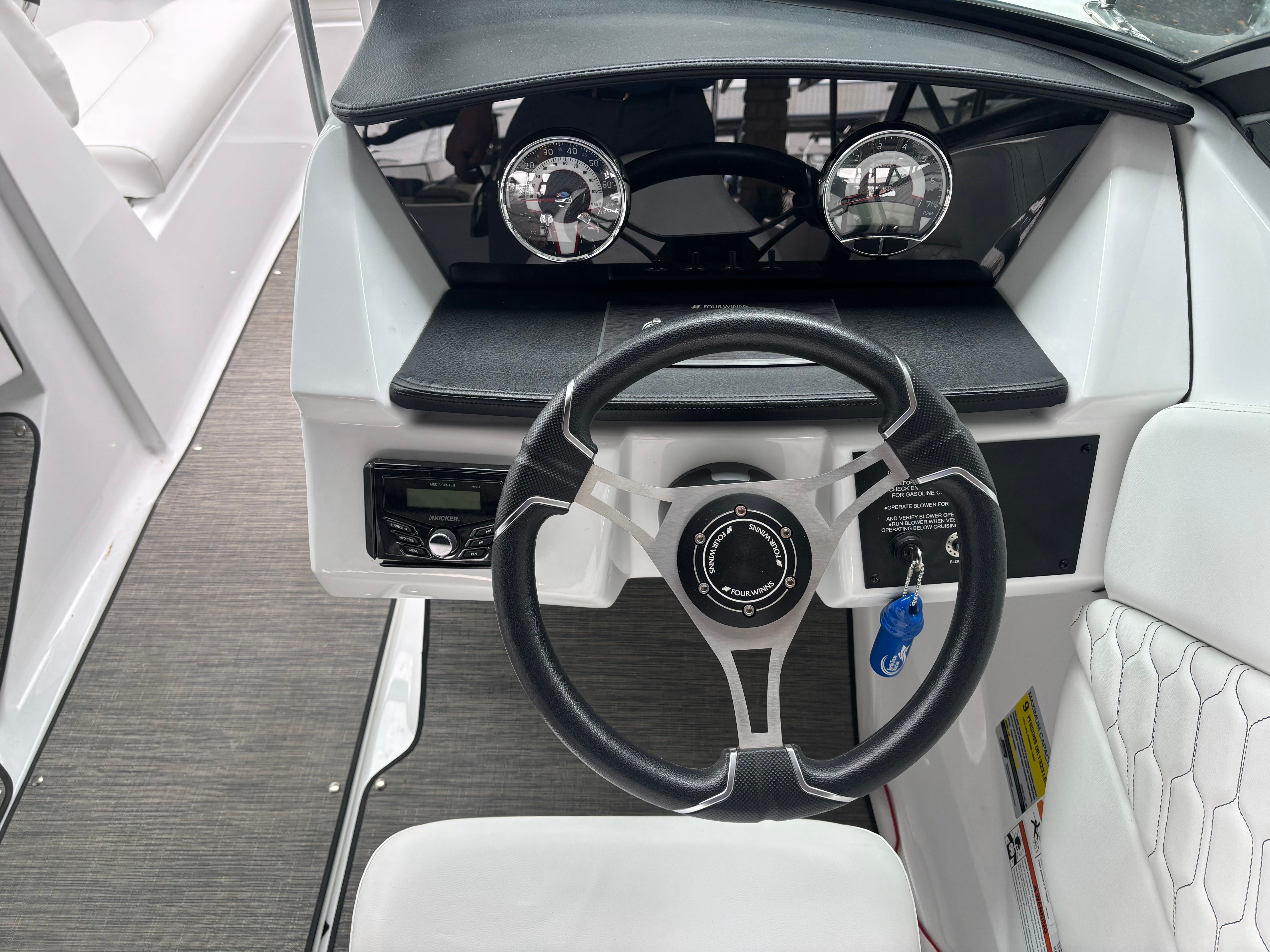This Four Winns H1 runabout boat for sale is packed with features designed to enhance your time on the water. The 21.01-foot length provides ample space for passengers to relax and socialize, while the ergonomic seating ensures comfort during long days afloat. The open bow layout invites guests to soak up the sun or enjoy panoramic views, and the versatile cockpit is perfect for entertaining or gearing up for water sports.The H1’s modern helm station is designed for ease of use, with intuitive controls and clear instrumentation that keep you in command at all times. The boat’s high-quality construction and attention to detail are evident throughout, from the premium upholstery to the stylish accents that set the H1 apart from other runabout boats for sale.