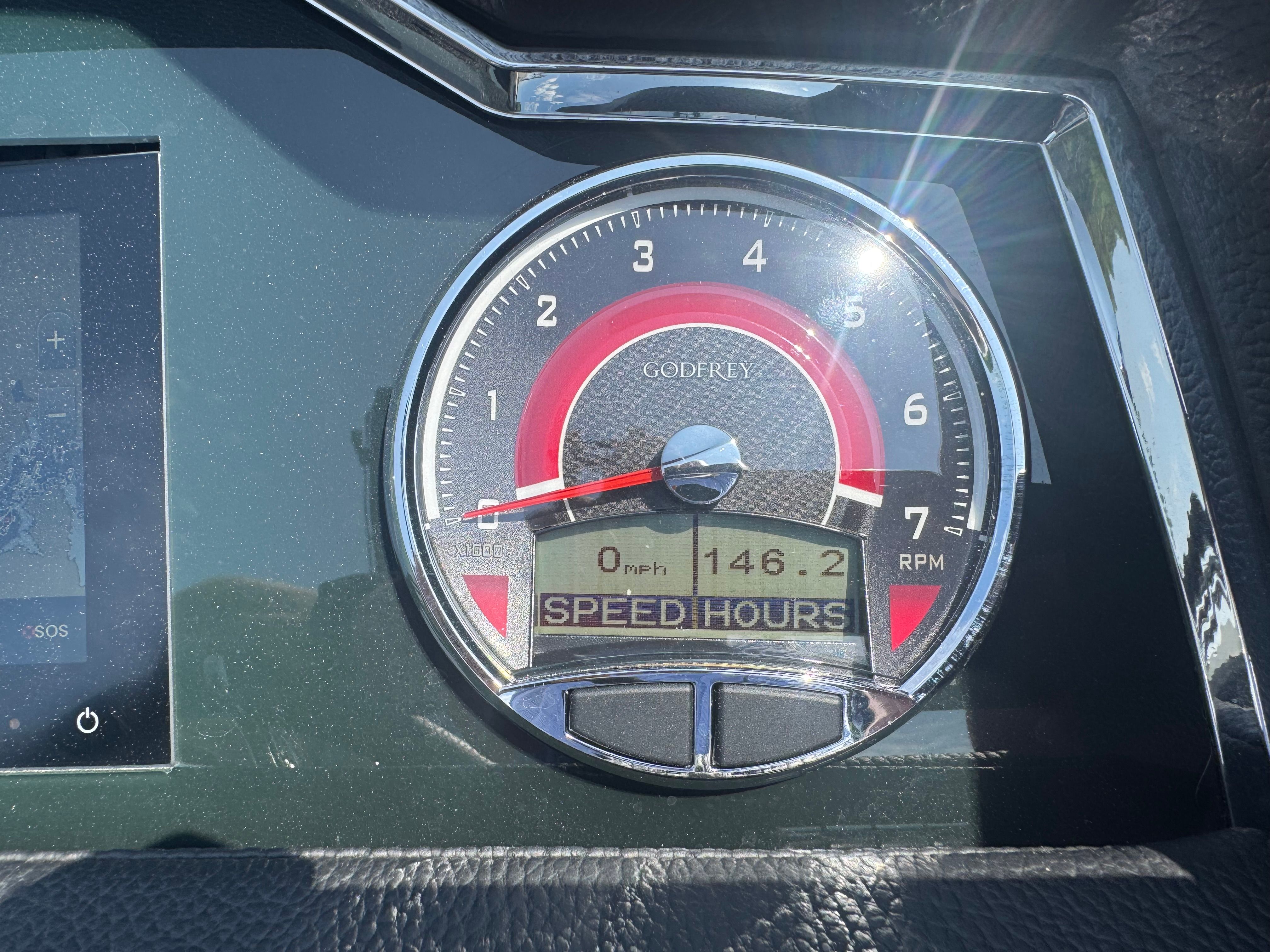 At the heart of this Godfrey AP 215 SBC pontoon boat is a powerful single engine boasting 150 horsepower. With only 146 engine hours, this motor offers plenty of life and reliable performance for years to come. The 150 HP engine provides smooth acceleration, responsive handling, and enough power to enjoy a variety of water activities, from leisurely cruises to towing inflatables. Whether you’re navigating calm lakes or exploring winding rivers, this pontoon boat’s engine ensures a dynamic and enjoyable ride every time you set out.