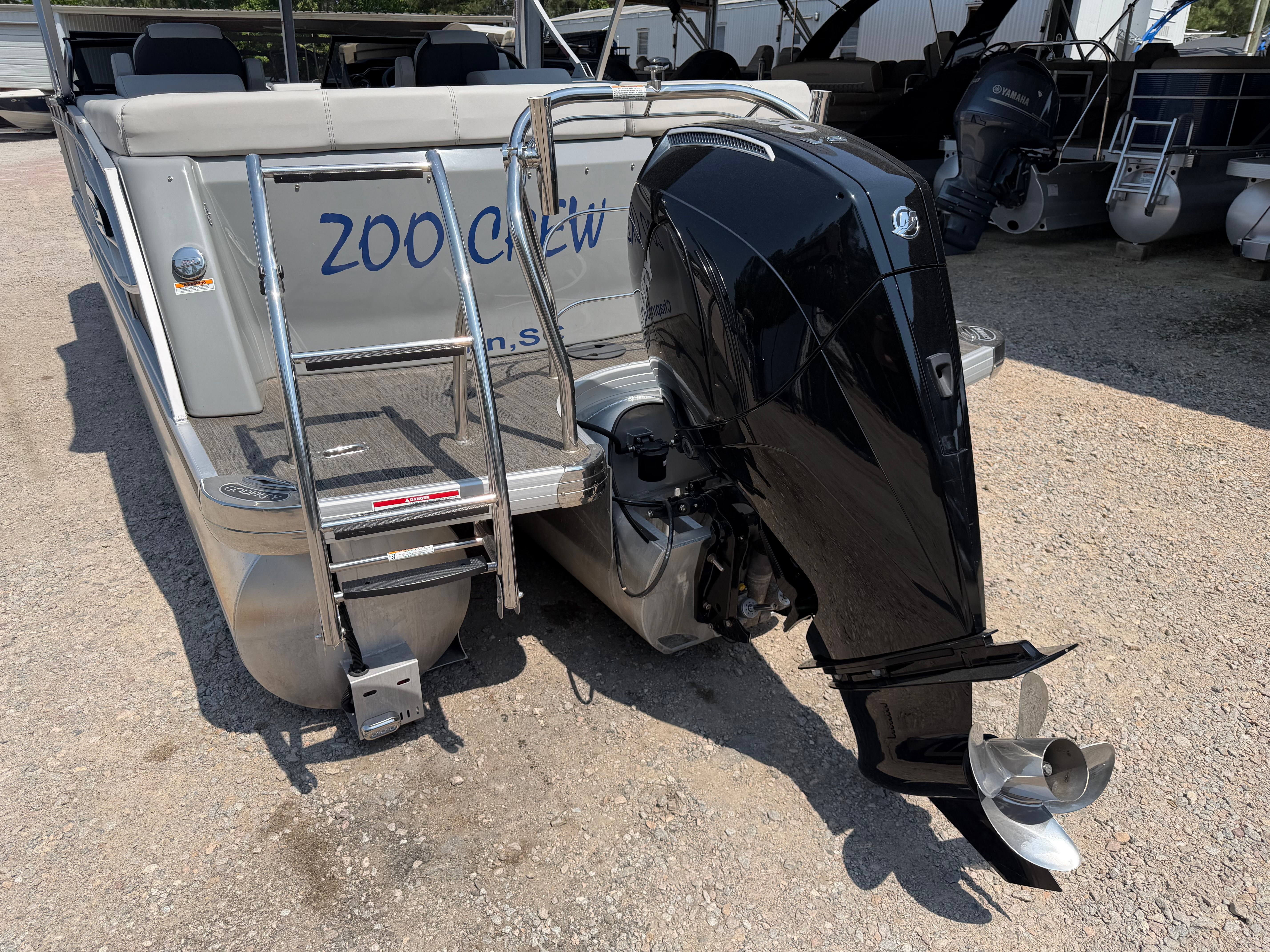 Powering this impressive pontoon is a single engine boasting a robust 300 horsepower. With only 19 engine hours, the motor is barely broken in, promising years of reliable performance ahead. The 300 HP engine ensures smooth acceleration, responsive handling, and the ability to cruise effortlessly across lakes, rivers, or coastal waters. Whether you’re towing water toys, heading to your favorite fishing spot, or simply enjoying a sunset cruise, the Godfrey AP 255 ULW delivers the power and agility you need for a thrilling boating experience.