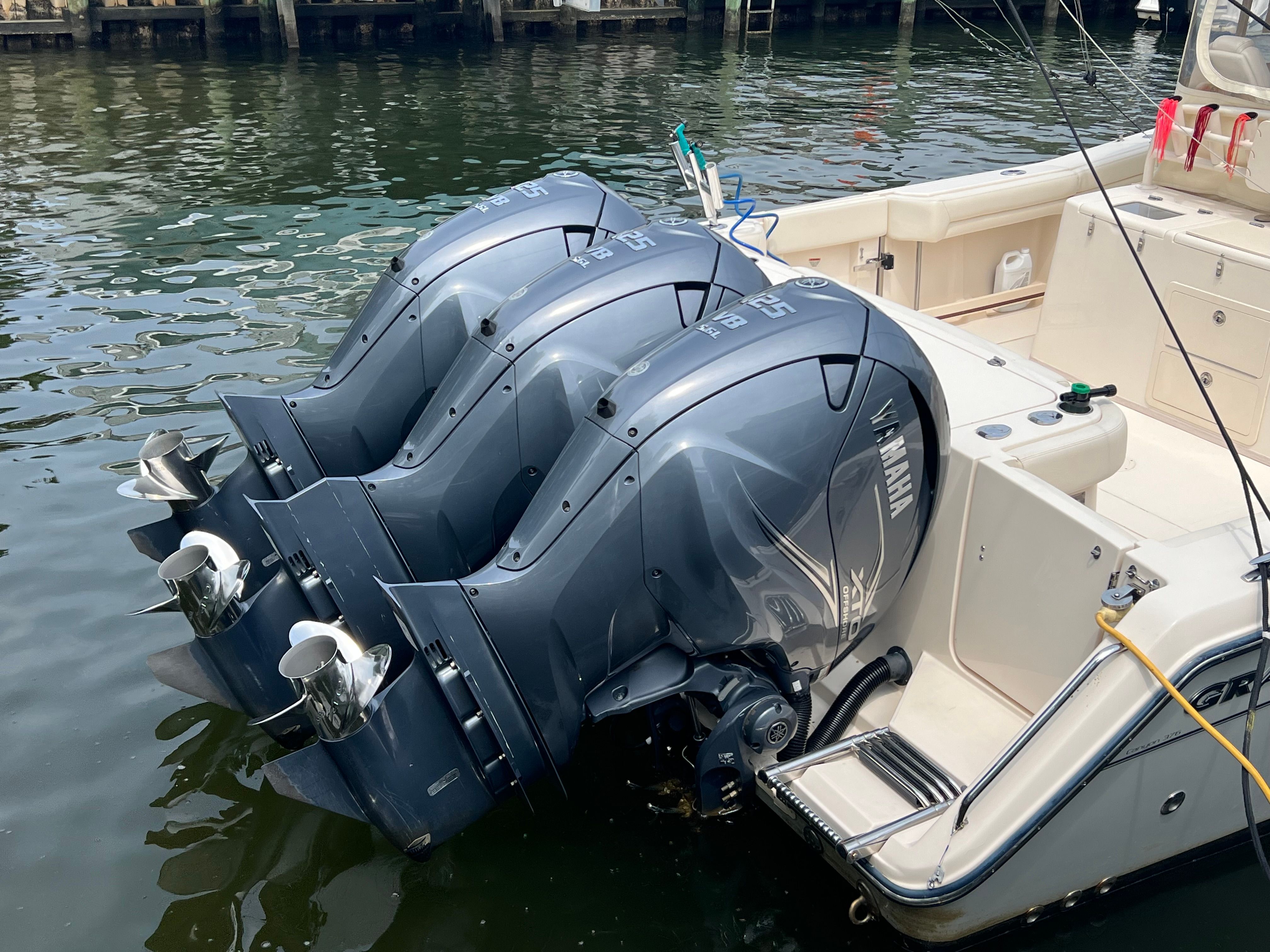 At the heart of this Grady-White Canyon 376 are three powerful engines, delivering a combined 1275 horsepower. With only 1100 engine hours, these engines provide the muscle needed for swift offshore runs, smooth cruising, and responsive handling in a variety of sea conditions. The triple-engine setup ensures that you have the speed and agility to reach your favorite fishing spots quickly, while also offering the reliability and efficiency that Grady-White is known for. Whether you are chasing game fish offshore or enjoying a leisurely day on the bay, the performance of this center console boat is sure to impress.