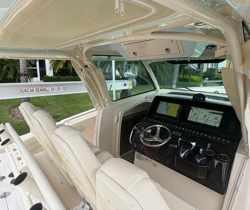 The Grady-White Canyon 386 is designed with practicality in mind, making ownership both enjoyable and convenient. The Center Console layout provides generous storage options for gear, supplies, and personal items, keeping the deck clutter-free and organized. The boat’s size and triple-engine setup make docking straightforward, while the efficient engines help optimize fuel consumption for longer journeys. Maintenance is simplified thanks to Grady-White’s reputation for reliability and thoughtful engineering. Whether you are planning a weekend getaway, a day of fishing, or a sunset cruise, the Canyon 386 adapts to your needs with ease.