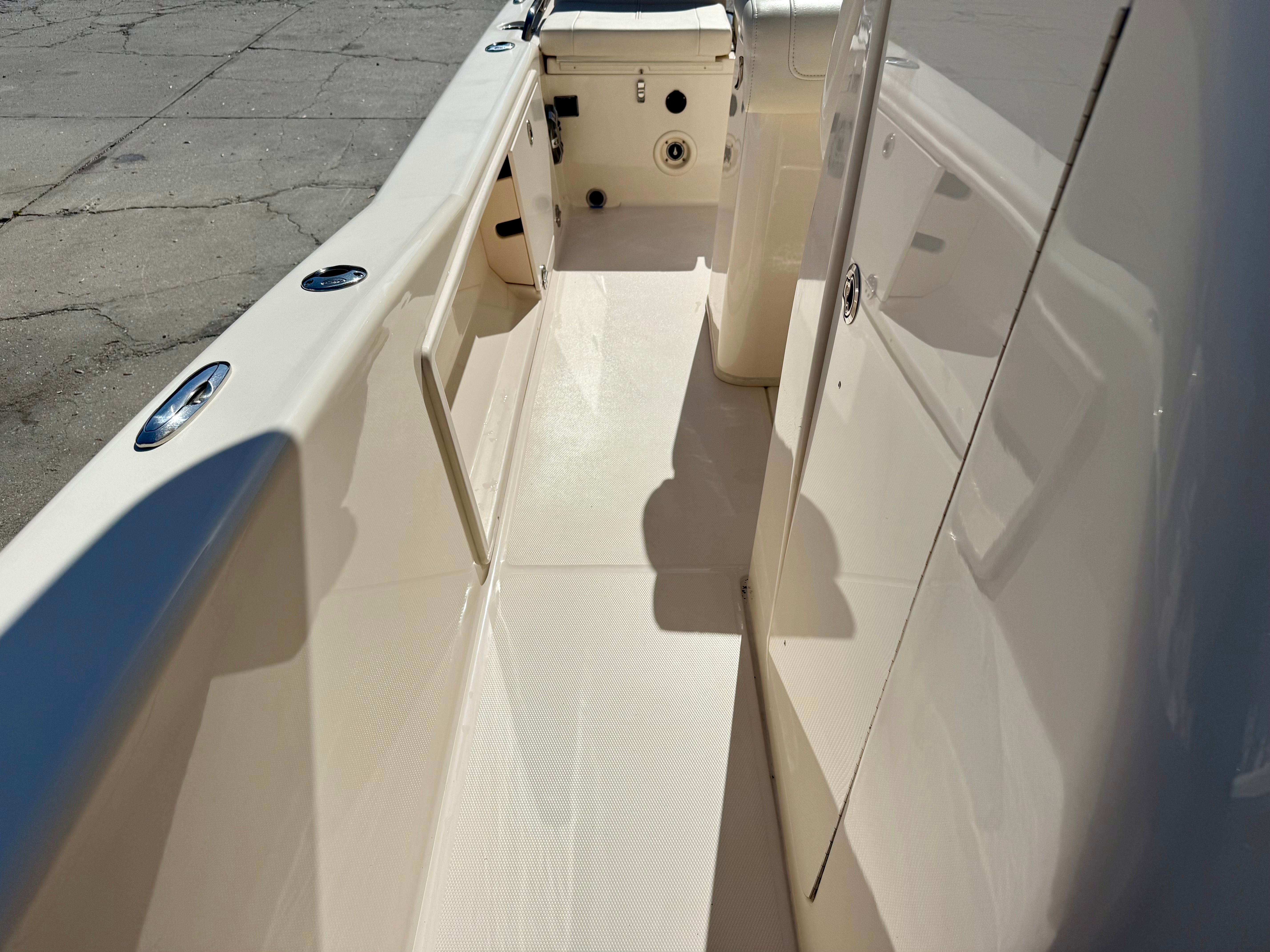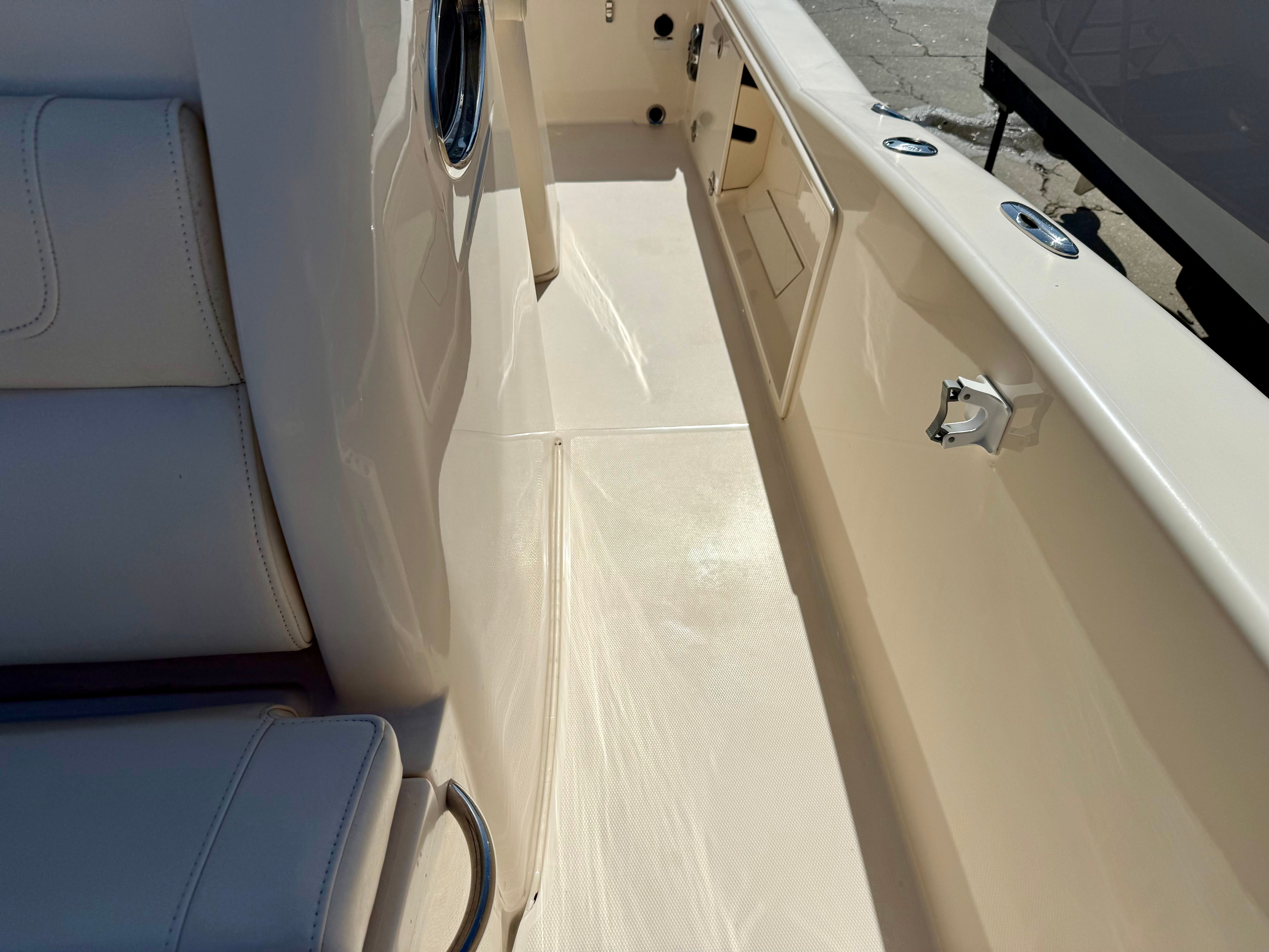 The Grady-White Coastal Explorer 251 is packed with features that enhance both functionality and enjoyment on the water. Its center console layout maximizes deck space, providing ample room for fishing, relaxing, or entertaining guests. The thoughtful design ensures easy movement around the boat, making it perfect for casting lines or socializing with friends and family. The Coastal Explorer 251’s sturdy construction and attention to detail are evident in every aspect, from the high-quality materials to the smart storage solutions that keep your gear organized and accessible.